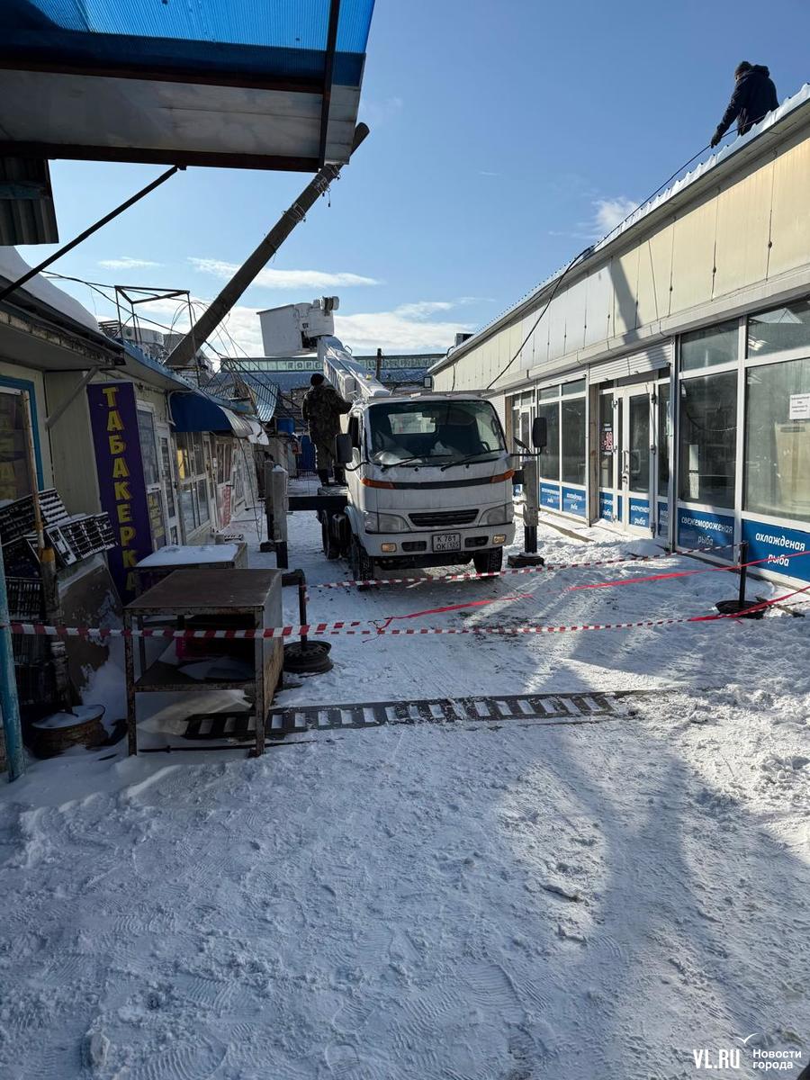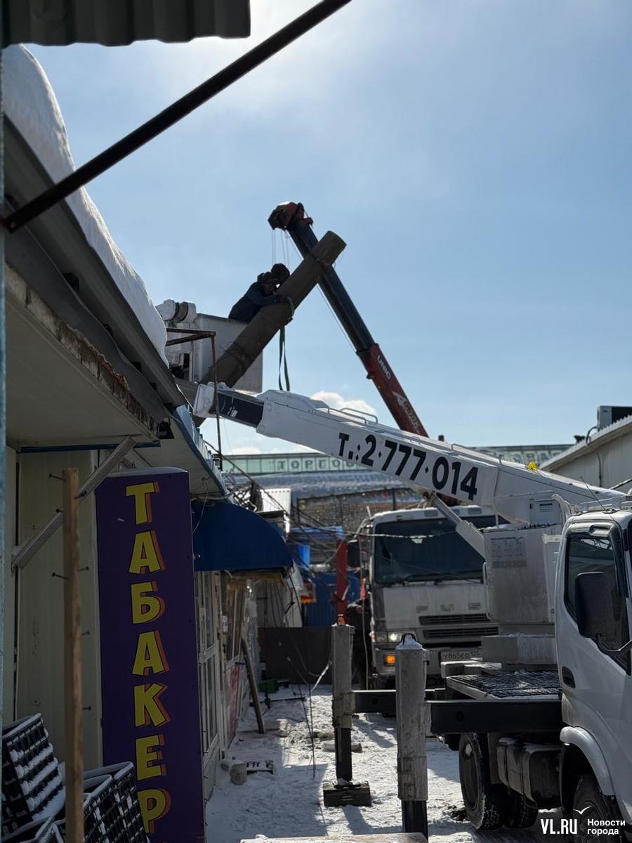 Во время вечернего снегопада во Владивостоке во вторник, 28 января, большегруз рядом с рынком на Луговой задел провода, натянутые около пешеходного виадука. В результате столб упал и повредил крышу одного из торговых павильонов. Пострадавших нет, сейчас конструкцию демонтируют. На электроснабжение района и движение трамваев этот инцидент не повлиял. А виновнику ДТП, скорее всего, будут предъявлены финансовые претензии за порчу имущества.