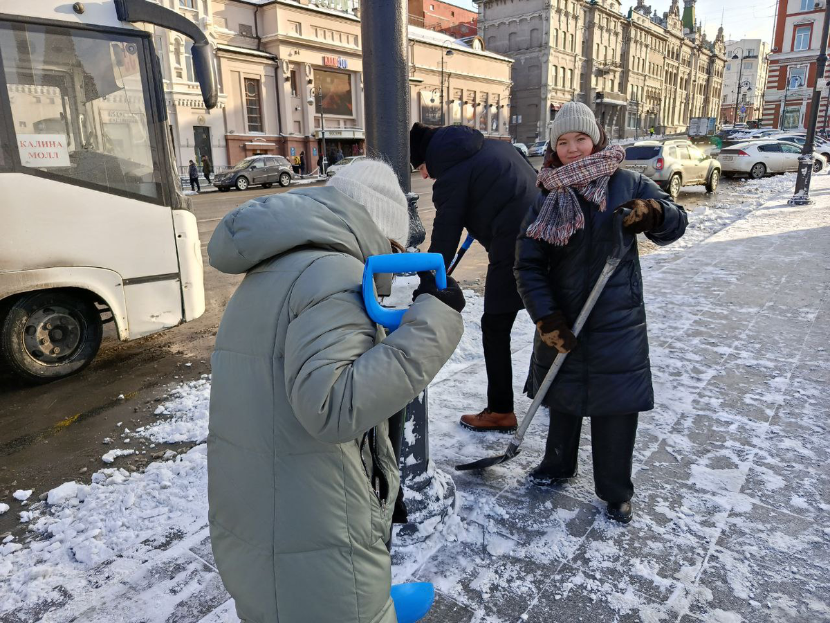 «Вышли на уборку, потому что нам же передвигаться по этим улицам, а ещё нашим родственникам, друзьям, семьям. Мы каждый год оказываем посильную помощь в ликвидации последствий стихии, – поделился руководитель отделения Денис Григорьев. – Сегодня убирали снег на улицах Ленинского района, завтра планируем включиться в работу по расчистке тротуаров от Некрасовской развязки до кольца Первой Речки».