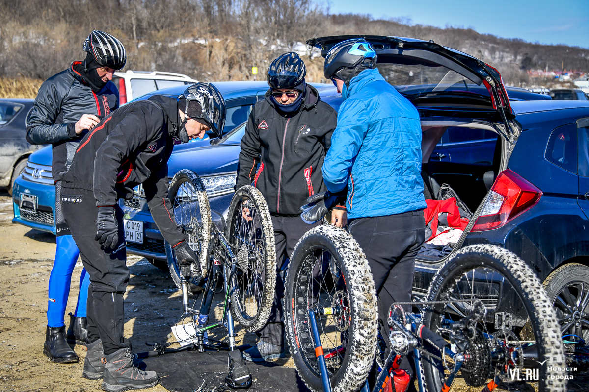 Но большинство приезжих всё же рассчитывали если не на призы, то как минимум на высокое место, поэтому подбирали и экипировку, и колёса. Спортсмены надевают специальную шипованную обувь или «кошки» с шипами на любимые беговые кроссовки. Велосипедисты делают выбор в покрышках: тонкие или «фэты», с шиповкой или без. Шиповки хорошо держат лёд, но у них хуже накат.