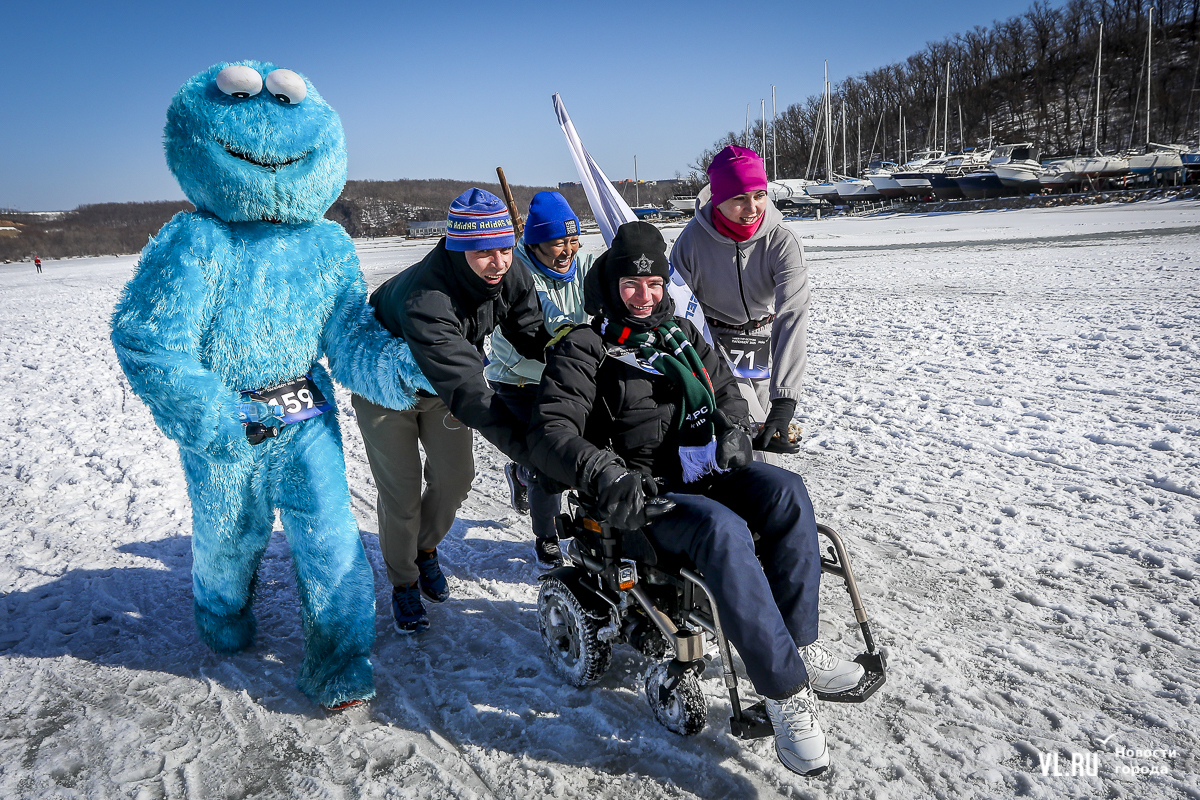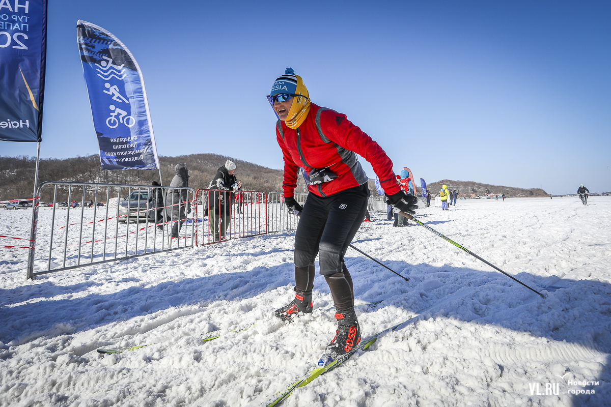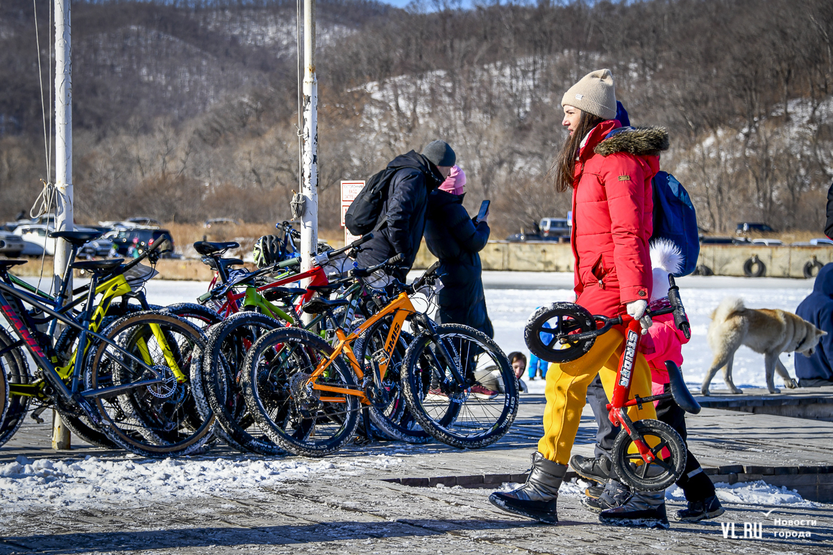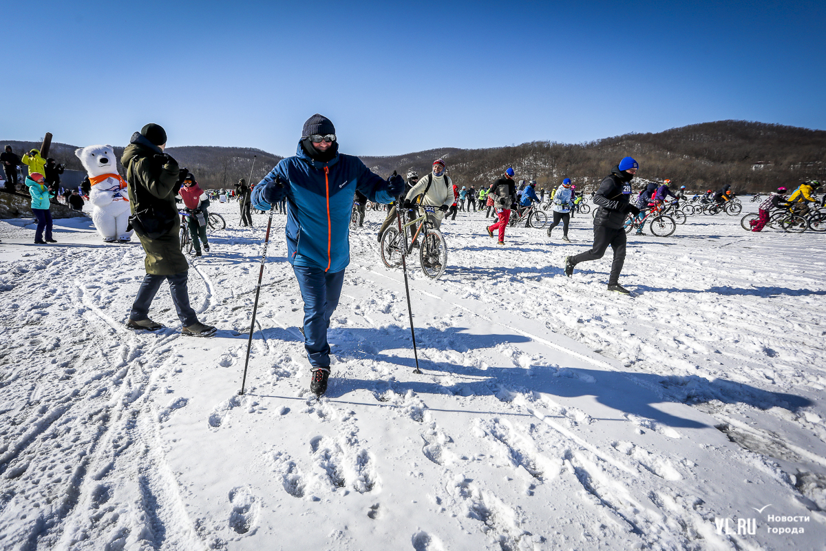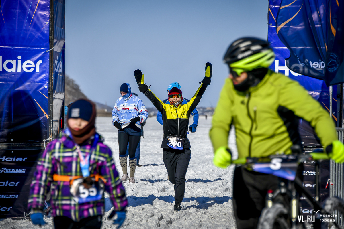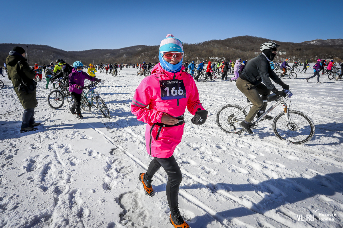 Бегом, на велосипедах, лыжах и – с трудом – на коньках соревновались профессиональные спортсмены и любители на льду бухты Новик. Традиционное ледовое велоралли, которое в последние годы разрослось до большого праздника легкоатлетов и триатлонистов, «Тур острова Папенберг» вновь собрал более 500 участников.