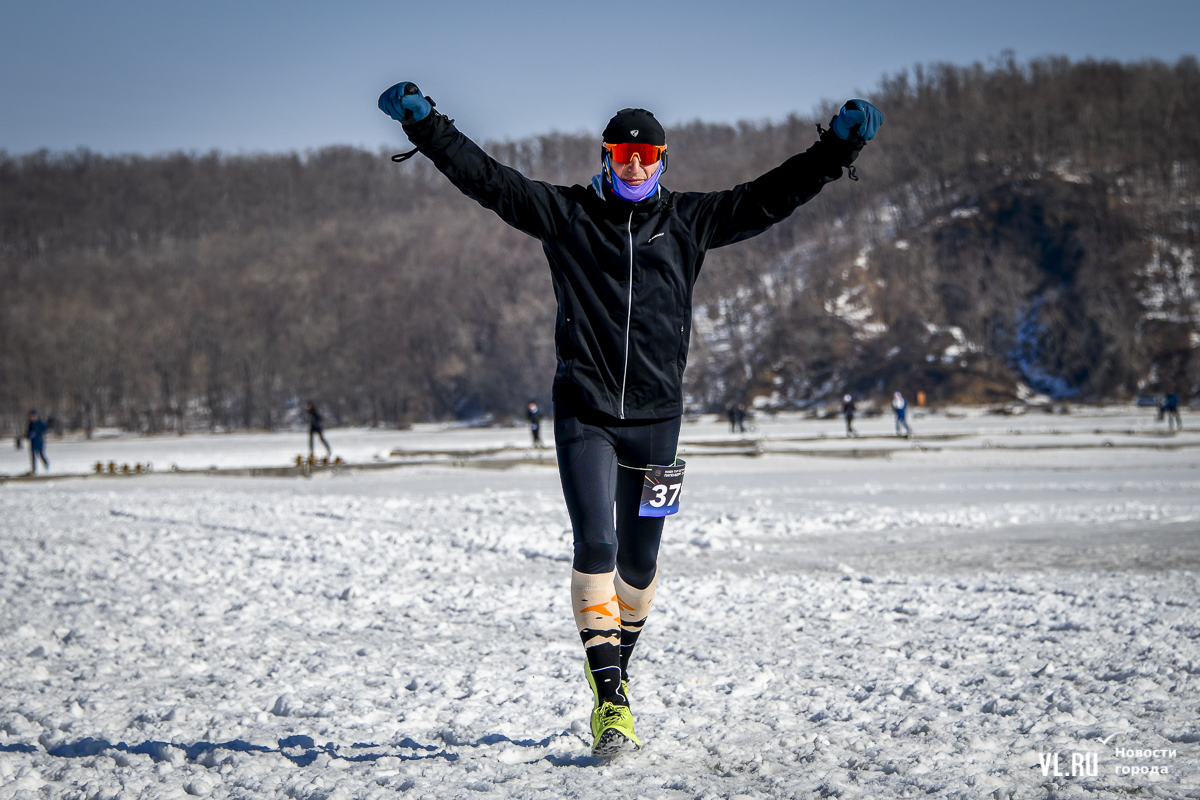 Бегунам тоже пришлось непросто. Трасса 23 км – это даже больше полумарафона. Приходилось, говорит Надежда, и под ноги смотреть, и за всем вокруг следить. Бегут – а откуда-то на льду появляется автомобиль на высокой скорости. Но, к счастью, обошлось без жертв и травм.