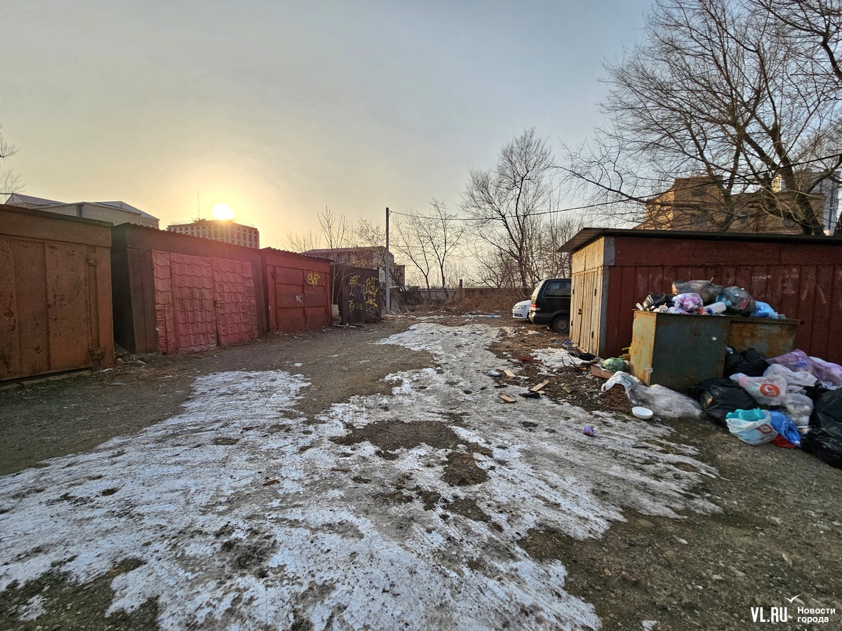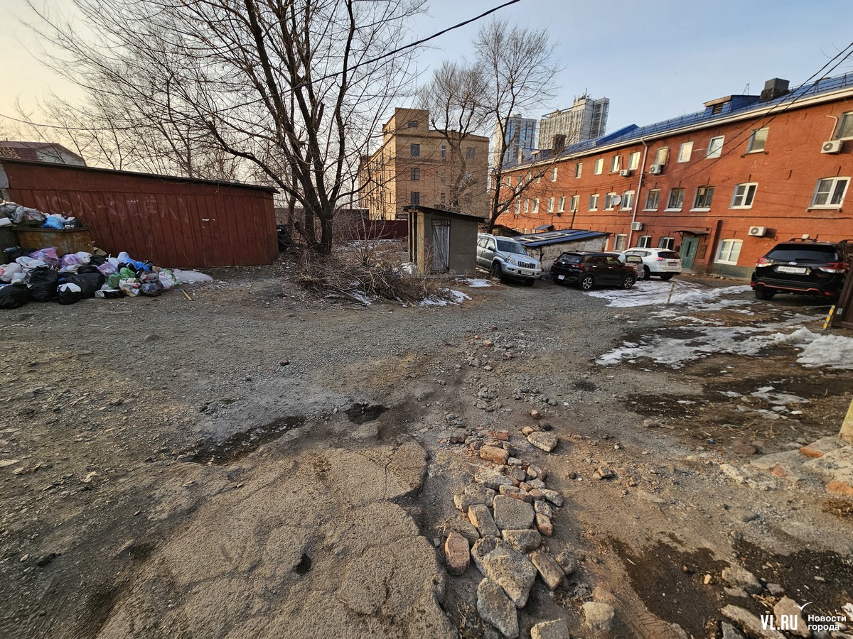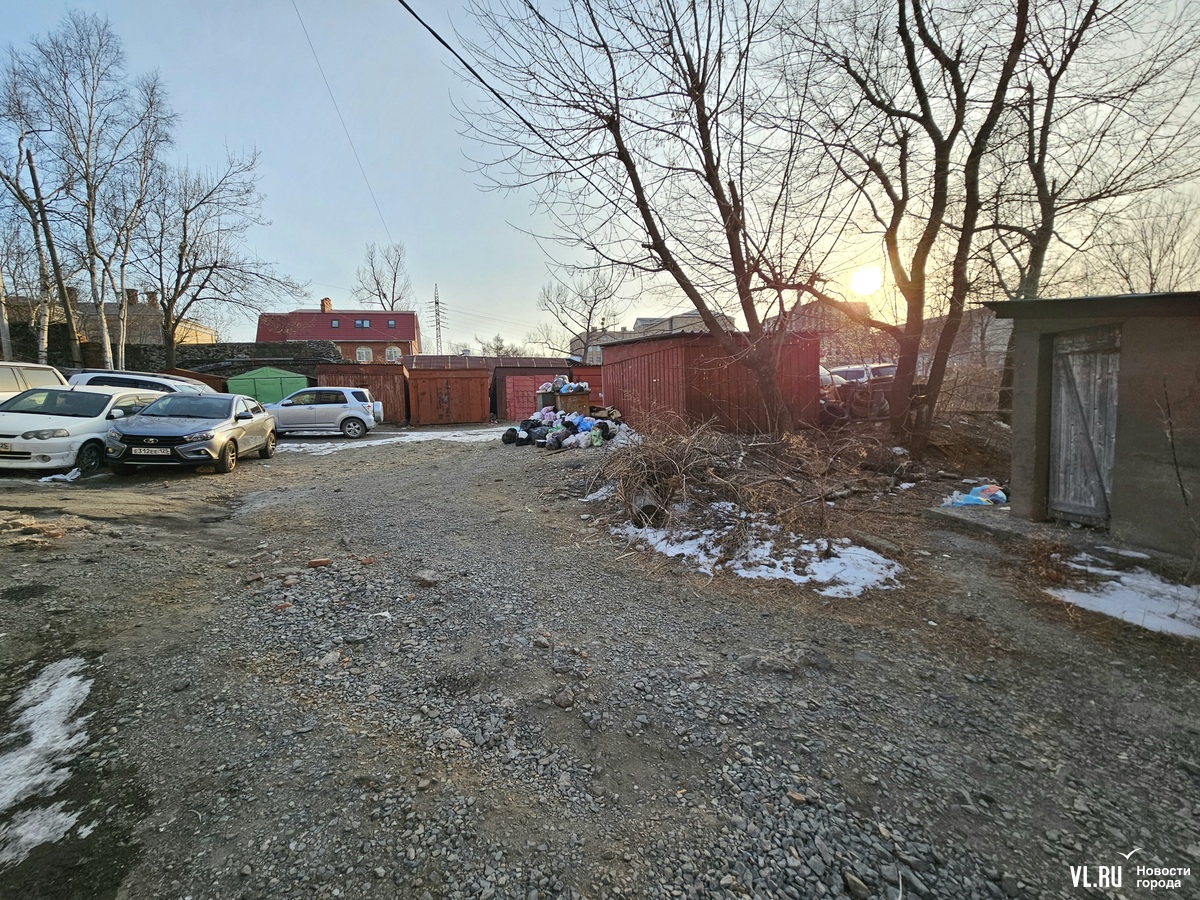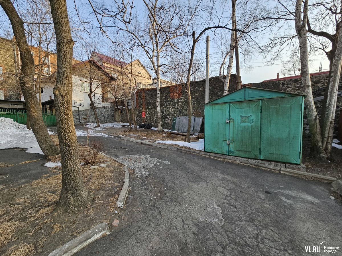 Участок 25:28:020012:685 с площадью 1920 кв. м имеет вид разрешённого использования «Гостиничное обслуживание» и находится внутри двора. Он слишком мал для строительства полноценного ЖК, однако для апартаментов вполне пригоден. При этом у участка практически нет подъездных путей. Сейчас ещё живущие там люди заезжают через арку соседнего дома, куда строительная техника вряд ли протиснется. Через арку самой Уткинской, 8 проезда нет вообще – она ниже уровня дороги и сама по высоте едва ли выше легкового автомобиля. Пока альтернативных путей нет, хотя к объявлению приложена фотография с проездом со стороны Прапорщика Комарова. Однако там есть два препятствия – полуразрушенная постройка и строчка металлических гаражей.