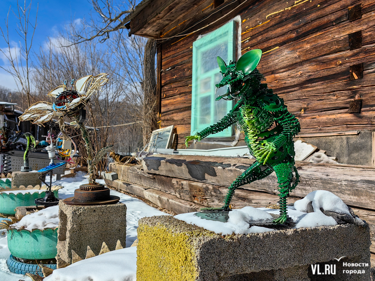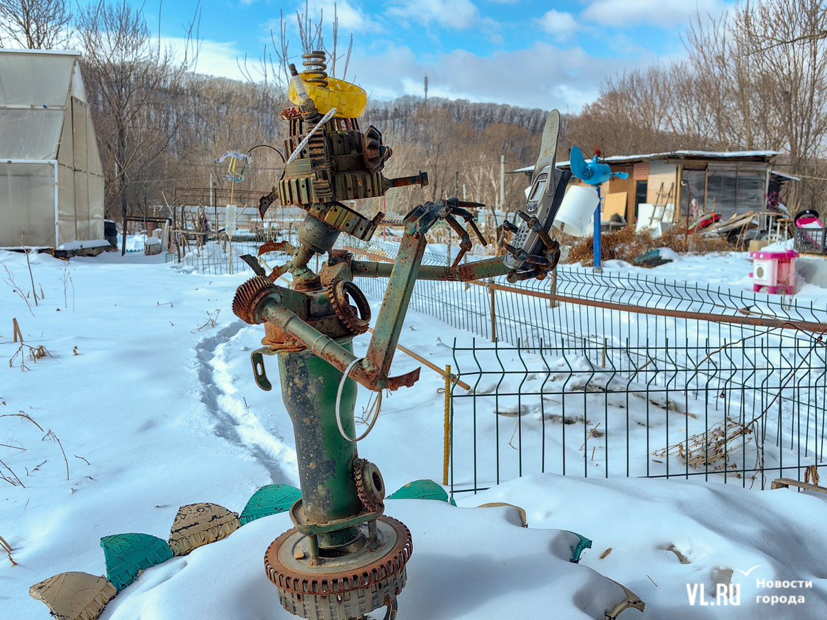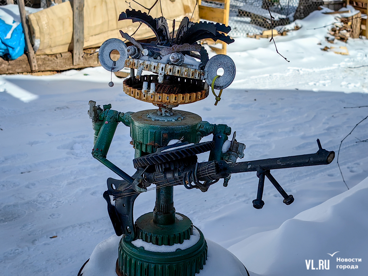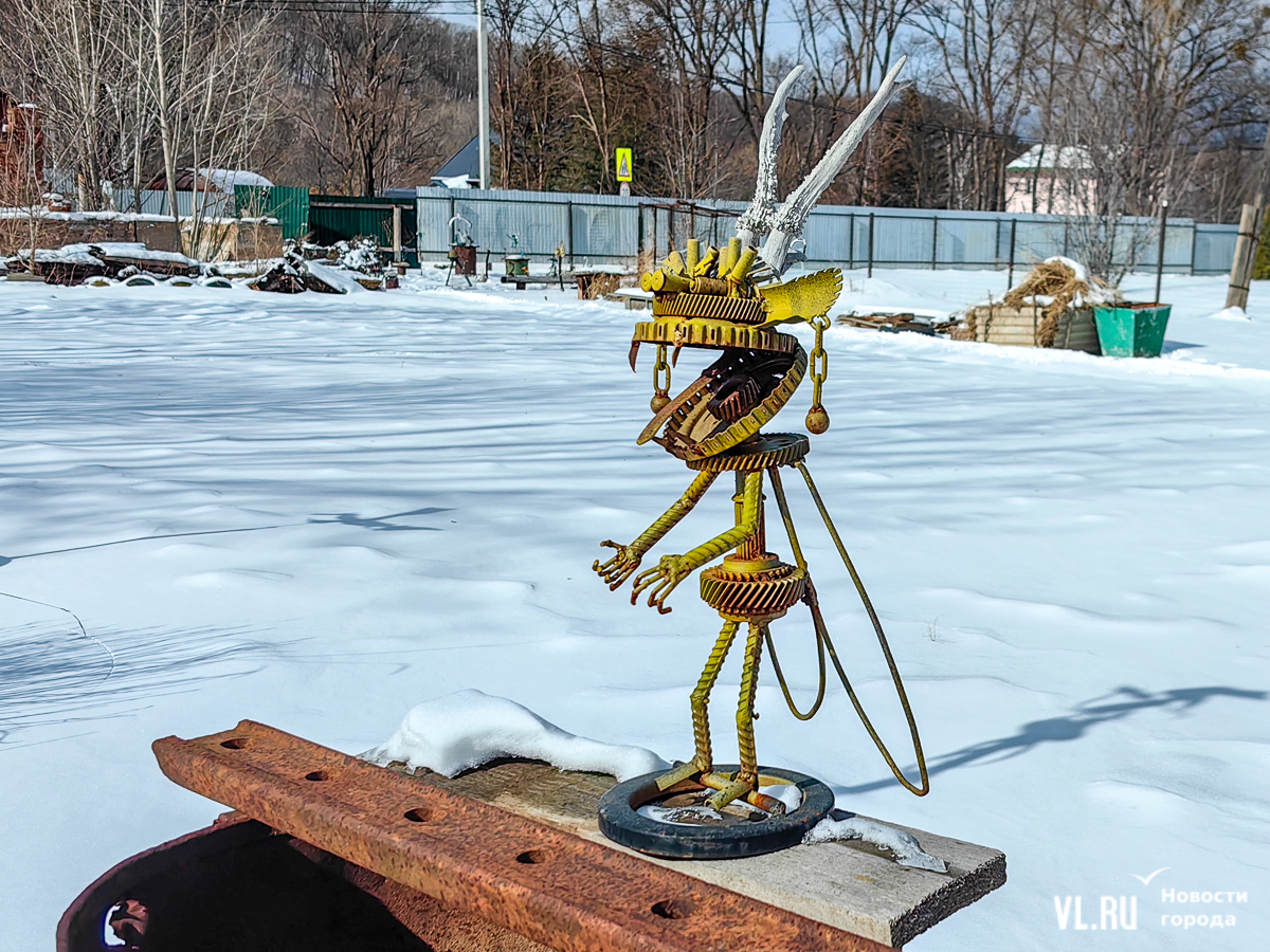 В селе Анисимовка Шкотовского района живёт необычный мастер. Андрей Никифоров создаёт игрушки из автомобильных запчастей, проволоки, болтов и старых вещей. Сейчас на его участке выставлено больше 120 игрушек весом от нескольких грамм до 20 кг. Каждая игрушка и композиция сделана из многих деталей и отражает своё настроение, а на исследование всей коллекции мастера, по его словам, может уйти не один день.
