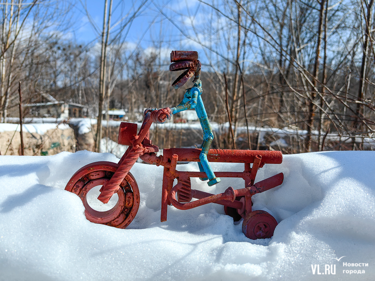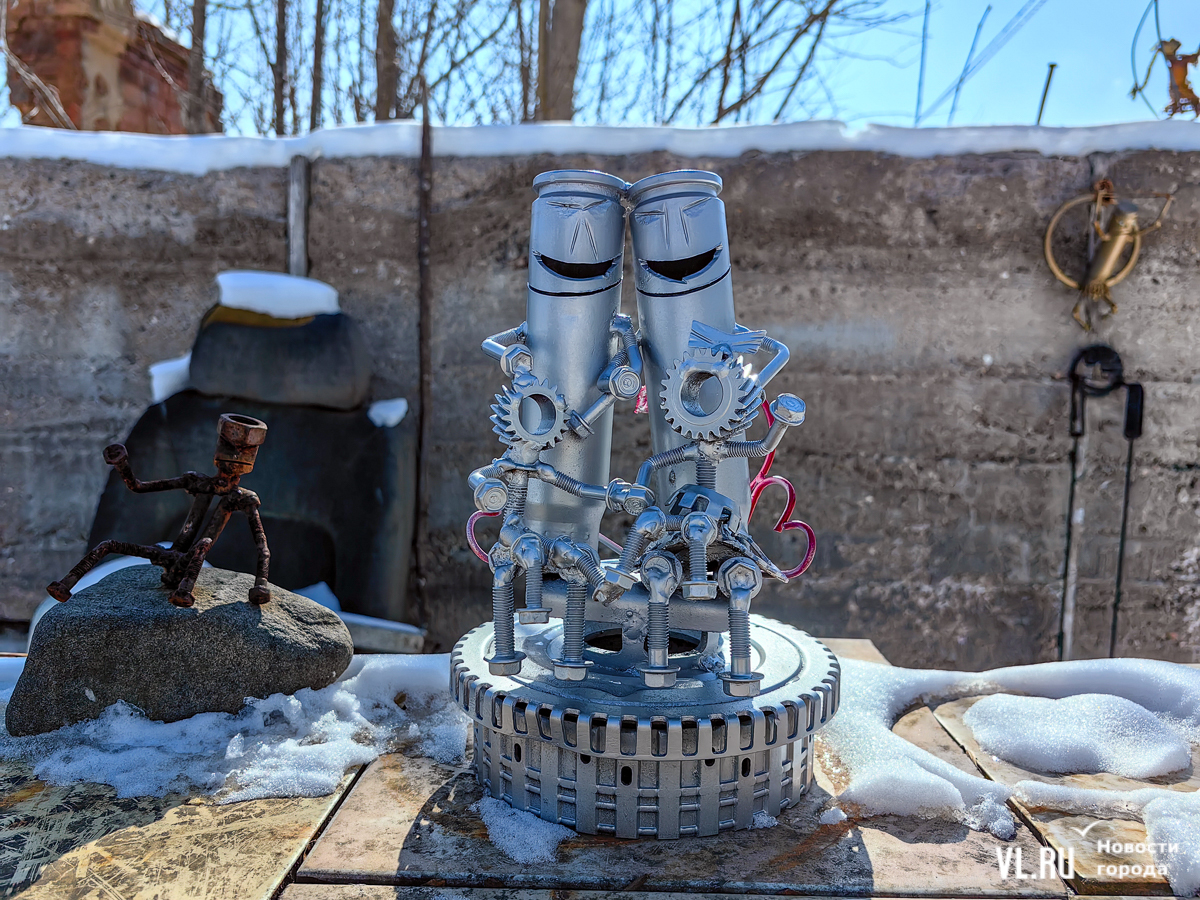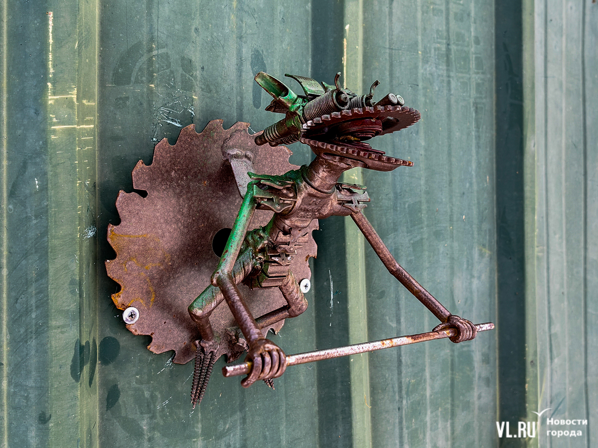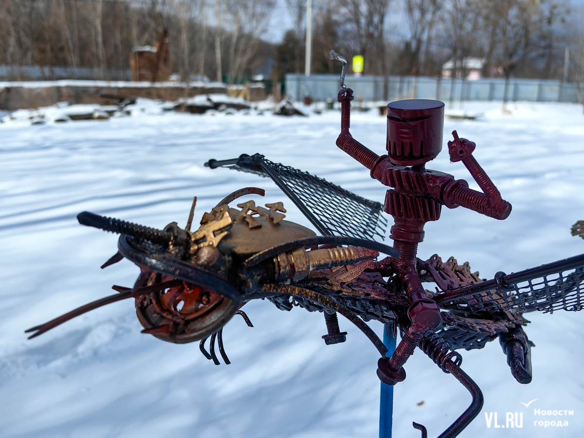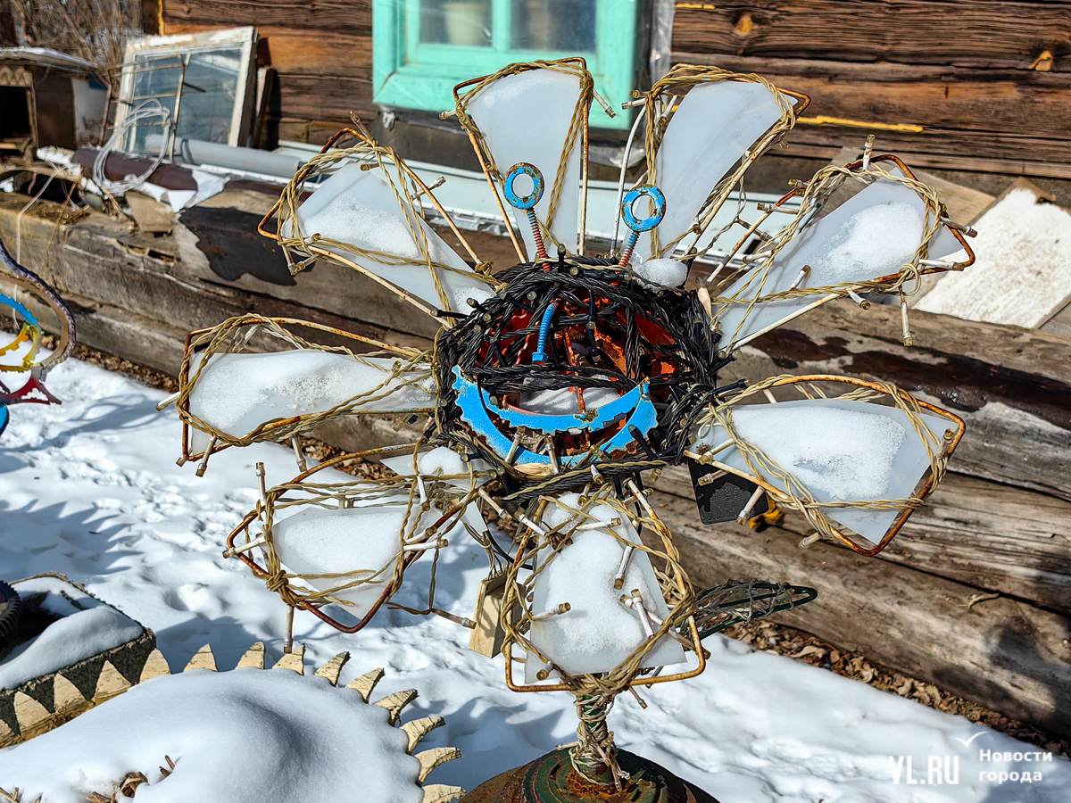 В селе Анисимовка Шкотовского района живёт необычный мастер. Андрей Никифоров создаёт игрушки из автомобильных запчастей, проволоки, болтов и старых вещей. Сейчас на его участке выставлено больше 120 игрушек весом от нескольких грамм до 20 кг. Каждая игрушка и композиция сделана из многих деталей и отражает своё настроение, а на исследование всей коллекции мастера, по его словам, может уйти не один день.