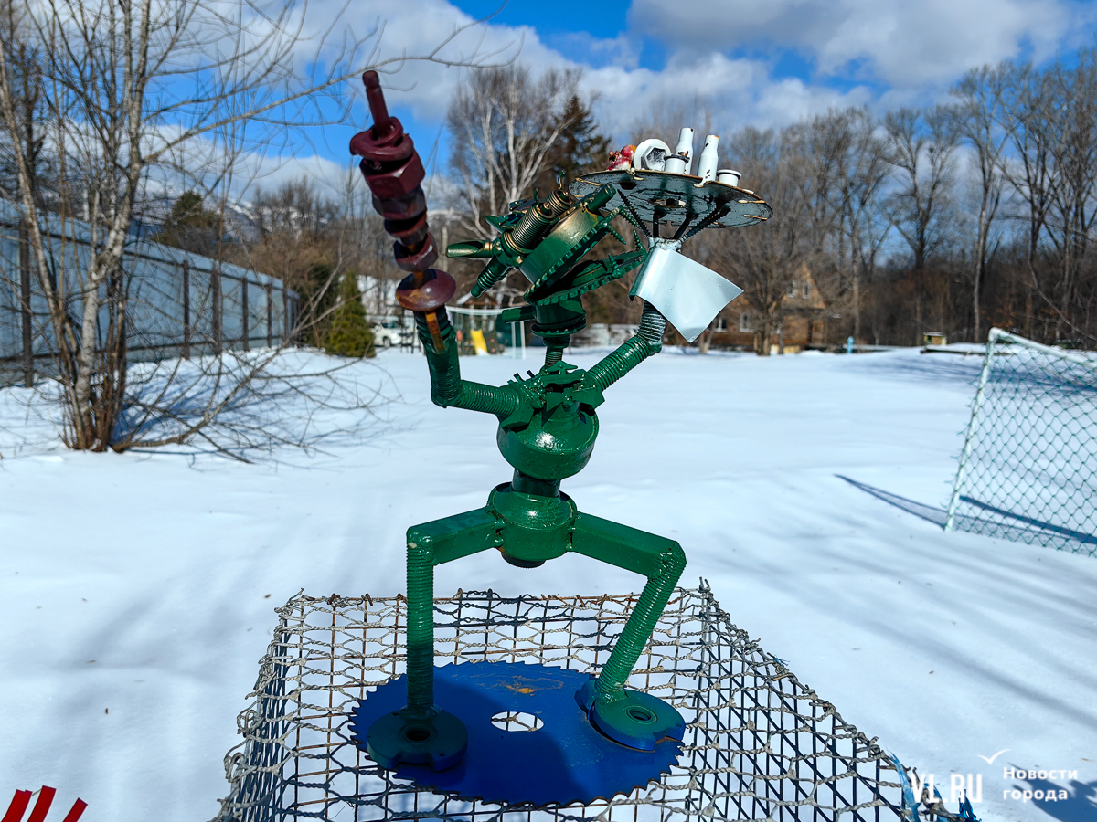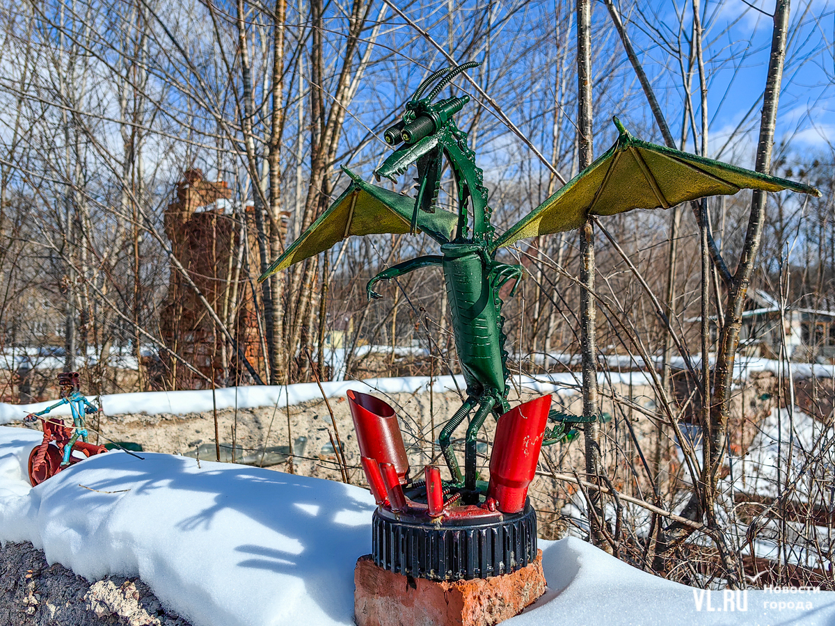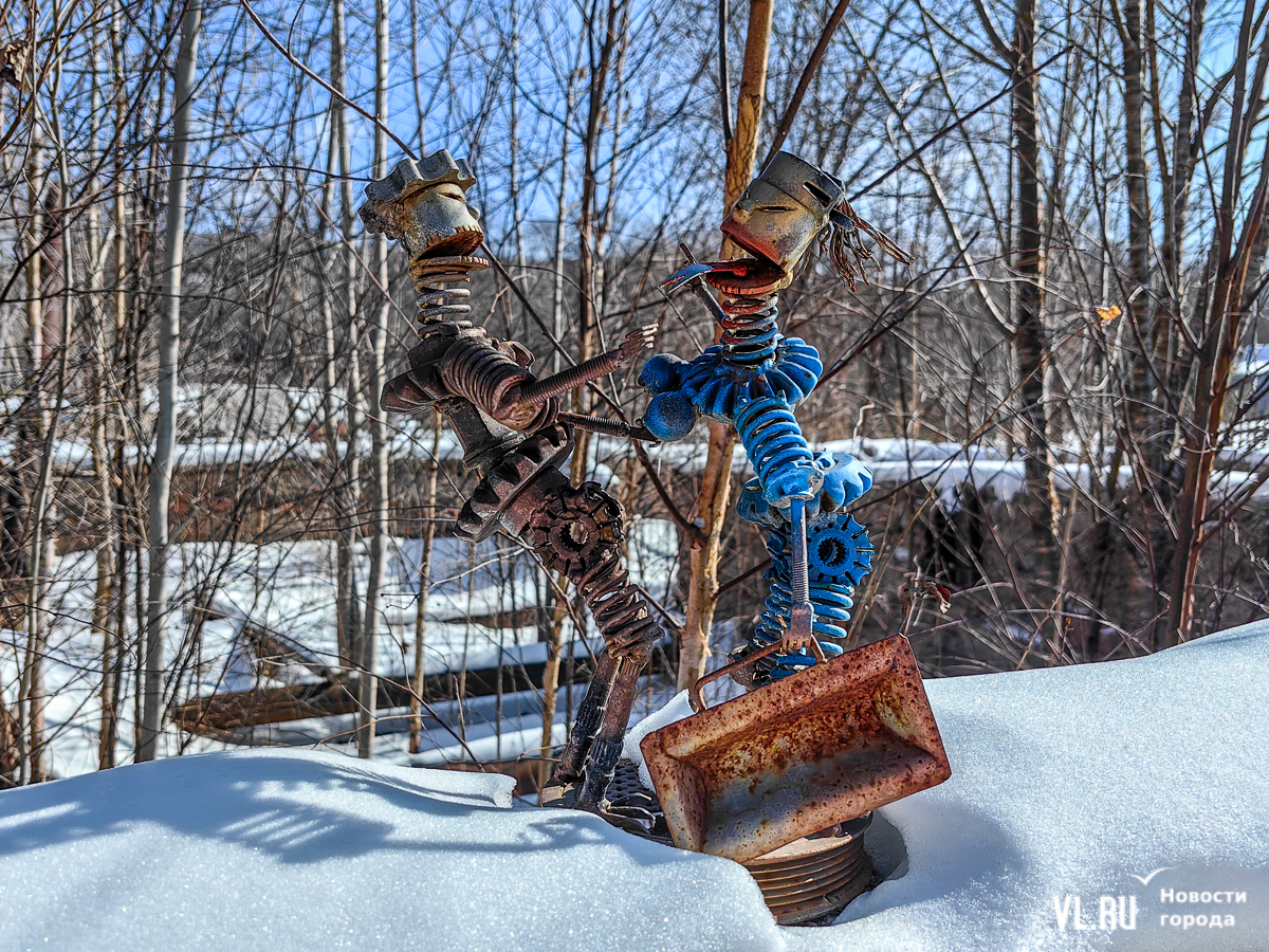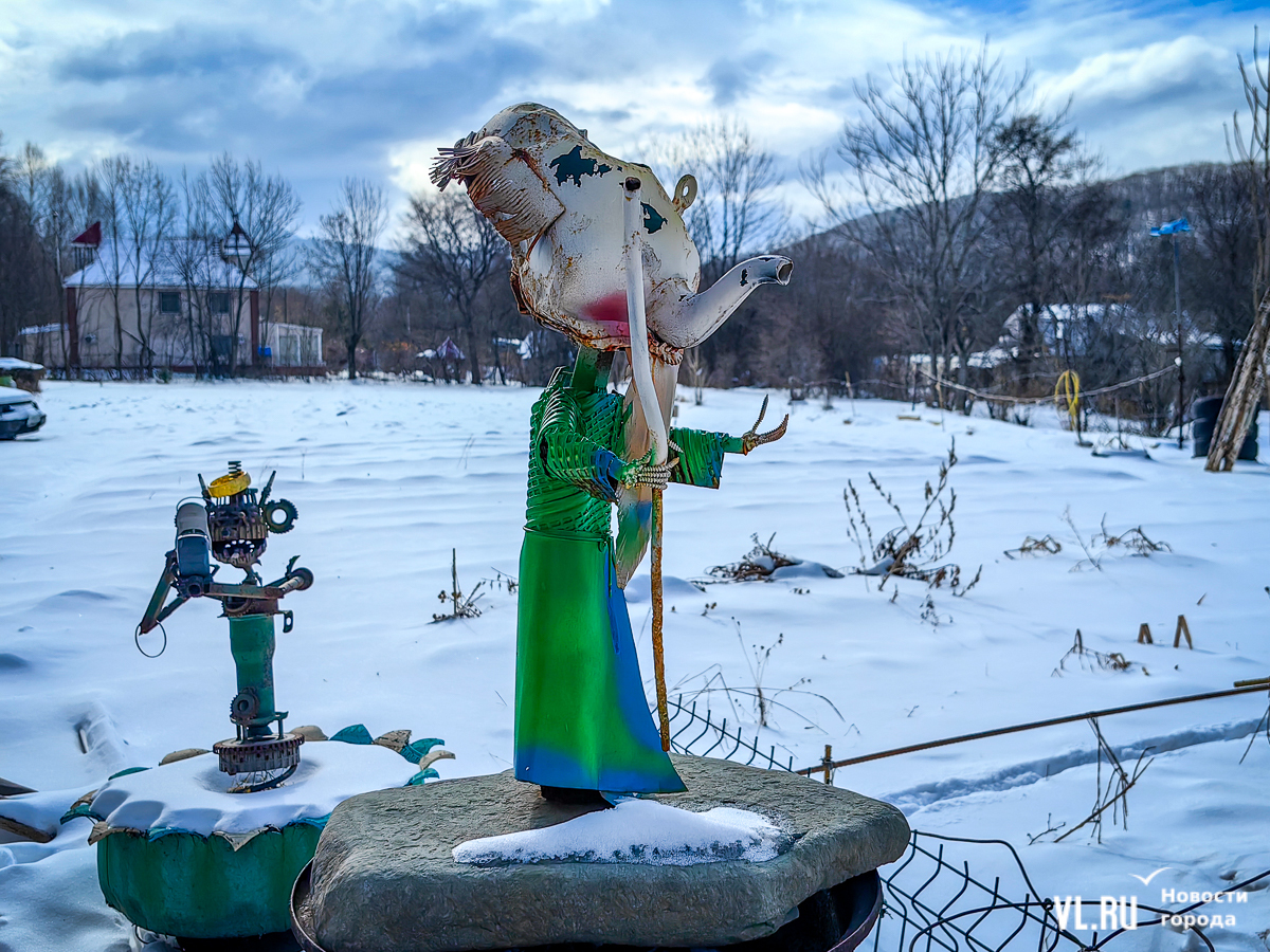 В селе Анисимовка Шкотовского района живёт необычный мастер. Андрей Никифоров создаёт игрушки из автомобильных запчастей, проволоки, болтов и старых вещей. Сейчас на его участке выставлено больше 120 игрушек весом от нескольких грамм до 20 кг. Каждая игрушка и композиция сделана из многих деталей и отражает своё настроение, а на исследование всей коллекции мастера, по его словам, может уйти не один день.