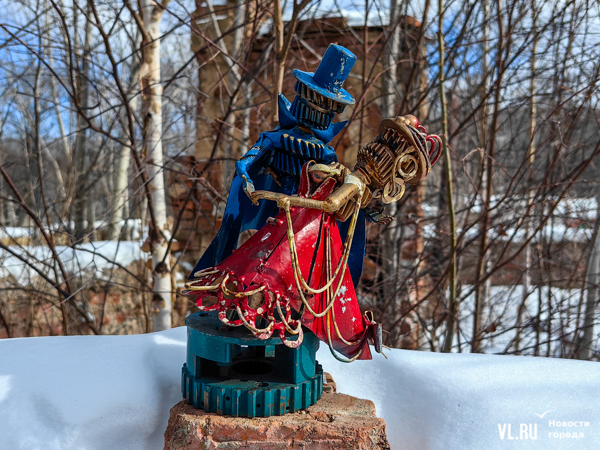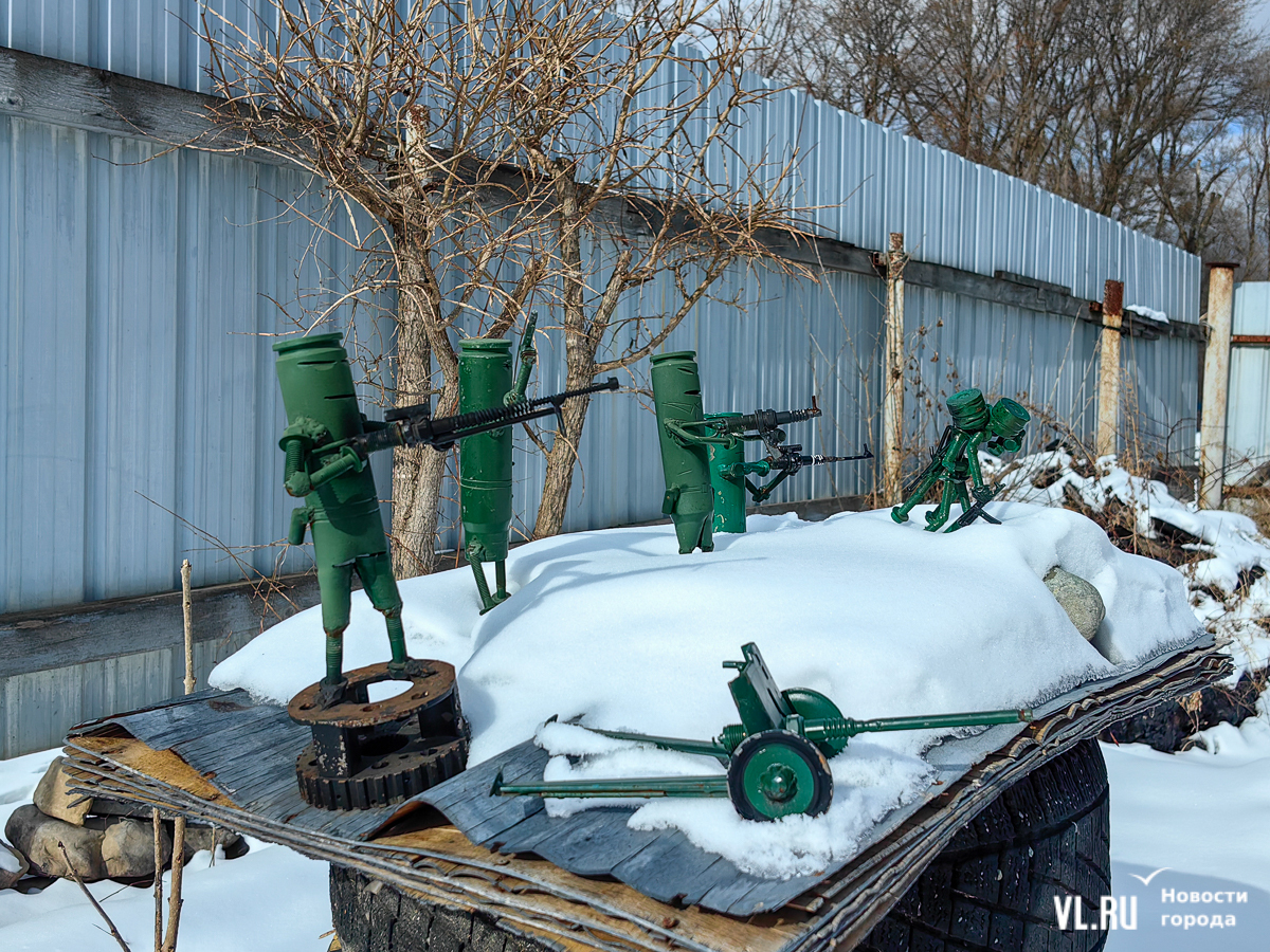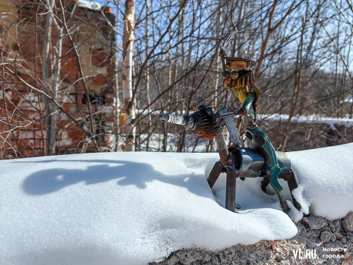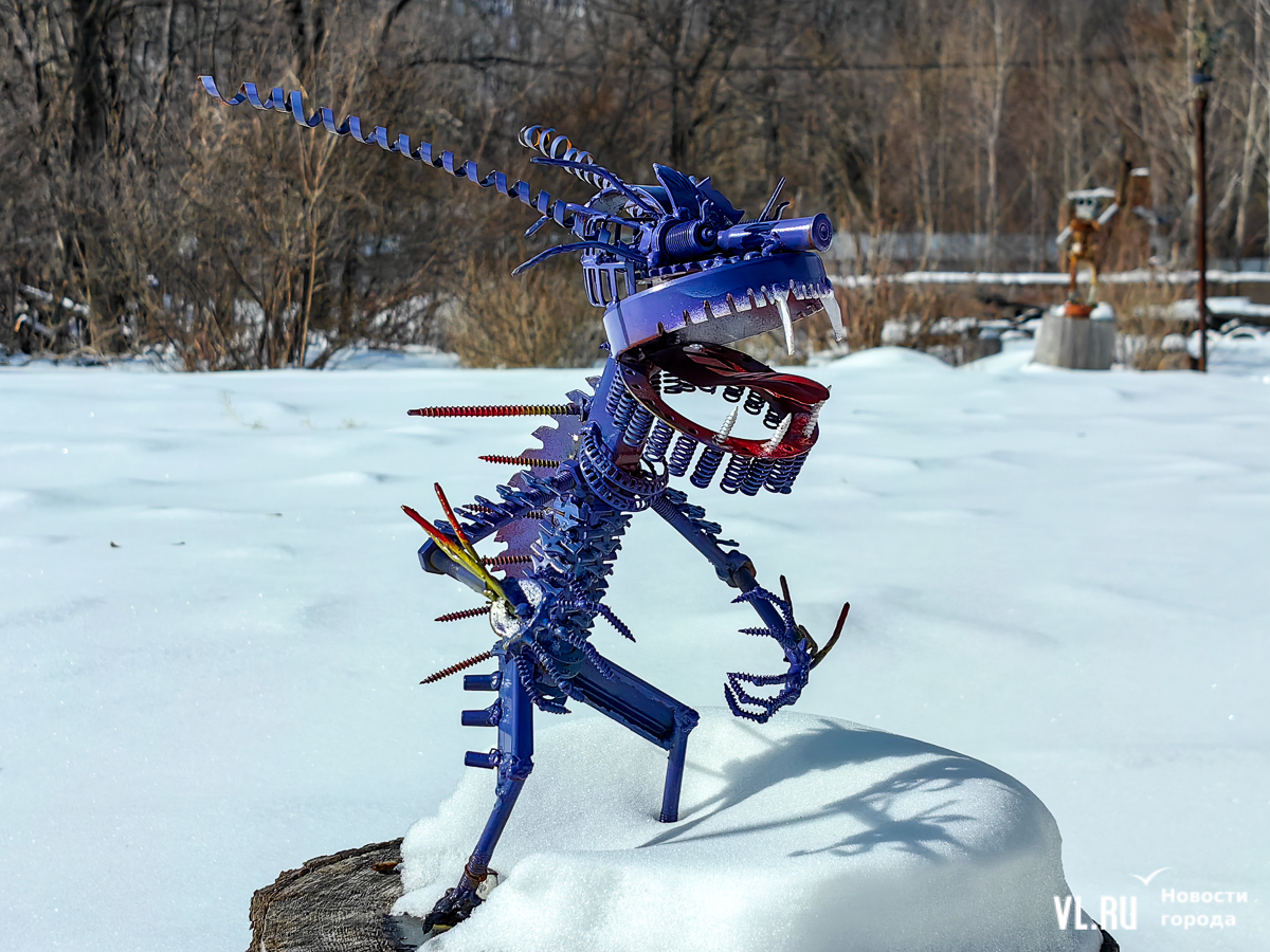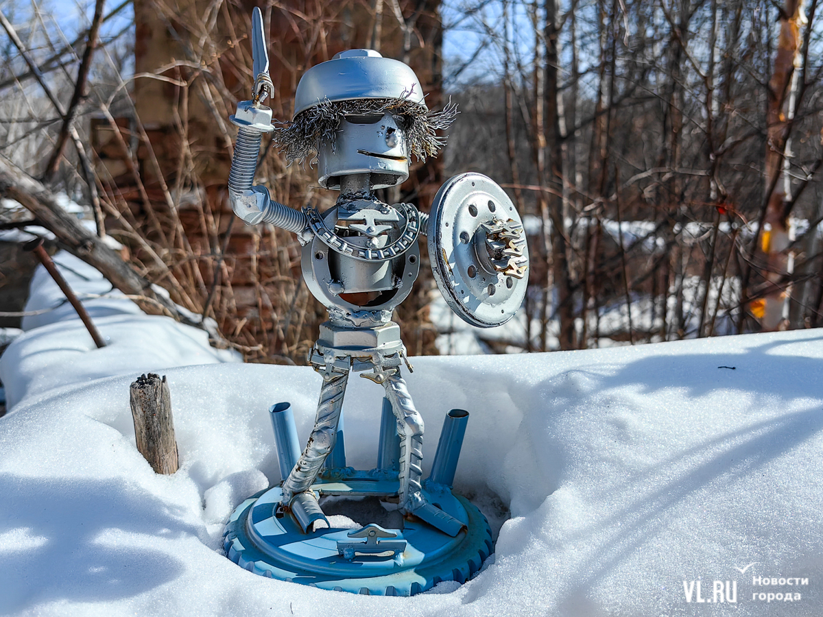 В селе Анисимовка Шкотовского района живёт необычный мастер. Андрей Никифоров создаёт игрушки из автомобильных запчастей, проволоки, болтов и старых вещей. Сейчас на его участке выставлено больше 120 игрушек весом от нескольких грамм до 20 кг. Каждая игрушка и композиция сделана из многих деталей и отражает своё настроение, а на исследование всей коллекции мастера, по его словам, может уйти не один день.