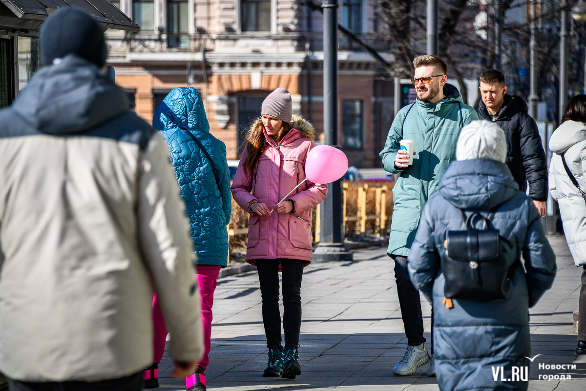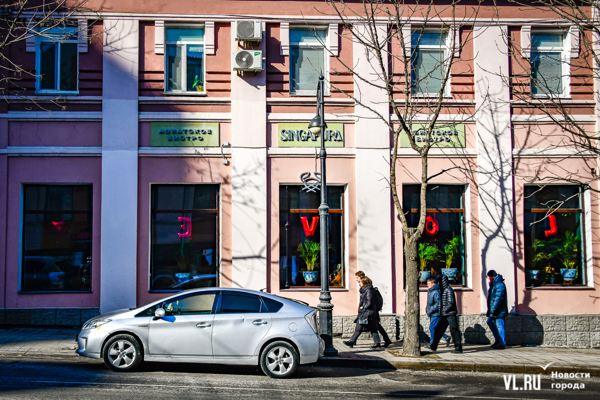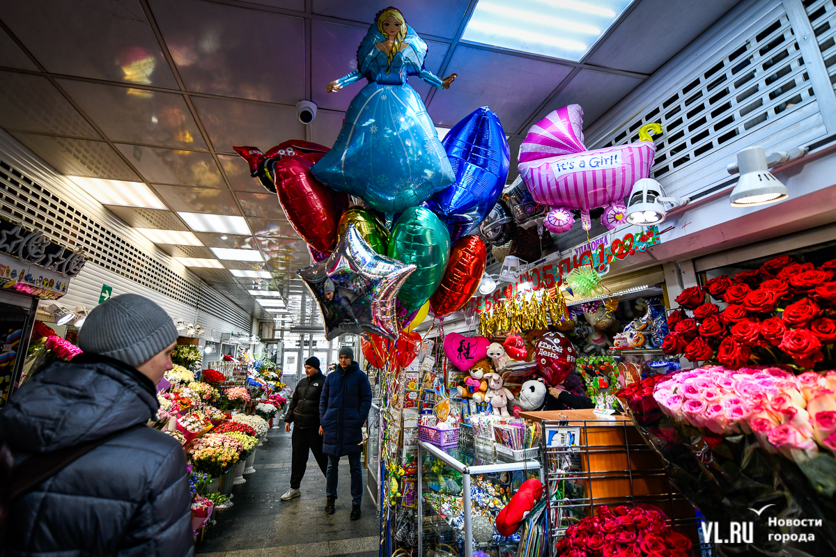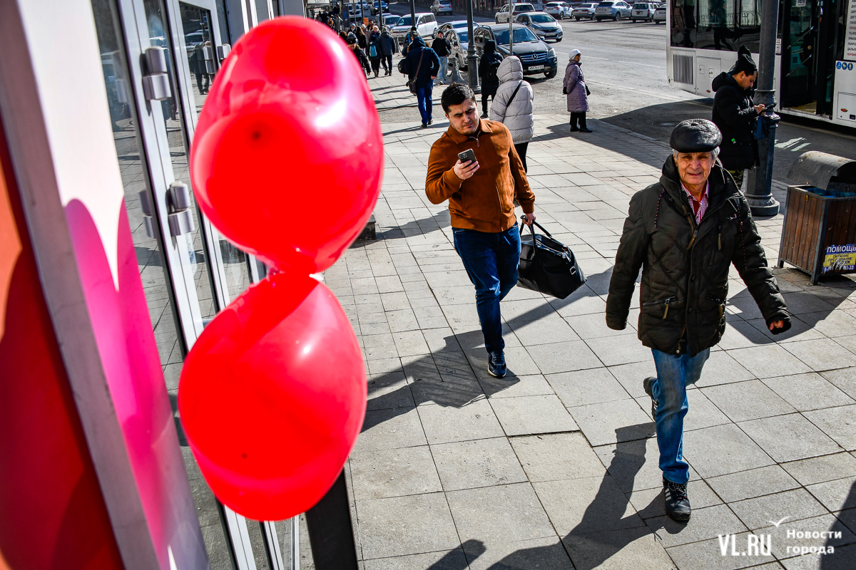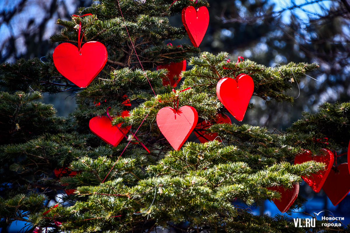 По сравнению с прошлым годом сегодня город практически не украшен. На главной пешеходной улице Владивостока лишь только три магазина развесили на витринах сердечки и атрибутику праздника. А на окнах одного ресторана из шариков написали слово «Love», правда, изнутри, поэтому прохожим с улицы нужно читать его зеркально.