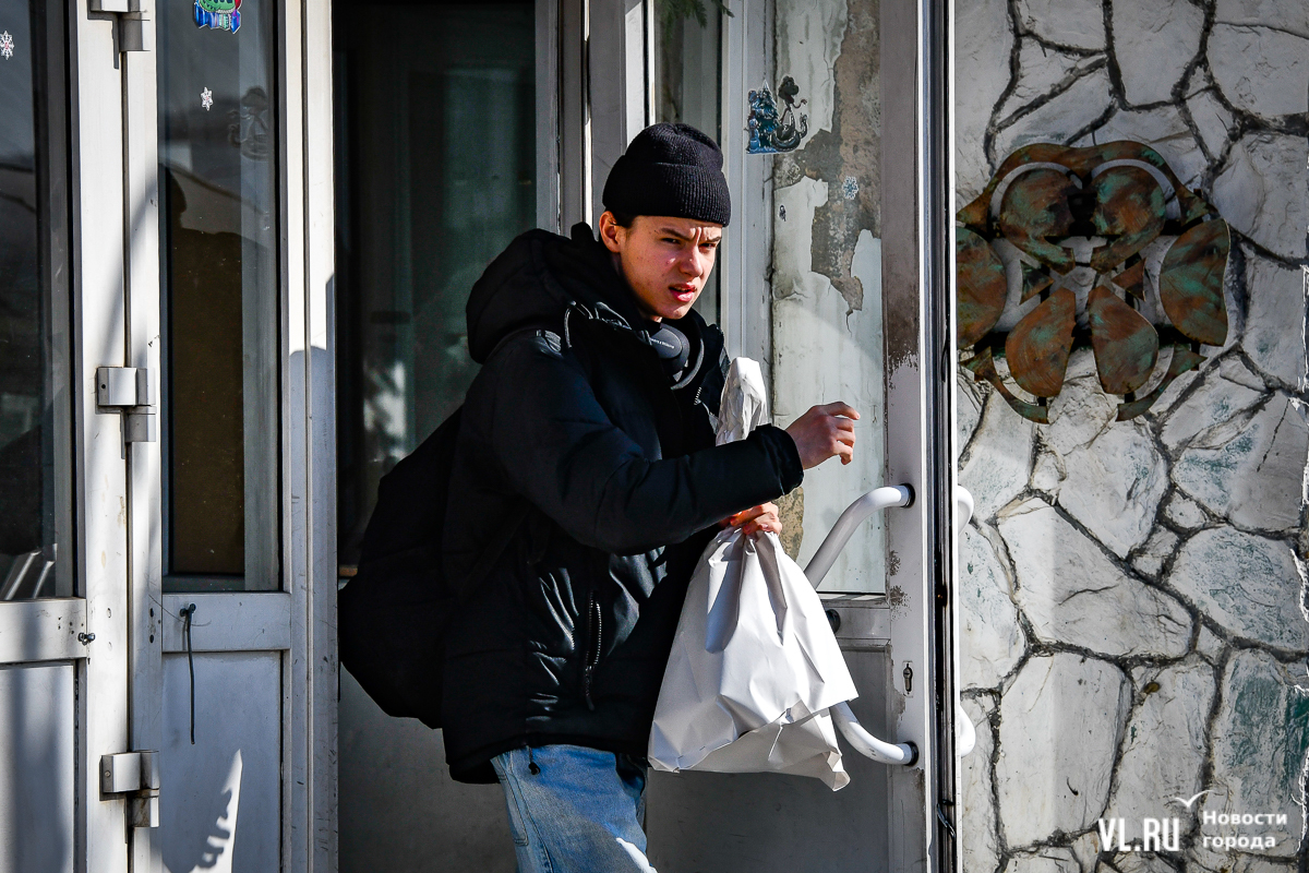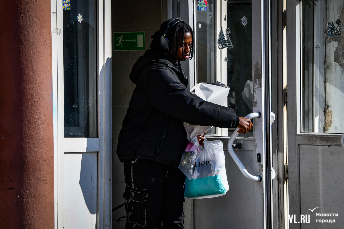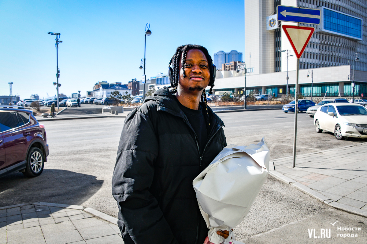 Через несколько минут из пассажа вышел Эммануэль с большим букетом. Он рассказал, что во Владивосток приехал учиться, а цветы в этот день решил подарить сам себе.