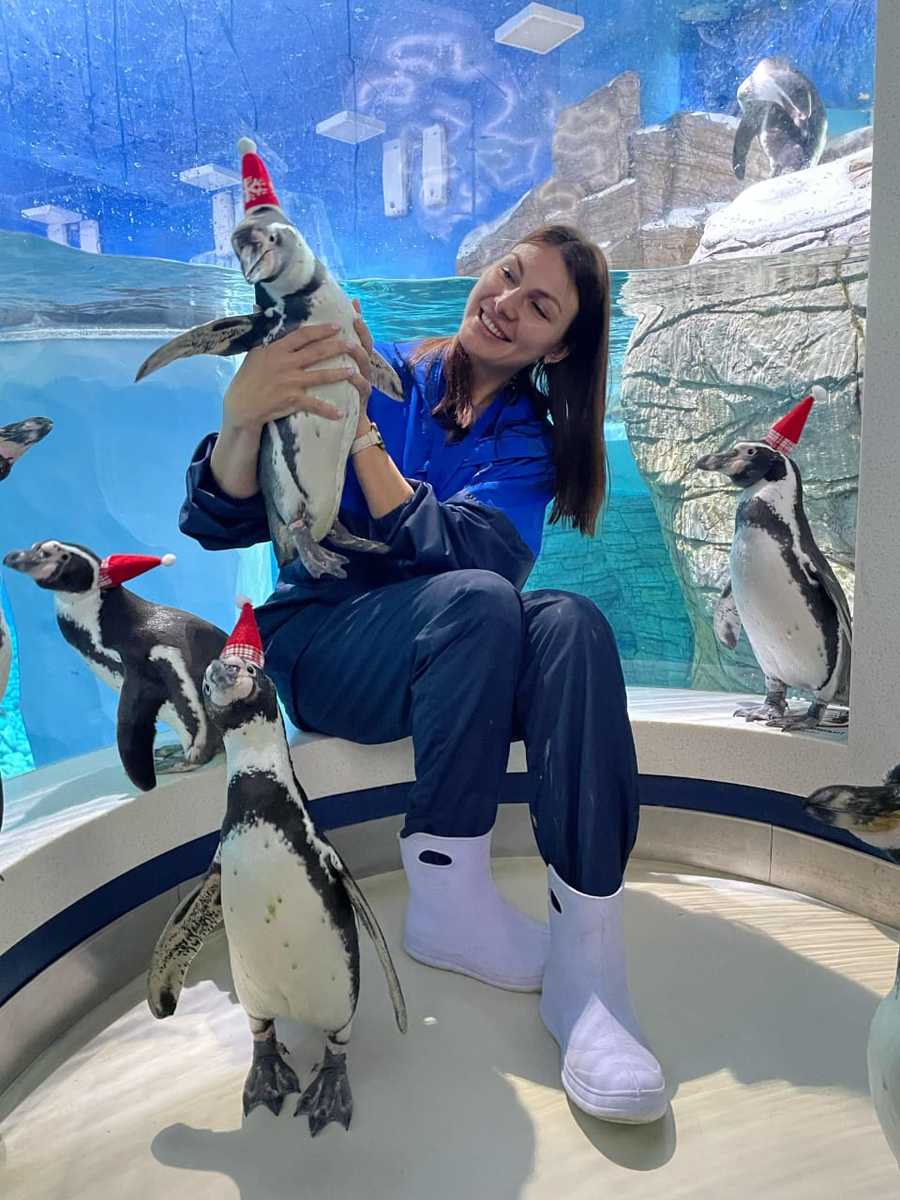 – У нас каждый сотрудник имеет высшее биологическое или экологическое образование, – рассказала Олеся Чернышова. – А это априори означает, что для них главное – любовь к живой природе. Я работаю с птицами уже 16 лет и ни разу в жизни об этом не пожалела. Знаю, что не жалеют о выборе профессии и мои коллеги. Конечно, в работе с пингвинами есть своя специфика: у этих морских птиц не только особенное строение тела, но и определённое поведение, привычки. Данных по изучению пингвинов Гумбольдта ещё слишком мало, поэтому у наших специалистов есть возможность наблюдать за ними в режиме 24/7 и делиться опытом с коллегами со всей страны.