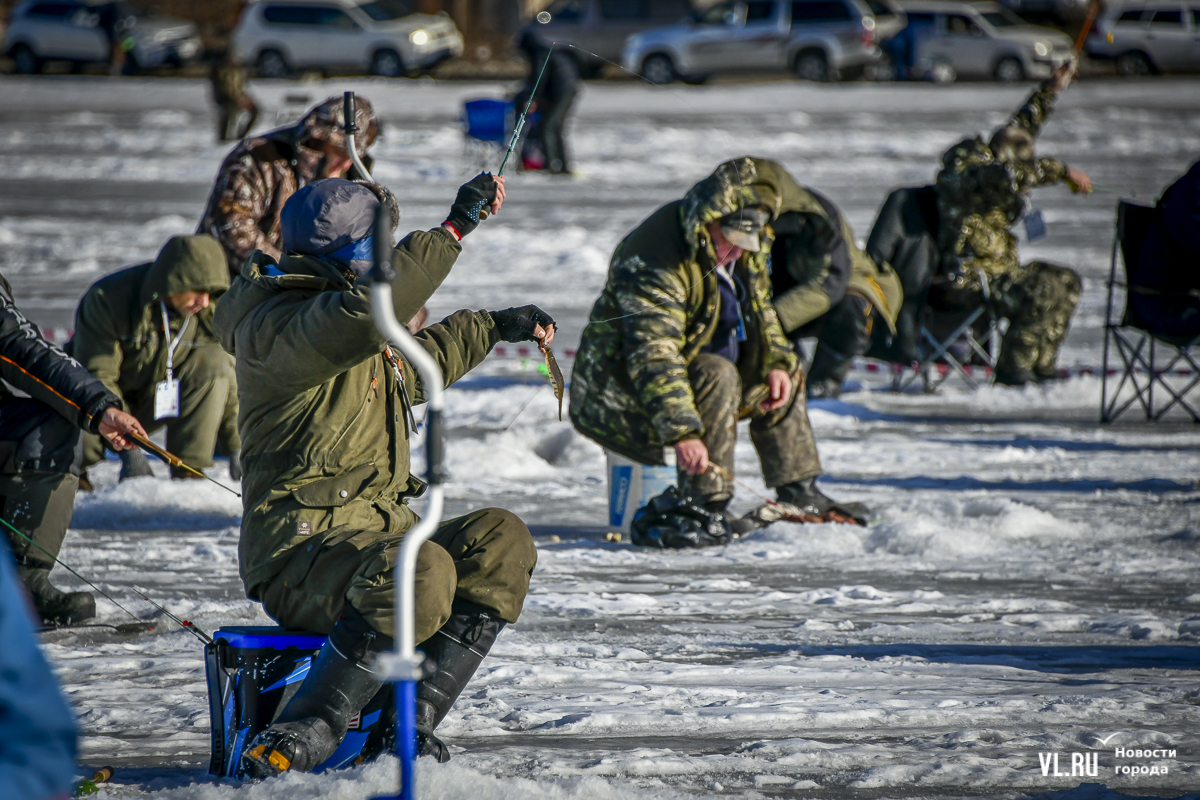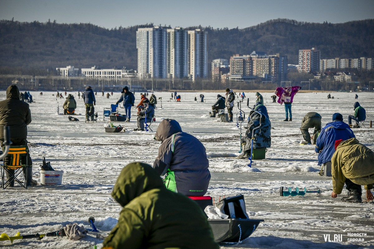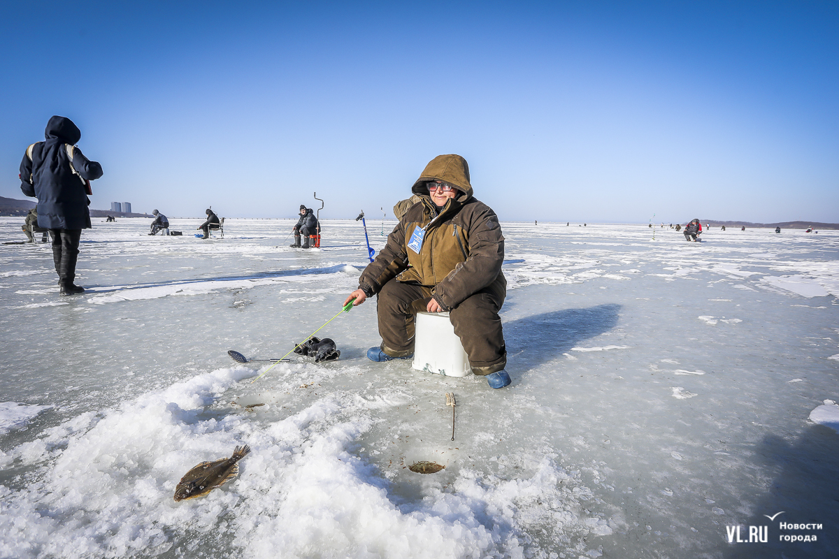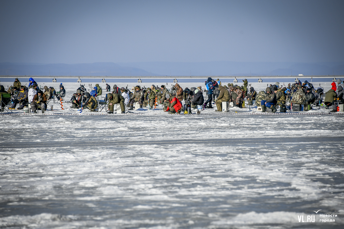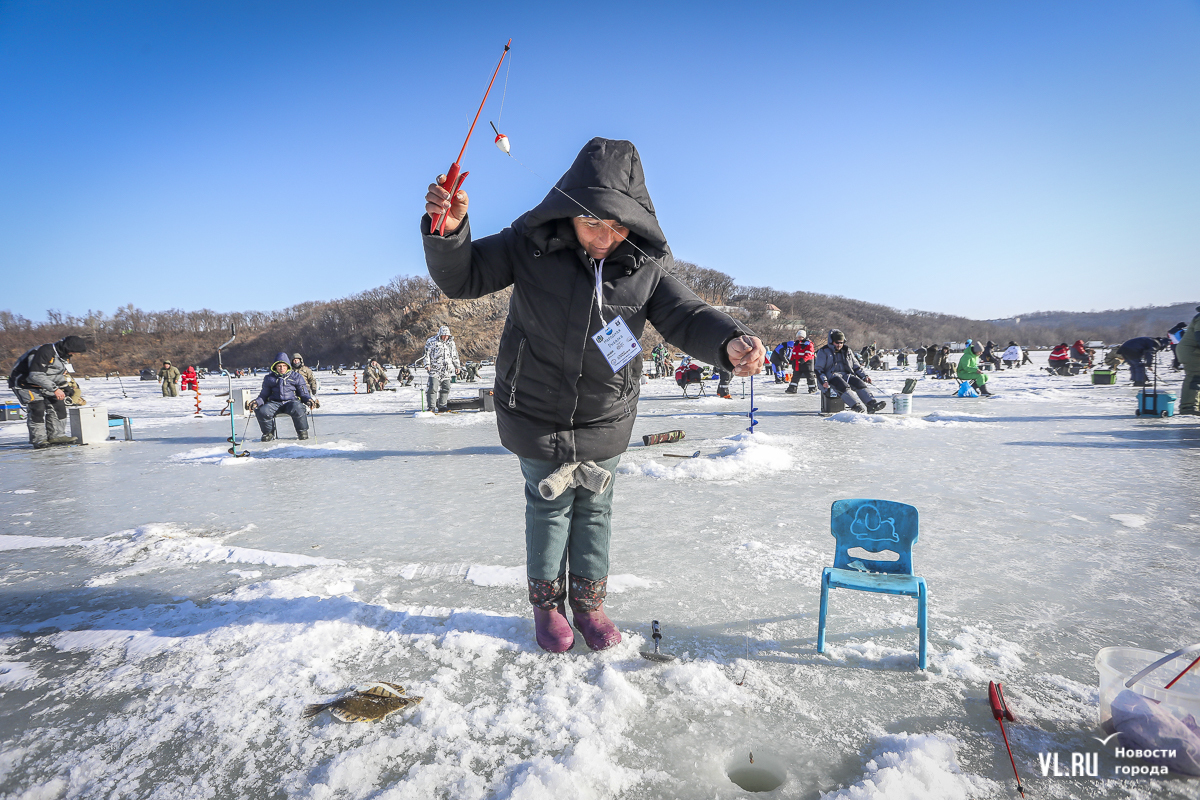В субботу, 22 февраля, на Океанской во Владивостоке прошла 14-я Народная рыбалка. Почти 500 рыбаков с удочками для подлёдного лова, коробами и вёдрами с наживкой под звуки горна отправились бурить лунки и проверять улов. Зимняя рыба – навага и корюшка – сегодня не ловилась, зато живо клевала камбала. Соревнования длились три часа. Всего участники поймали 154 кг рыбы. Победителю за улов почти в 5 кг подарили моторную лодку.