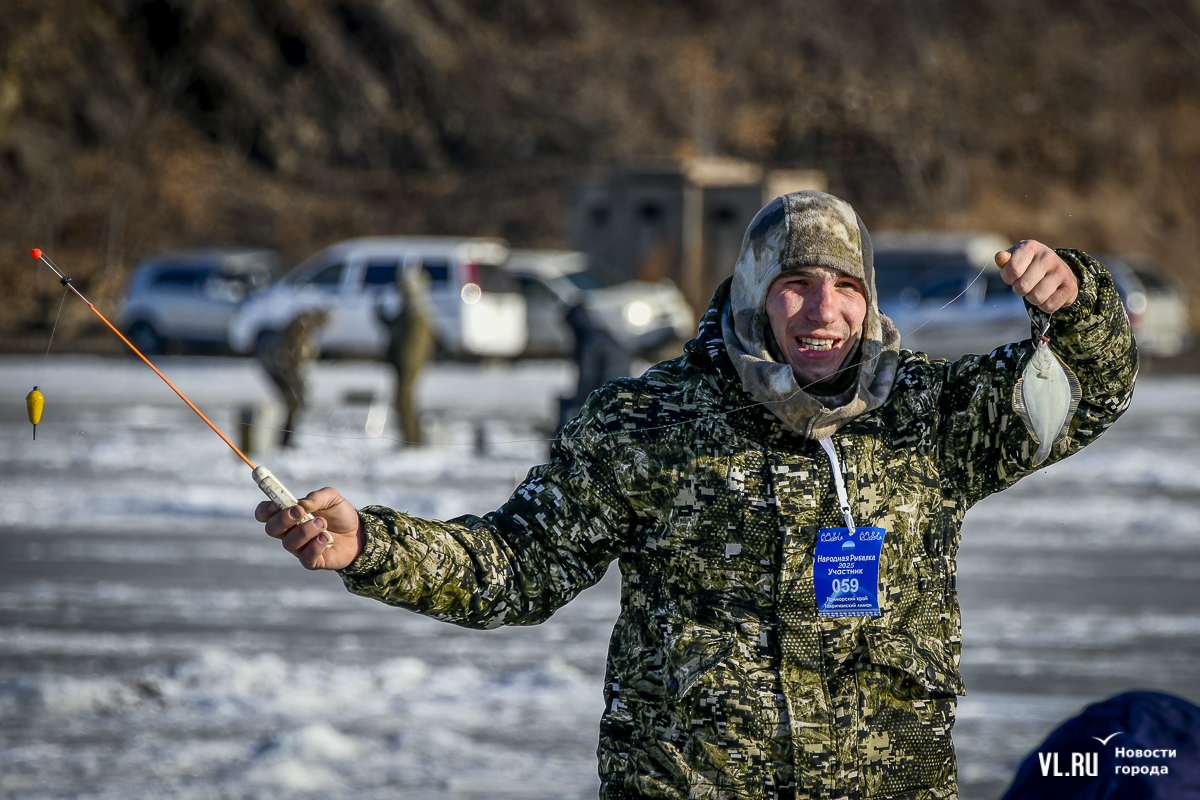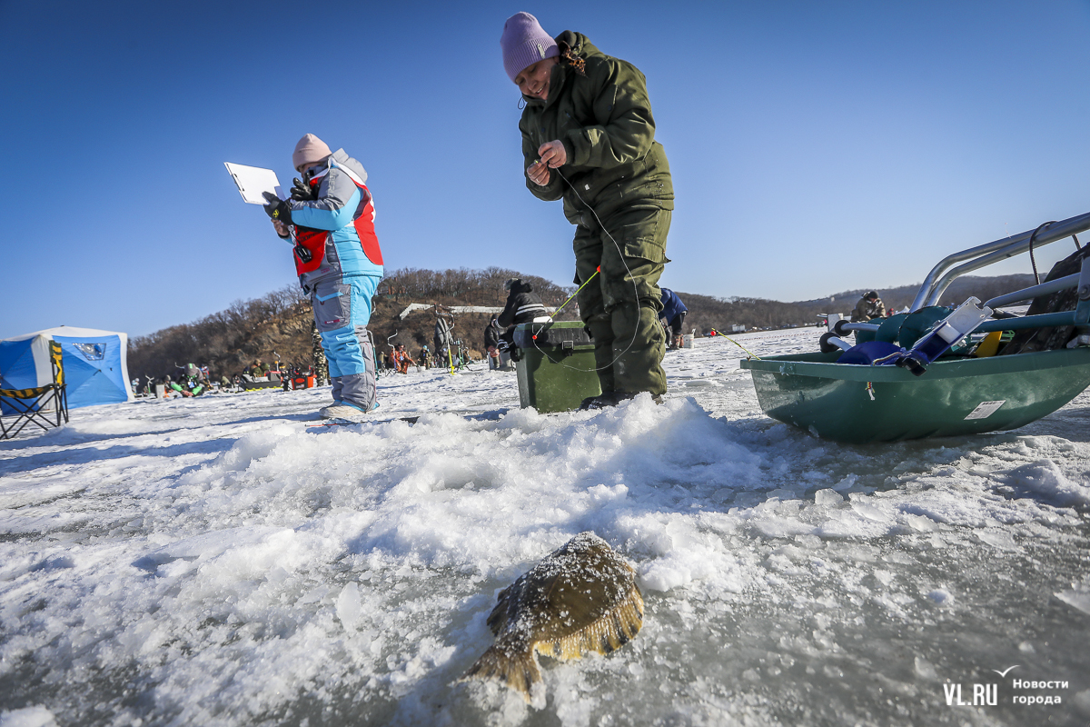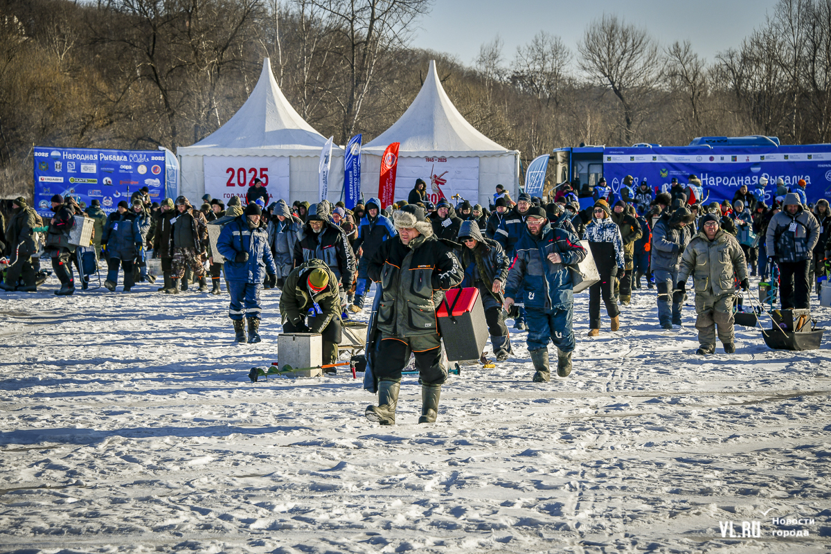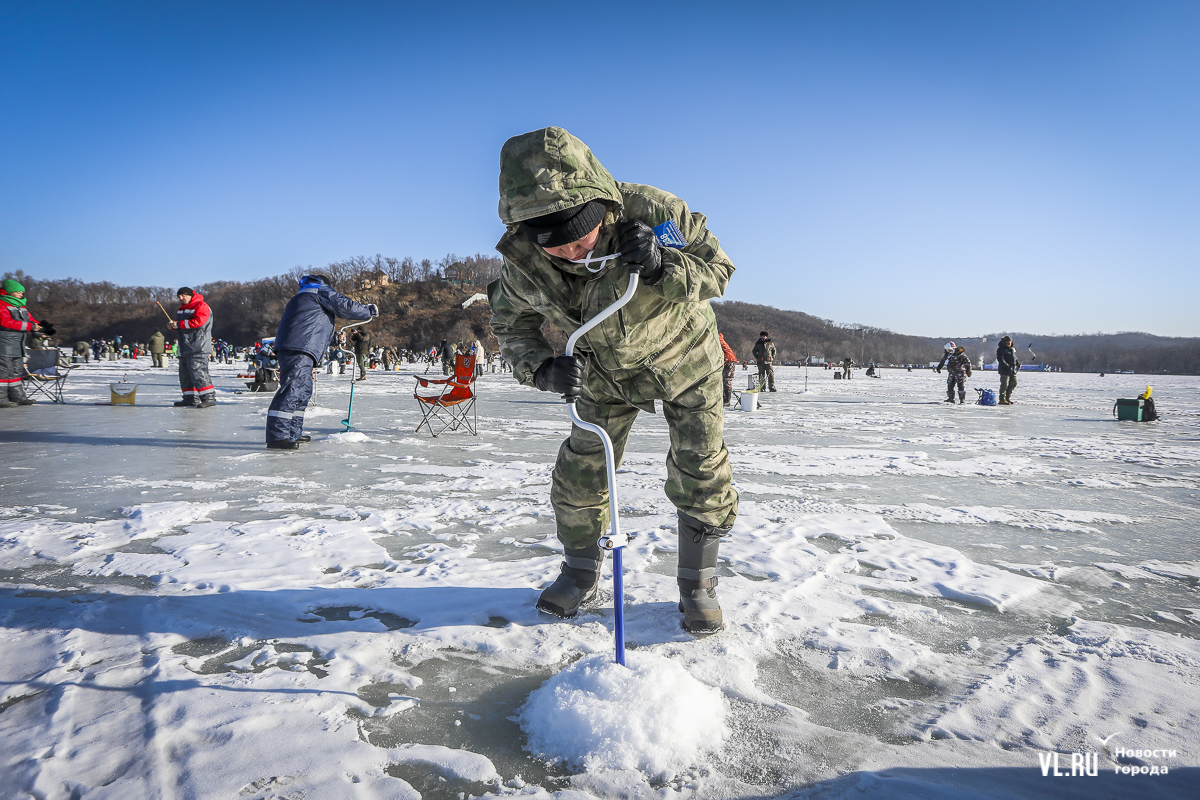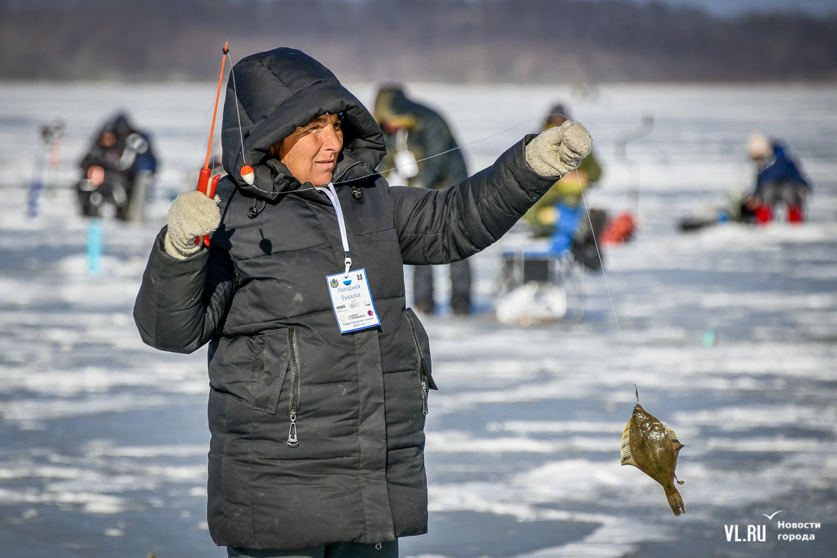 В субботу, 22 февраля, на Океанской во Владивостоке прошла 14-я Народная рыбалка. Почти 500 рыбаков с удочками для подлёдного лова, коробами и вёдрами с наживкой под звуки горна отправились бурить лунки и проверять улов. Зимняя рыба – навага и корюшка – сегодня не ловилась, зато живо клевала камбала. Соревнования длились три часа. Всего участники поймали 154 кг рыбы. Победителю за улов почти в 5 кг подарили моторную лодку.