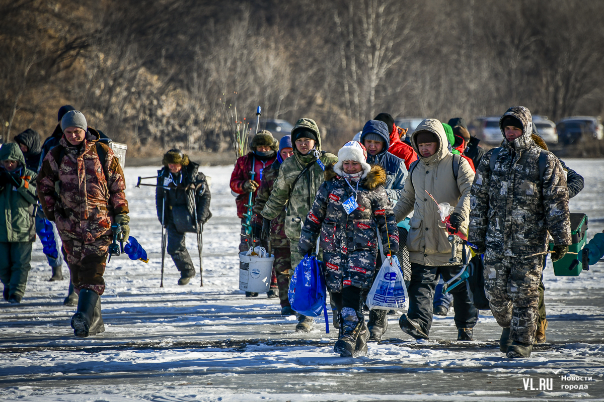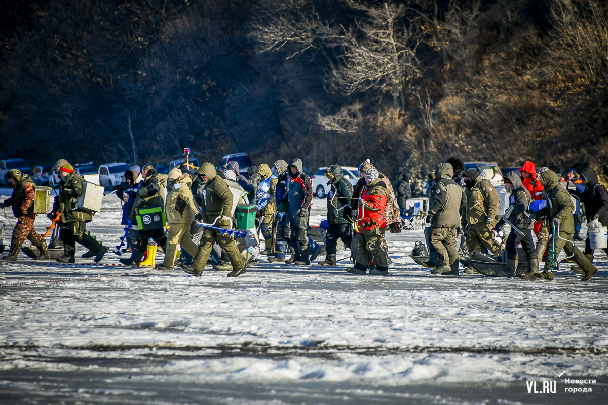 Рыбаки хором ответили: «Да!» и пошли к линии старта. Ровно в 10:00 прозвучал горн, и все двинулись к отмеченной на льду площадке примерно за 500 м от берега. Все спешили занять лучшее место, но никто не бежал. Этой зимой рыбаки осторожничают, ведь лёд так долго не вставал, и уже произошло немало трагедий.