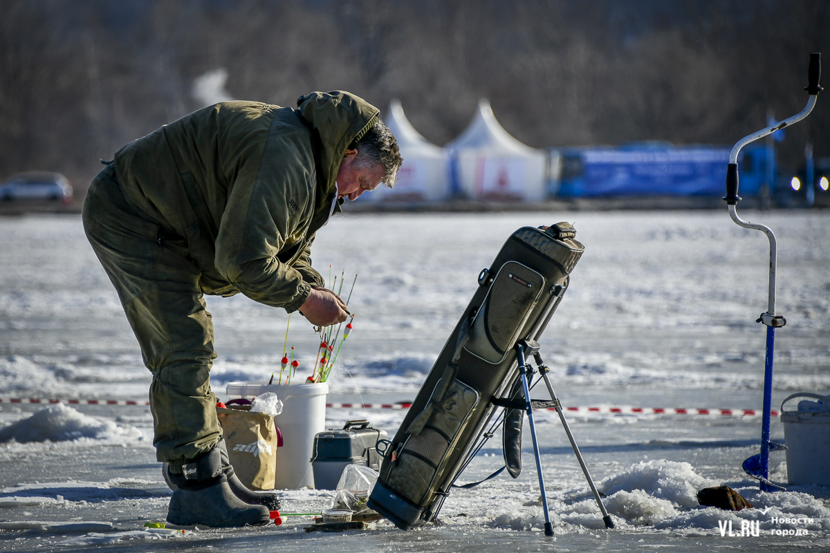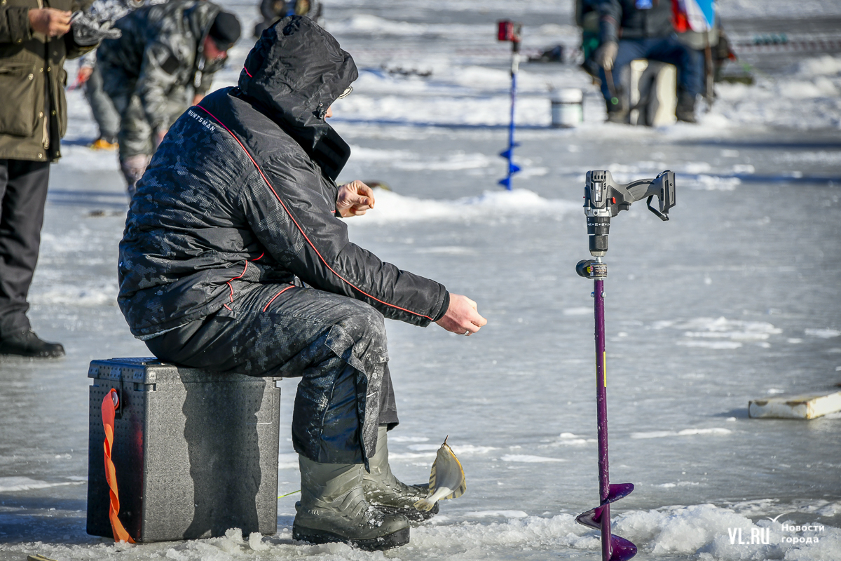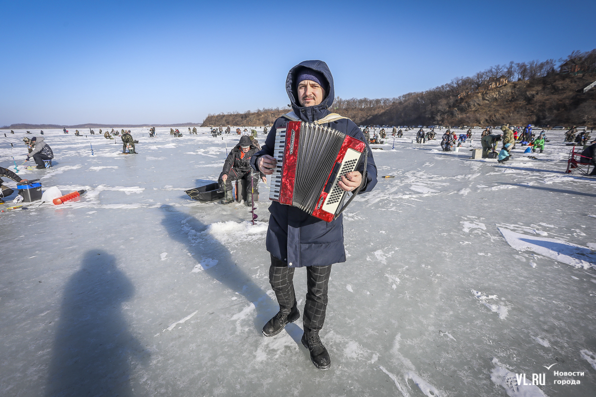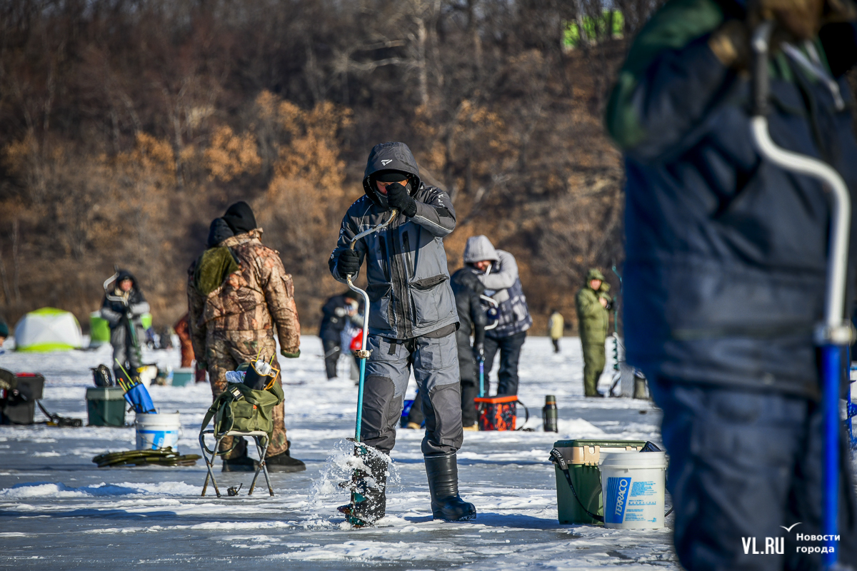 В морском городе рыбак с коробом за спиной – персонаж вполне привычный. Сегодня на Океанской было 500 таких персонажей. И в каждом рыболовном ящике – целый мир: короткие удочки, половники с дырками, чтобы убирать лёд из лунок, наживки, поплавки и другие снасти.