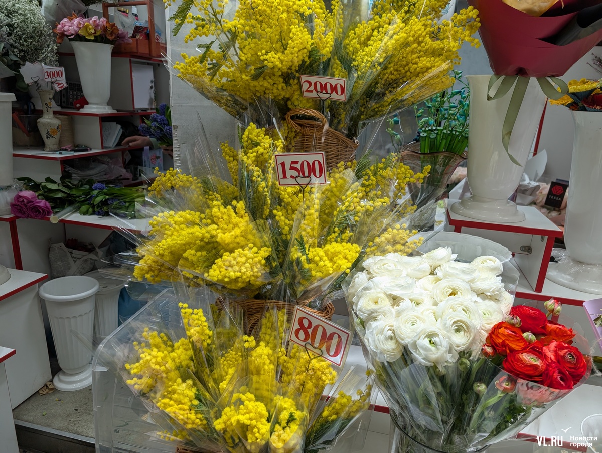 В «Цветочном пассаже» продажи тоже шли на ура, хотя сегодня ещё только 6 марта, рядом с прилавками тюльпанов выстраивались очереди. Классические тюльпаны продаются по 200-250 рублей, в простенькой упаковке букет стоит 1100-1350 рублей. Веточки мимозы продаются от 800 рублей.