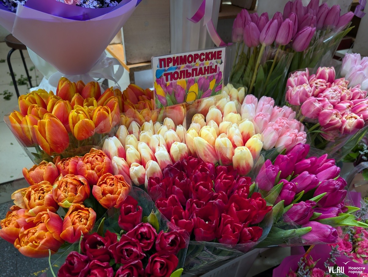 Тюльпаны к 8 Марта в этом году подорожали сразу на 40-70%. Причём это случилось не за два дня до праздника – уже в феврале по оптовым ценам было понятно, что по 100 рублей цветов не будет. Поставщики говорят, что стали дороже сами луковицы в Голландии и отопление теплиц в Приморье, где из них к началу марта выращивают тюльпаны. Небольшой букетик из пяти штук в цветочном магазине или у дороги обойдётся в среднем в 850-1650 рублей. Дешевле – только в продуктовых супермаркетах.