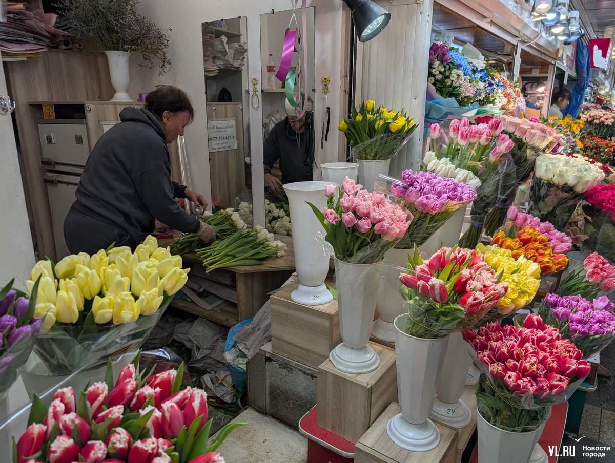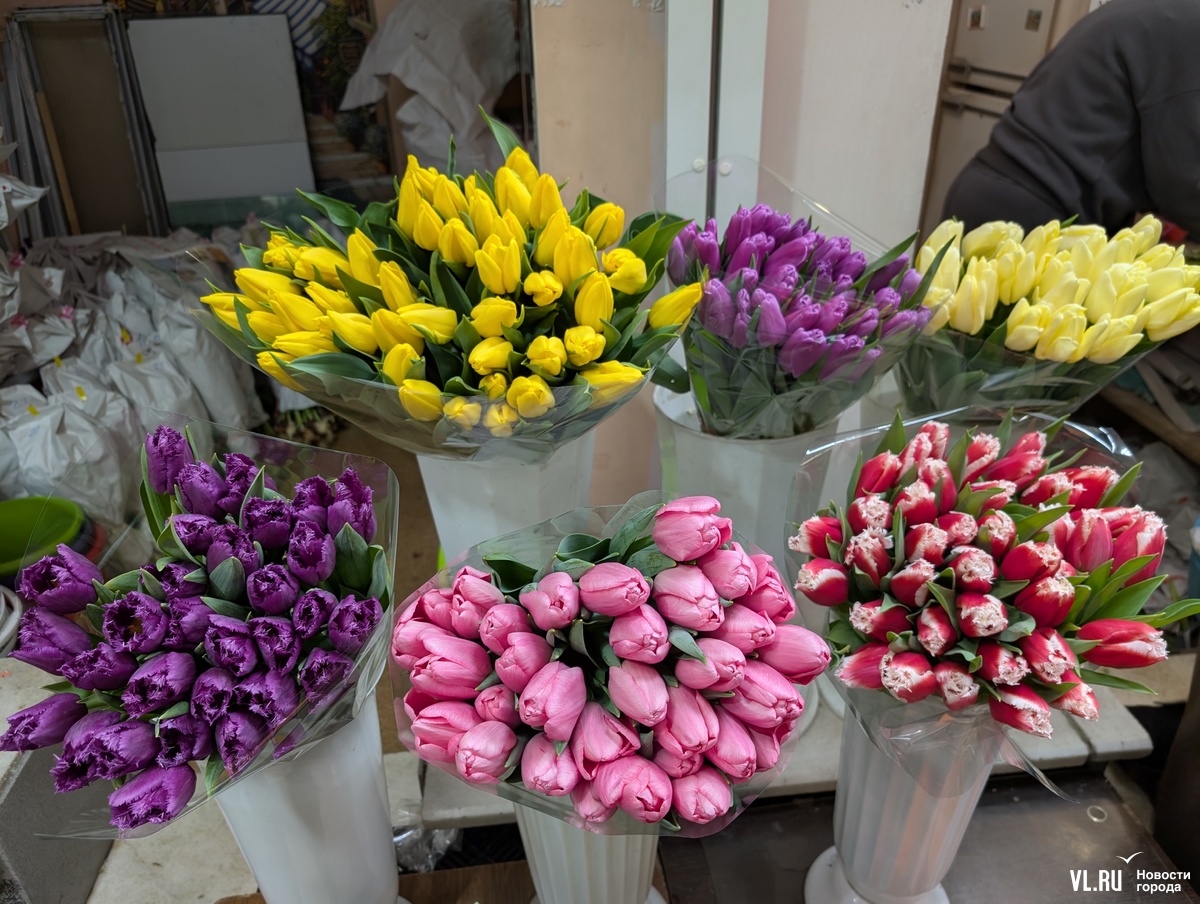 Продавцов тюльпанов видели уже и на улицах города. У них цены как в цветочных магазинах – от 170 до 250 рублей. В прошлом году у них тоже было на 50-100 рублей дешевле, и то это считалось дорого. Тогда продавцы говорили, что поставщикам завезли бракованные луковицы: листья из них появлялись, а бутоны – нет. А в этом году даже на «Фарпосте» у оптовых продавцов тюльпаны стоят от 80 до 200 рублей.