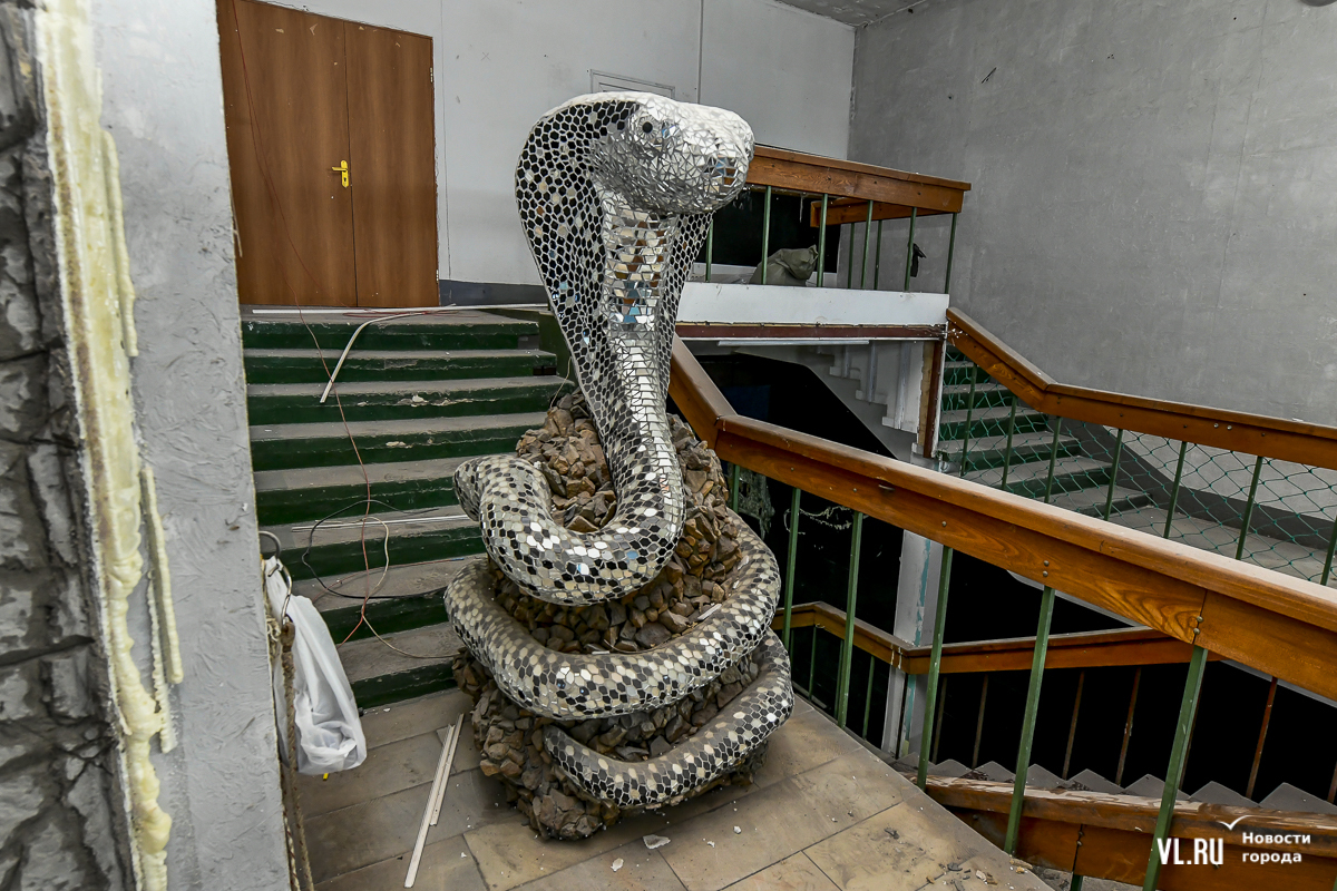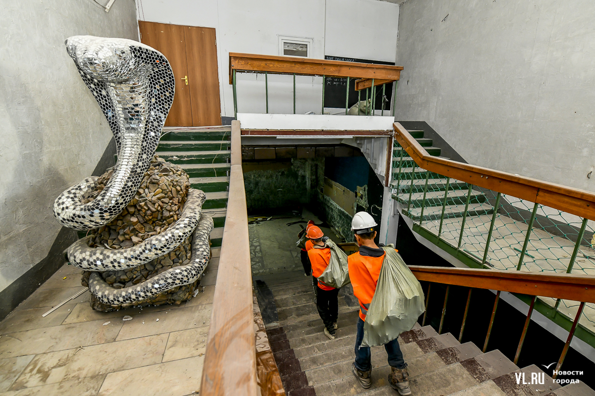 В здании бывшего океанариума на Батарейной заканчивают работы по демонтажу всего, к чему так привыкли жители Владивостока: надстроек и козырька крыльца снаружи, а также всех аквариумов и элементов декора внутри. Перестройка здания, ради которой был выселен городской океанариум и почти все арендаторы, затронет весь объект – помещения, территорию вокруг и крышу, которая станет эксплуатируемой. Работы начались в первой декаде февраля, а уже в сентябре здесь обещают открыть Национальный центр «Россия». К этому моменту выполнят первый из трёх этапов реконструкции. Последний намечен на 2027 год.