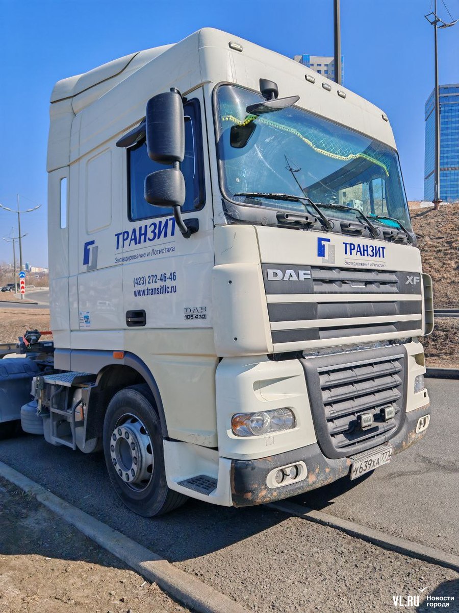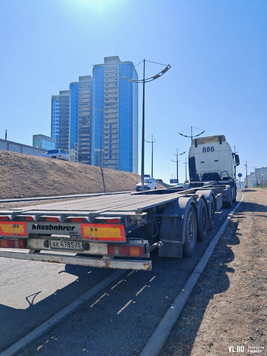 Как мы уже рассказывали ранее, большегрузы в Первомайском районе чаще всего стоят в ожидании своей очереди, чтобы проехать в порт. Но иногда это и просто неместные дальнобойщики, которые не знают, куда ещё податься. На фотографиях можно заметить как приморские номера, так и код региона 27 и 777 (Хабаровский край, Москва). Во Владивостоке уже больше десяти лет обсуждают стоянки для большегрузов, но ни одной так и не построили.