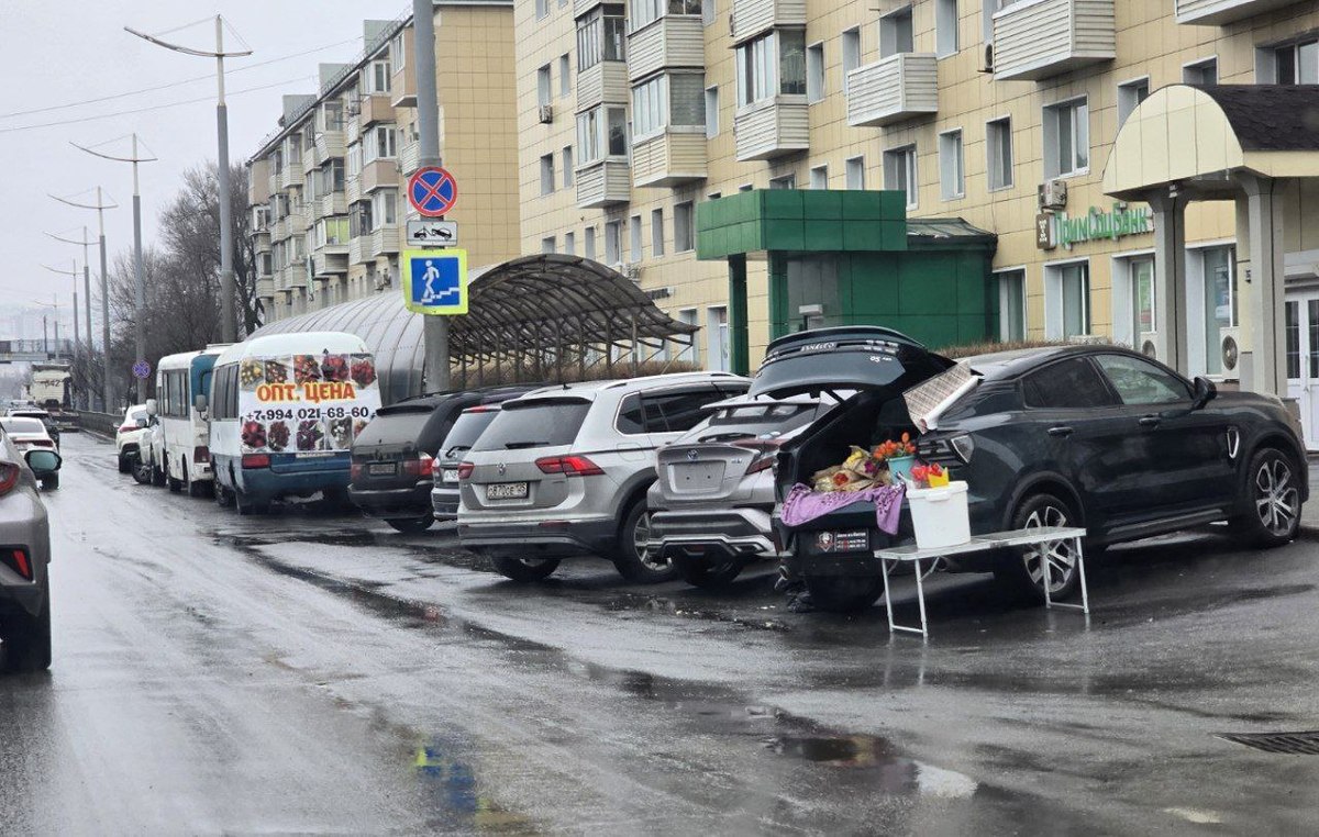 На остановке «Гайдамак» с машины торгует более успешный продавец, у которой из 8000 цветов осталось меньше 2000. Поэтому цену на свои тюльпаны она сбросила не слишком сильно по сравнению с праздничным днём. Она закупала большой объём с расчётом на продолжение торговли и сейчас отдаёт цветы по 100 рублей. Говорит, что спрос есть, только опять-таки подводит погода, в дождь на улицах меньше потенциальных покупателей. А бутоны тюльпанов способны украсить эти серые весенние деньки своими яркими цветами.