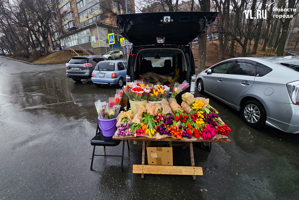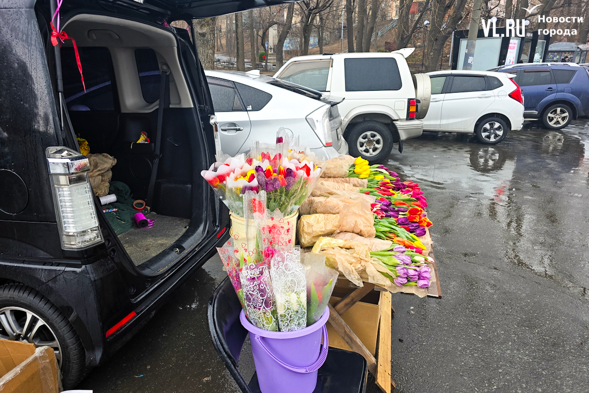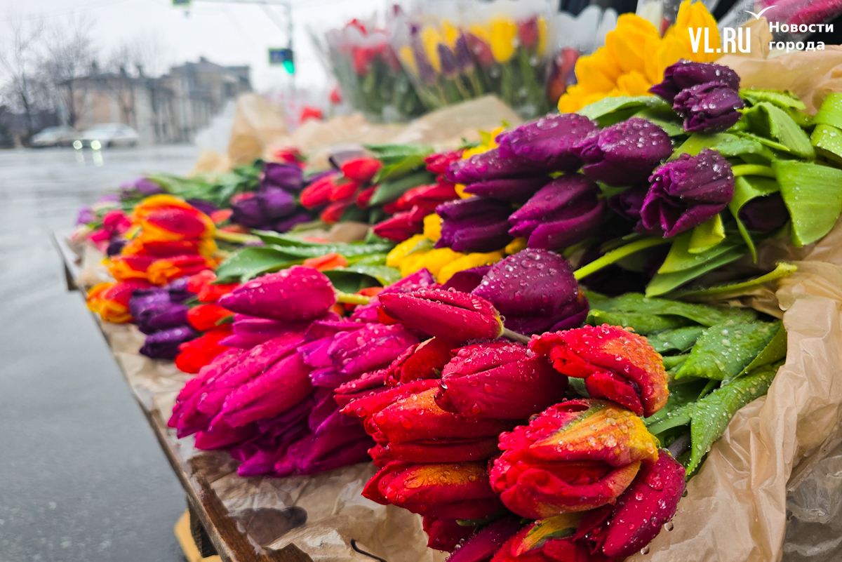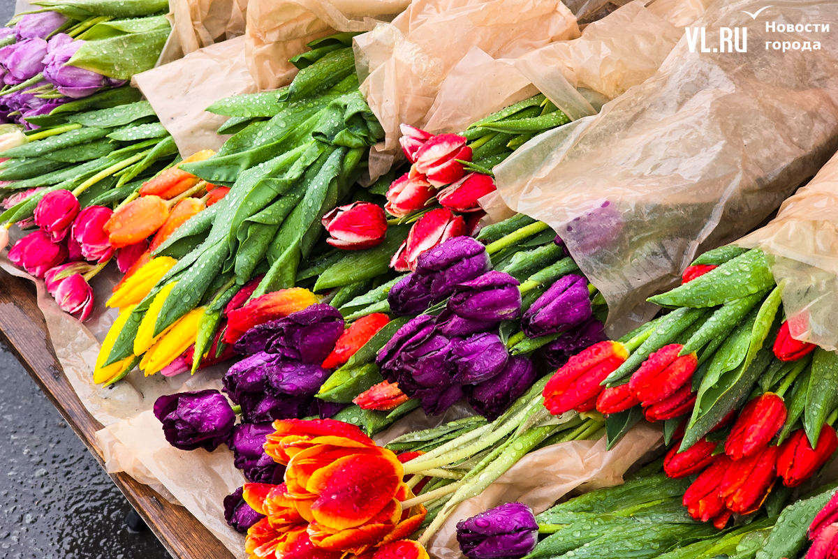 12 марта на улицах Владивостока всё ещё можно увидеть продавцов тюльпанов. Они начали торговать цветами к Международному женскому дню и продолжают до сих пор, хотя обычно заканчивают это делать гораздо раньше. Сейчас цена за один цветок варьируется от 50 до 100 рублей и зависит от его сорта и объёма букета.