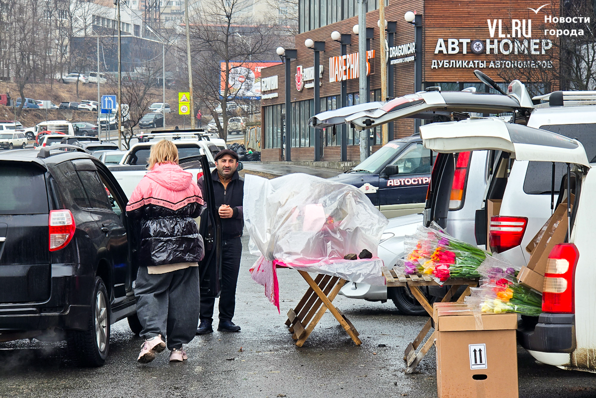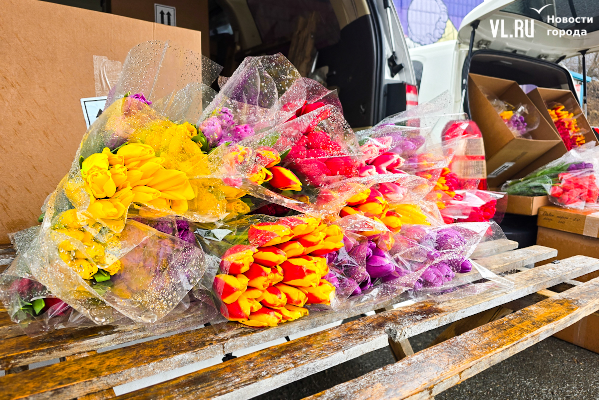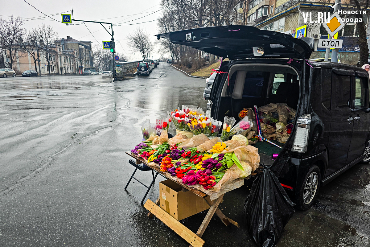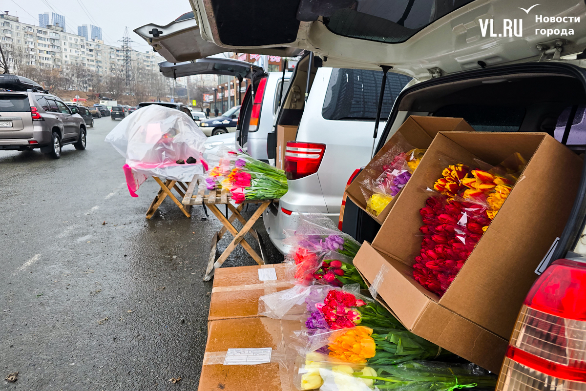 12 марта на улицах Владивостока всё ещё можно увидеть продавцов тюльпанов. Они начали торговать цветами к Международному женскому дню и продолжают до сих пор, хотя обычно заканчивают это делать гораздо раньше. Сейчас цена за один цветок варьируется от 50 до 100 рублей и зависит от его сорта и объёма букета.