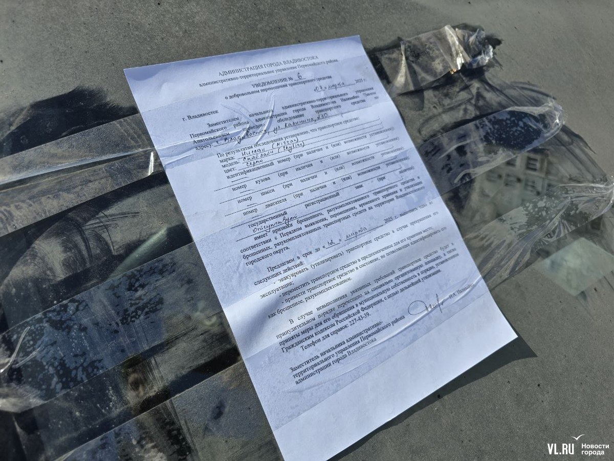 Сообщить о брошенных автомобилях, долгое время стоящих разукомплектованными во дворах домов и на других территориях, можно в городскую администрацию через чат-бот по ссылке @adm_vl_bot.