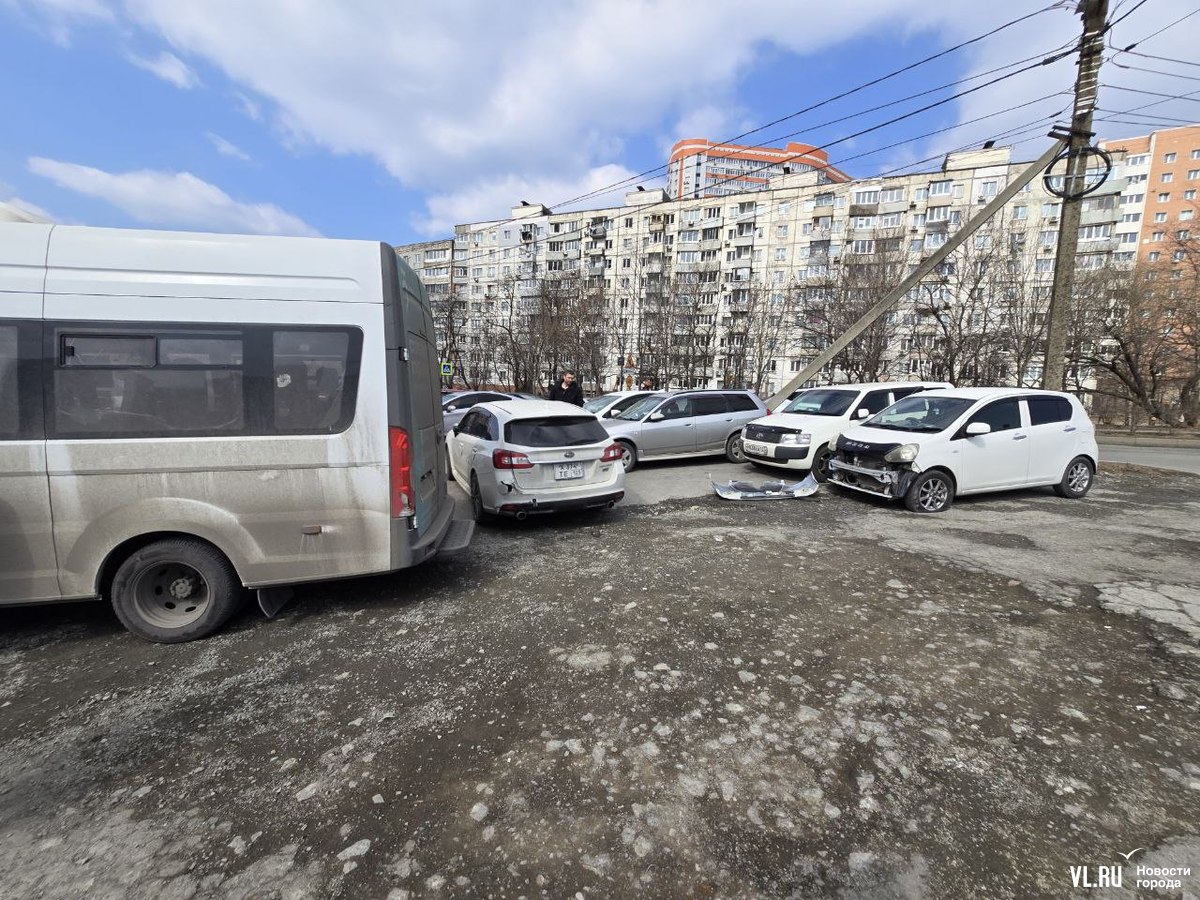 Днём 13 марта во Владивостоке с конечной остановки «Тухачевского» на БАМе маршрутка № 85 без водителя скатилась на парковку строящегося ЖК «Футурист». Предварительно, никто не пострадал. Повреждения получили минимум шесть автомобилей. На место уже приехали сотрудники ГИБДД и сразу несколько аварийных комиссаров, которые сейчас оформляют ДТП.