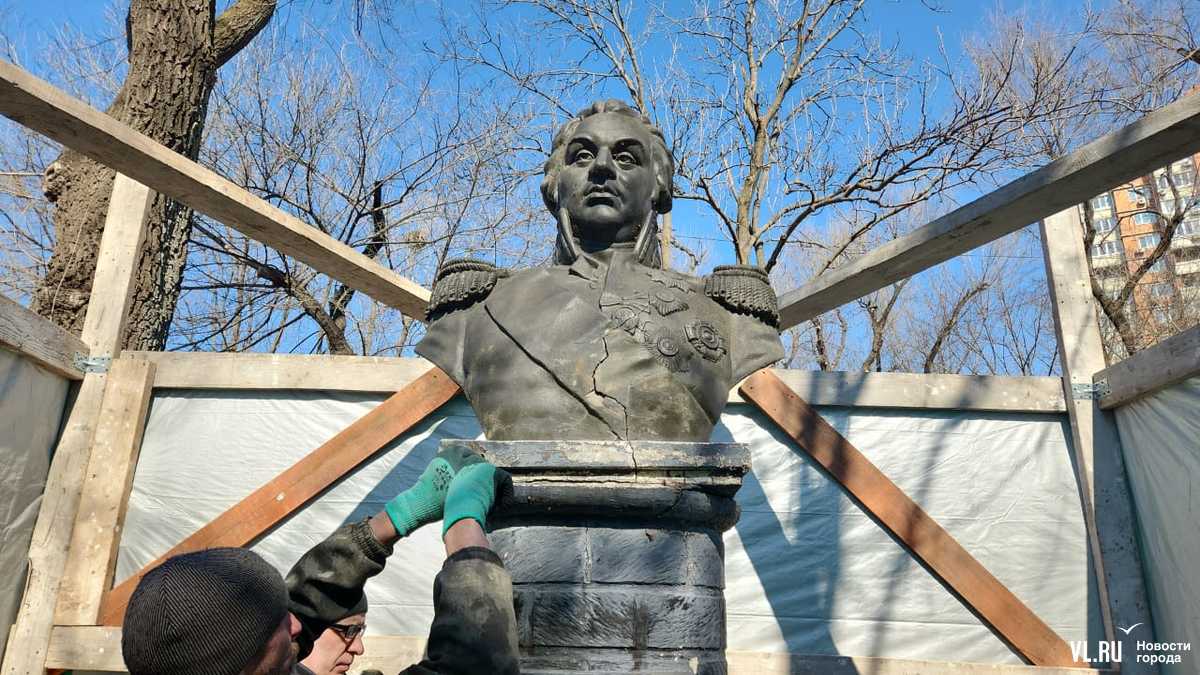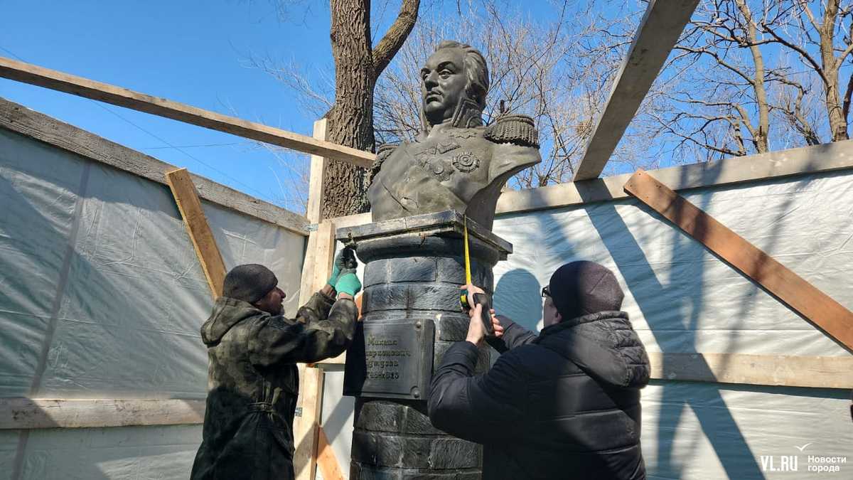 Днём в пятницу, 14 марта, рабочие огородили бюст в сквере Кутузова во Владивостоке возле кинотеатра «Нептун» (Русская, 41), скоро его спилят с постамента и вывезут. Как уточнил подрядчик, напрямую это не относится к будущему благоустройству сквера, это отдельные работы, которые нужны, так как он уже сильно повреждён. С потрескавшегося бетонного бюста знаменитого полководца снимут форму и отольют его в бронзе. Также на памятнике заменят табличку, а постамент – отремонтируют.