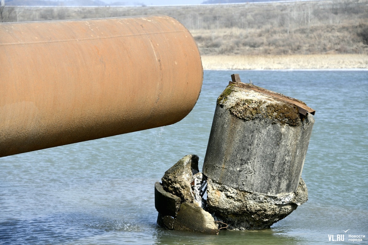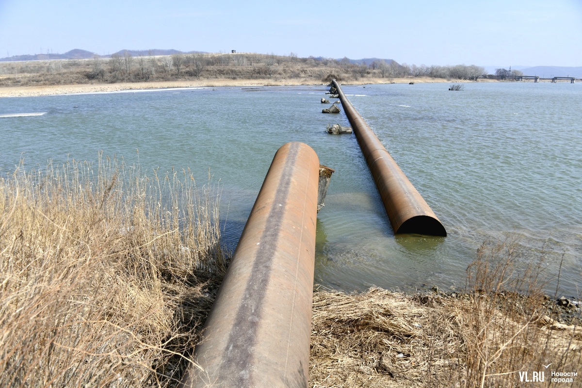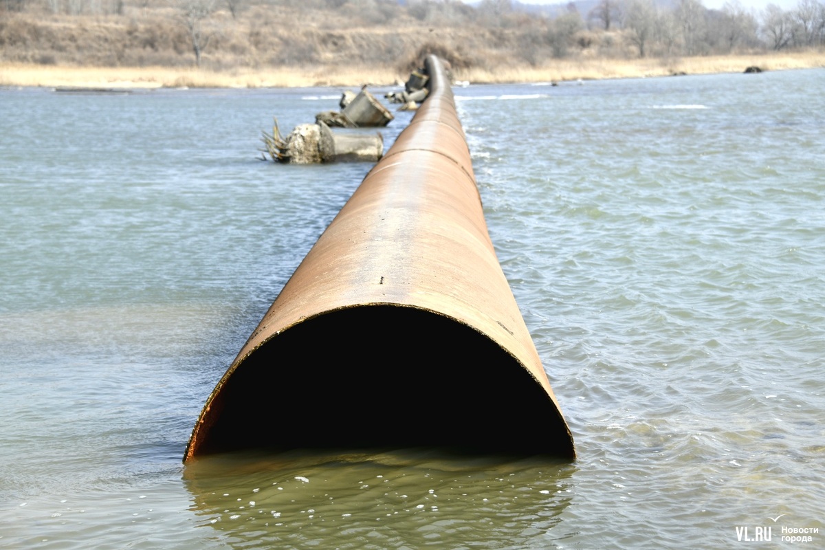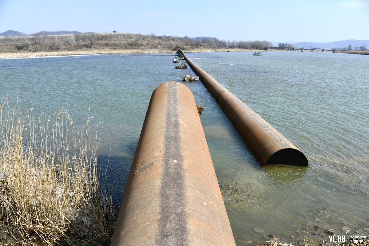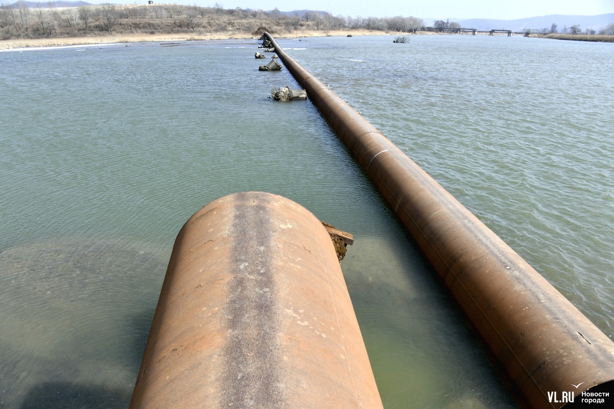 Обновлено 12:30: Корреспондент Новостей VL.ru побывал на реке Кневичанке в месте аварии и обнаружил трубу в воде. Никаких работ не ведётся, техники и рабочих не замечено. Тем временем в посёлке действительно начался подвоз воды. Срок возобновления подачи сдвинулся на 23:00.