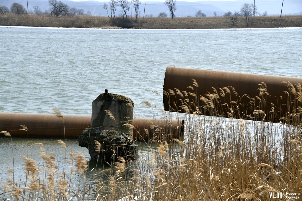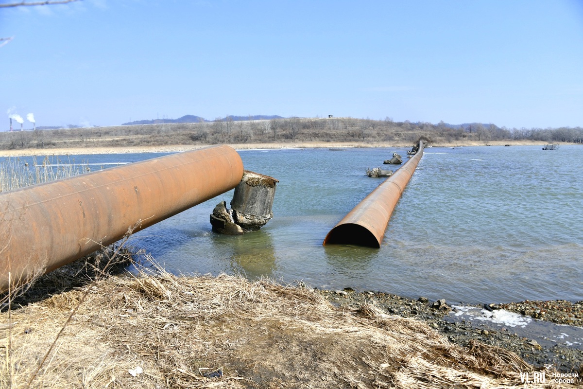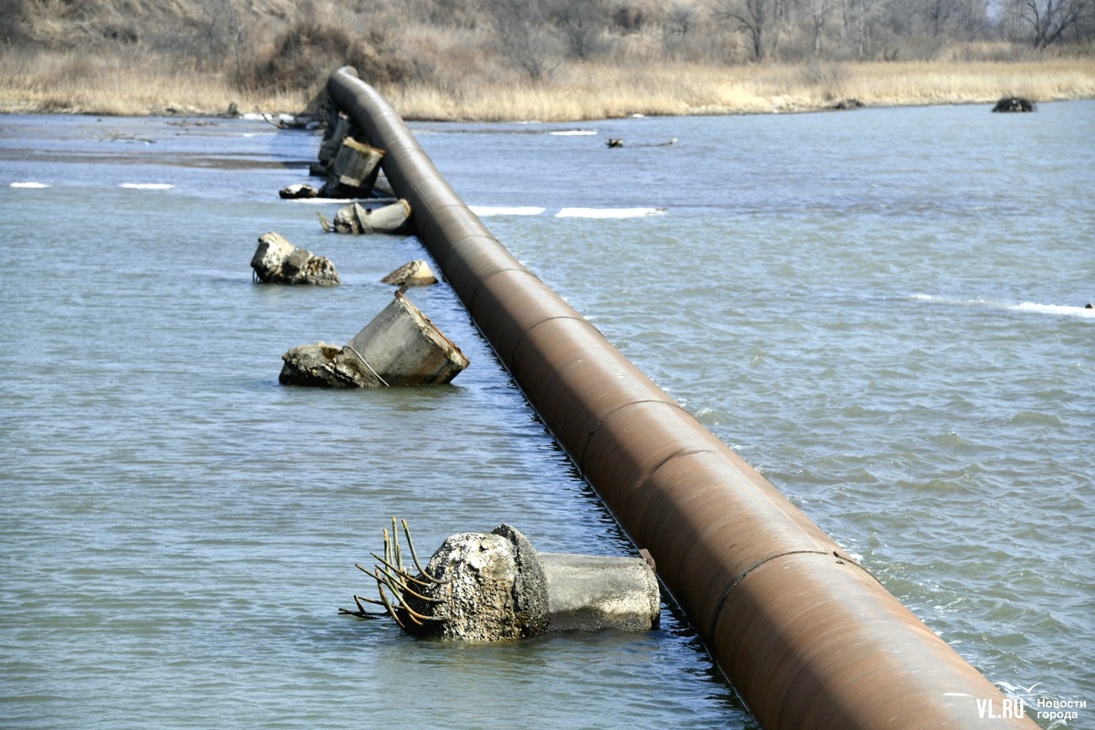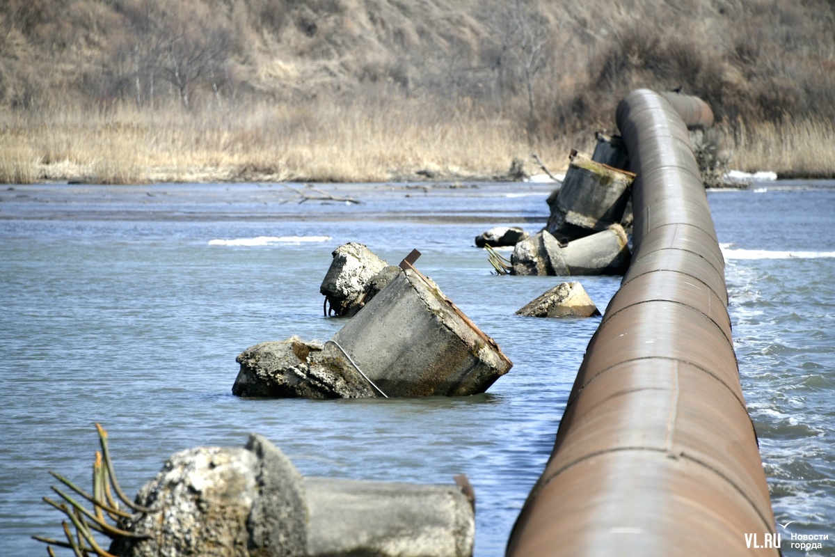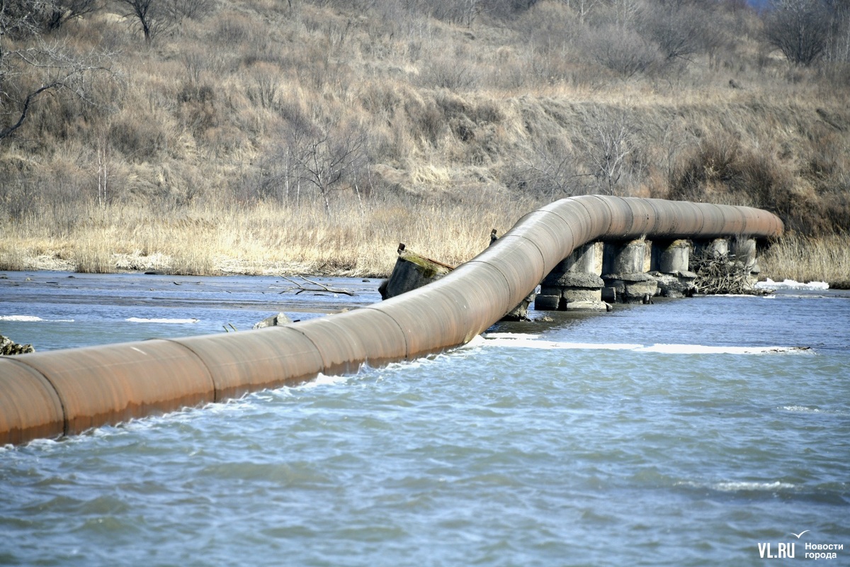 Обновлено 12:30: Корреспондент Новостей VL.ru побывал на реке Кневичанке в месте аварии и обнаружил трубу в воде. Никаких работ не ведётся, техники и рабочих не замечено. Тем временем в посёлке действительно начался подвоз воды. Срок возобновления подачи сдвинулся на 23:00.