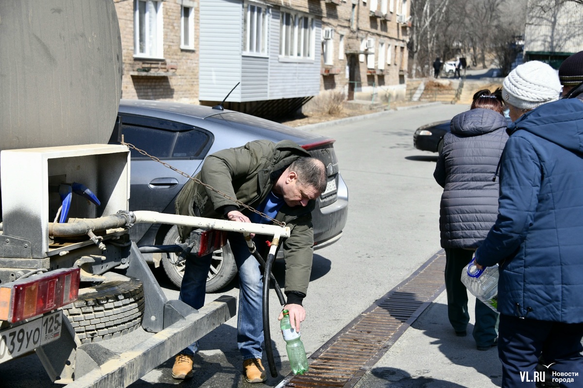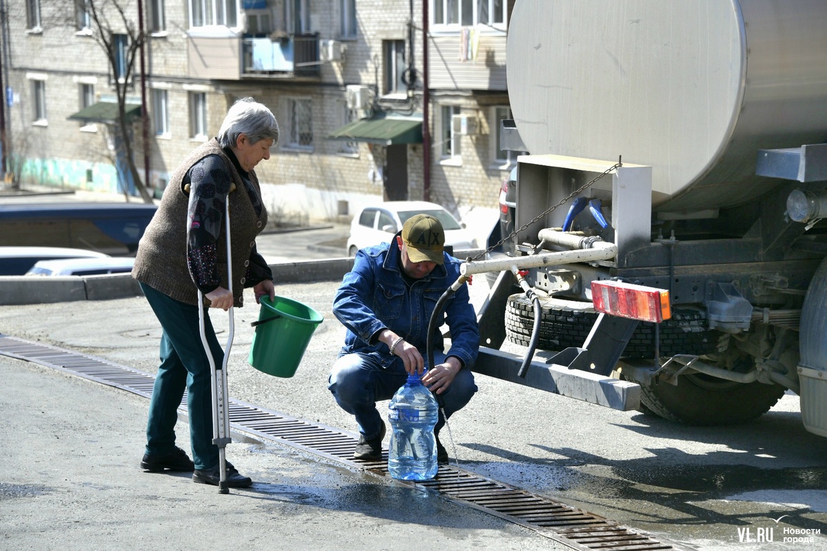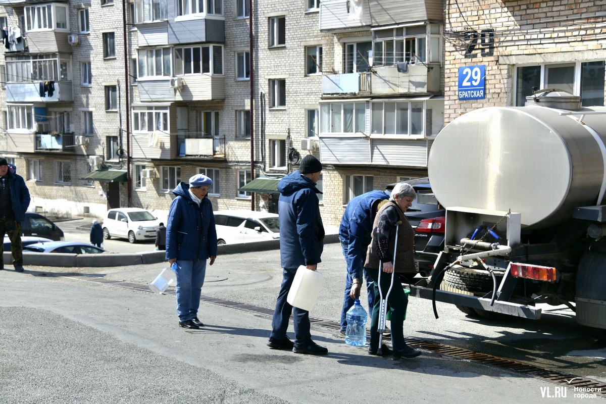 13:40: Корреспондент Новостей VL.ru побывал на месте раздачи воды на Братской. Людей здесь много, за 10 минут прошло примерно 25 человек. Идут с пустыми вёдрами и большими бутылками. Многие в возрасте (молодые, видимо, пока на работе), кто-то пришёл на костылях. Водитель водовозки помогает людям наполнять ёмкости водой. Говорит, будет стоять, пока в цистерне есть вода, то есть ещё долго. Надеется, что к вечеру вода в домах появится.