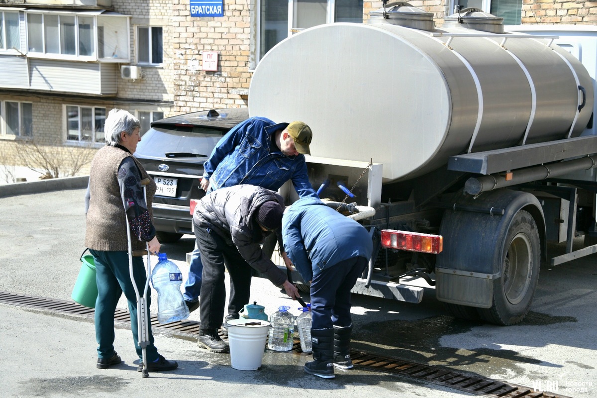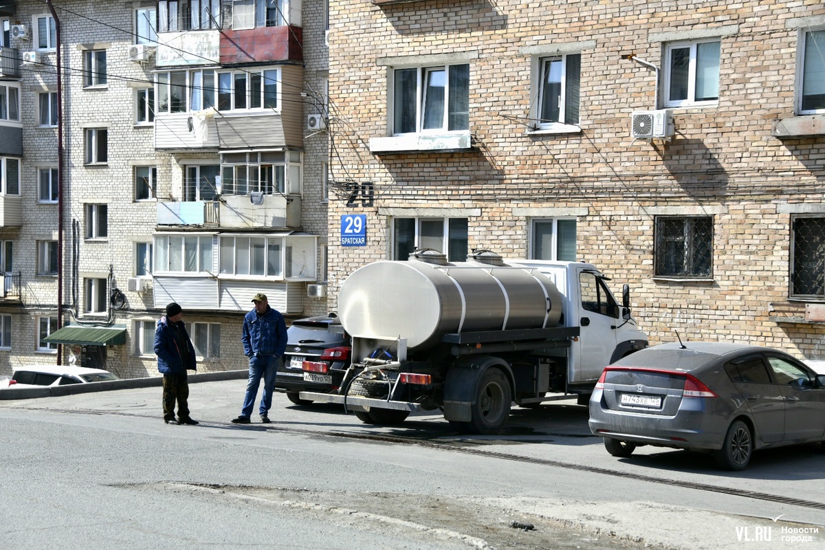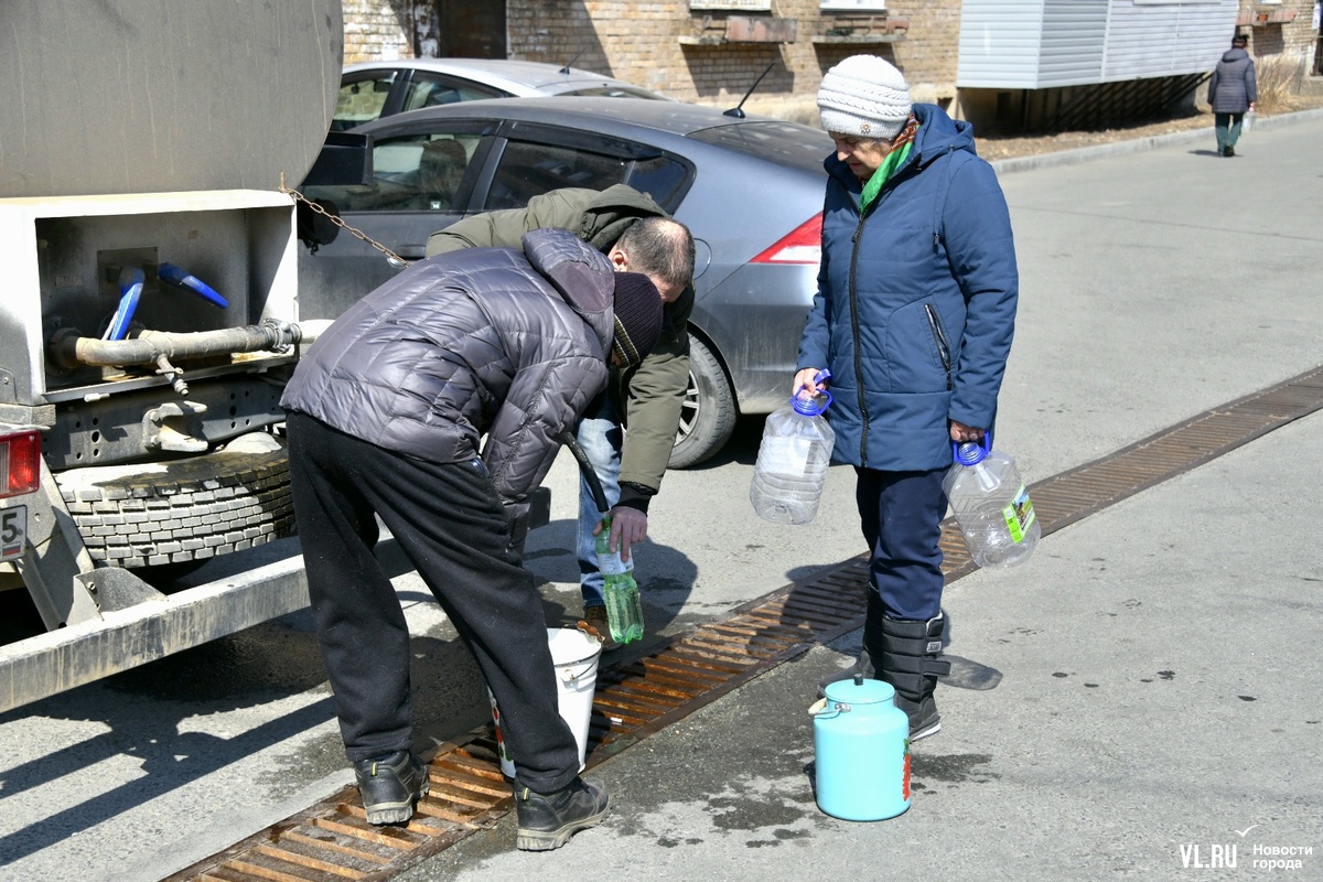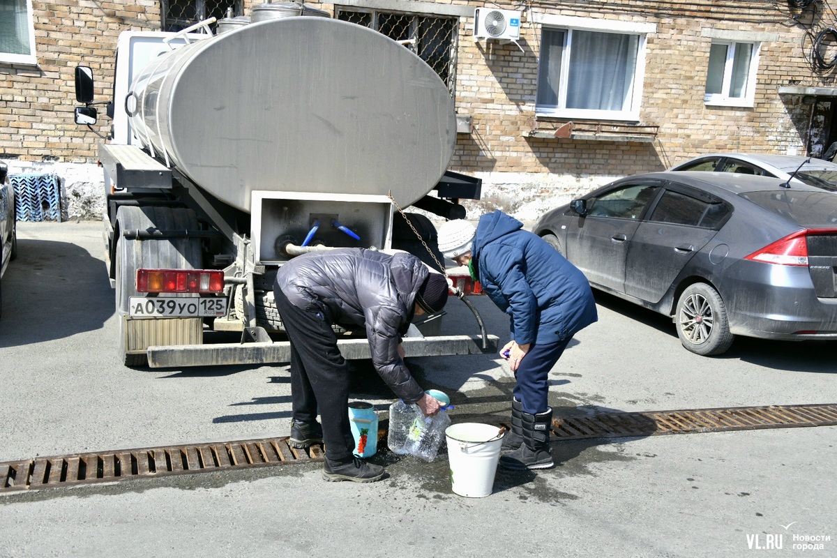13:40: Корреспондент Новостей VL.ru побывал на месте раздачи воды на Братской. Людей здесь много, за 10 минут прошло примерно 25 человек. Идут с пустыми вёдрами и большими бутылками. Многие в возрасте (молодые, видимо, пока на работе), кто-то пришёл на костылях. Водитель водовозки помогает людям наполнять ёмкости водой. Говорит, будет стоять, пока в цистерне есть вода, то есть ещё долго. Надеется, что к вечеру вода в домах появится.