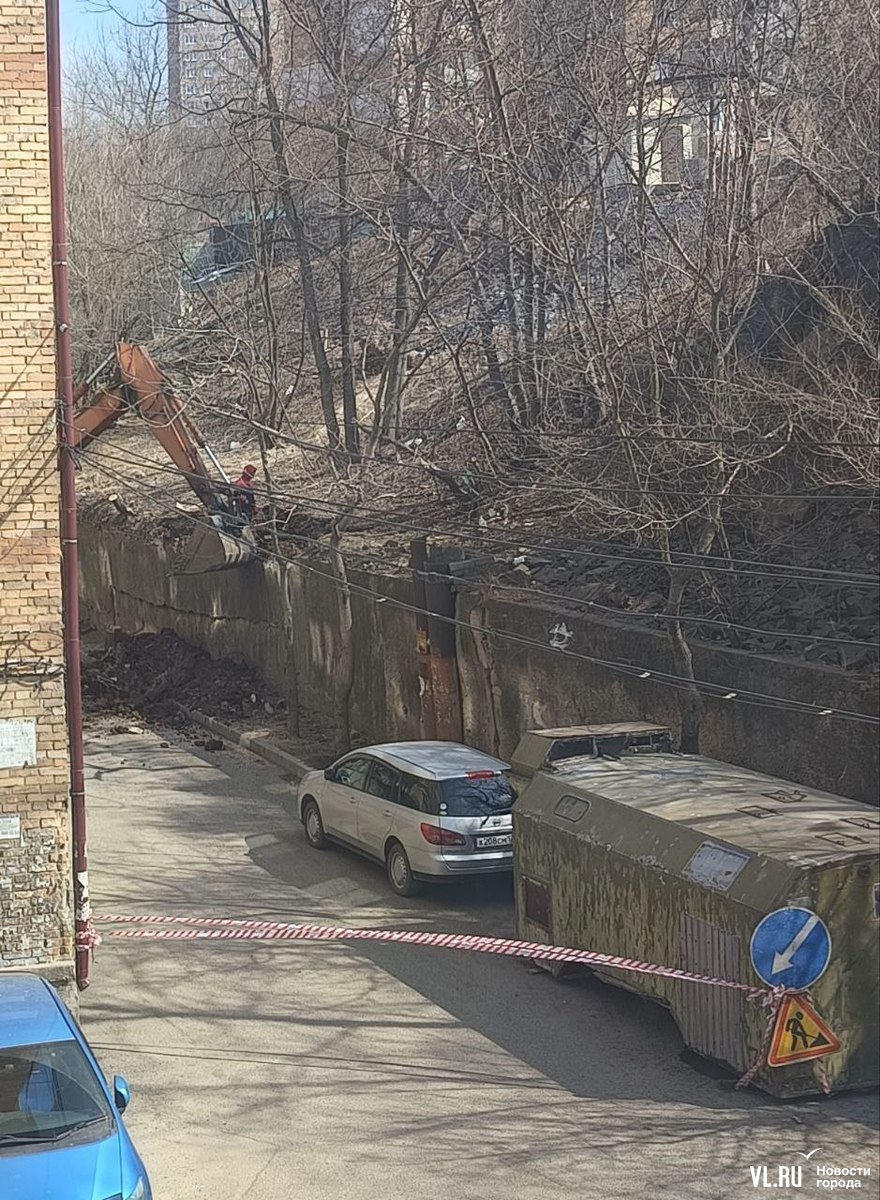 Обновление 15:35: Читатель Новостей VL.ru сообщил, что видел, как в районе Кузнецова, 52 экскаватор во время работ на подпорной стене задел электрокабель. После этого запахло дымом, а место разрыва закрыли поваленными блоками подпорки.