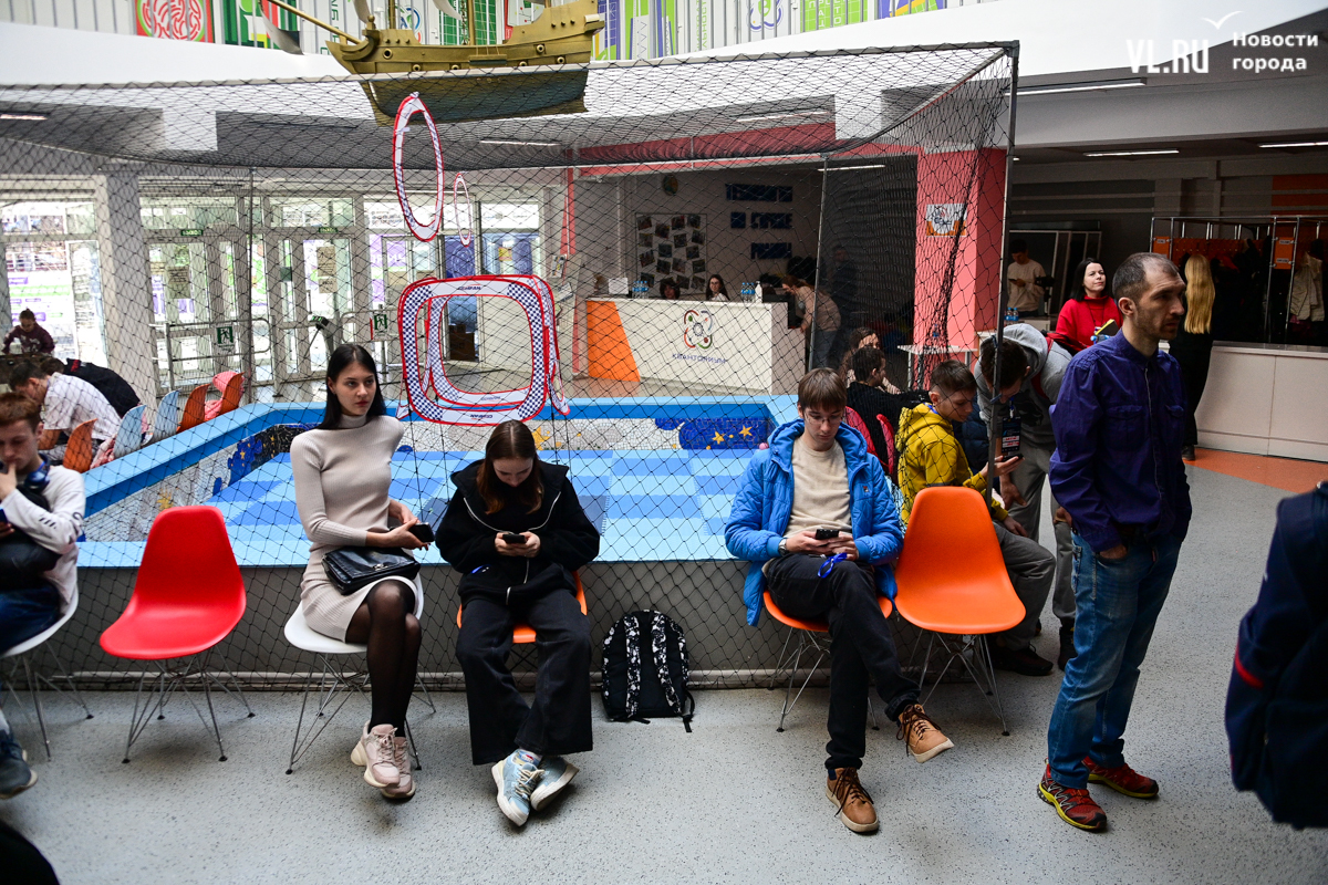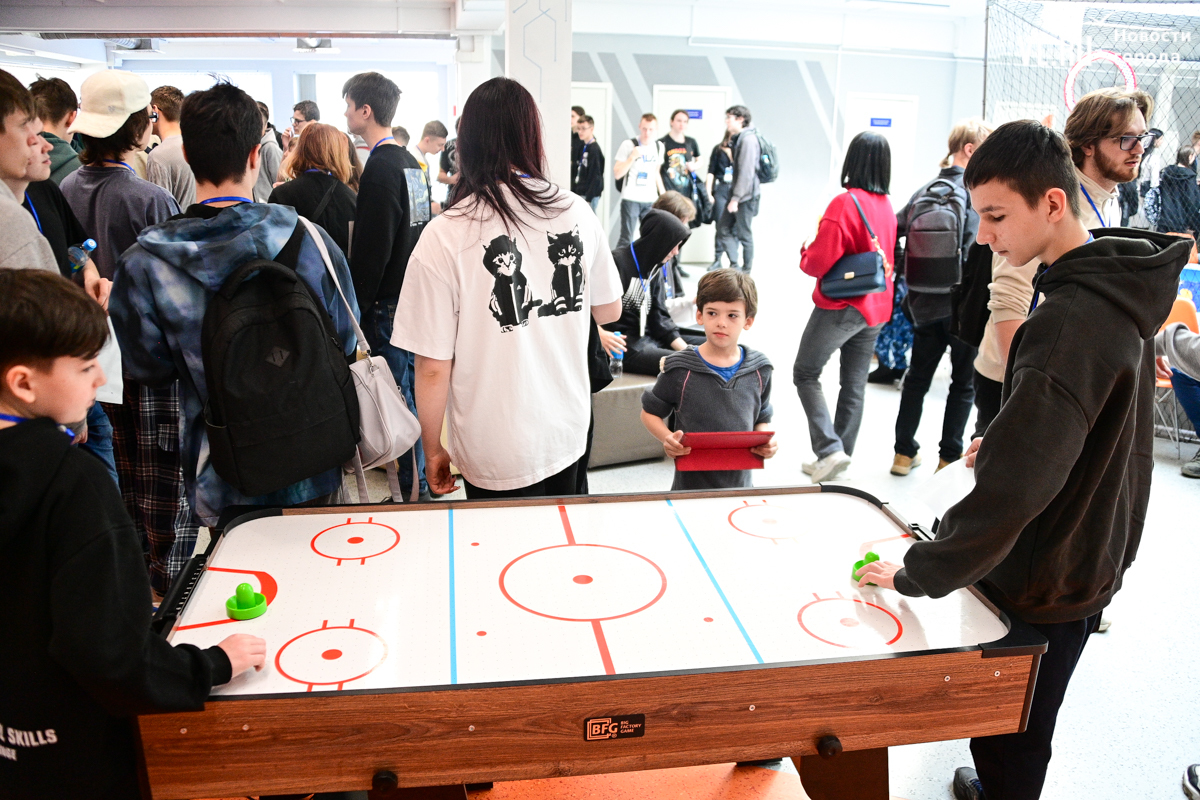 Перед началом соревнований все конкурсанты собрались на первом этаже технопарка «Кванториум». Здесь они играли в настольный футбол, хоккей, приставку, ели сахарную вату, знакомились с остальными участниками, а также определялись с составом своих команд. Например, Максим после предыдущего этапа турнира решил сменить сокомандников.
