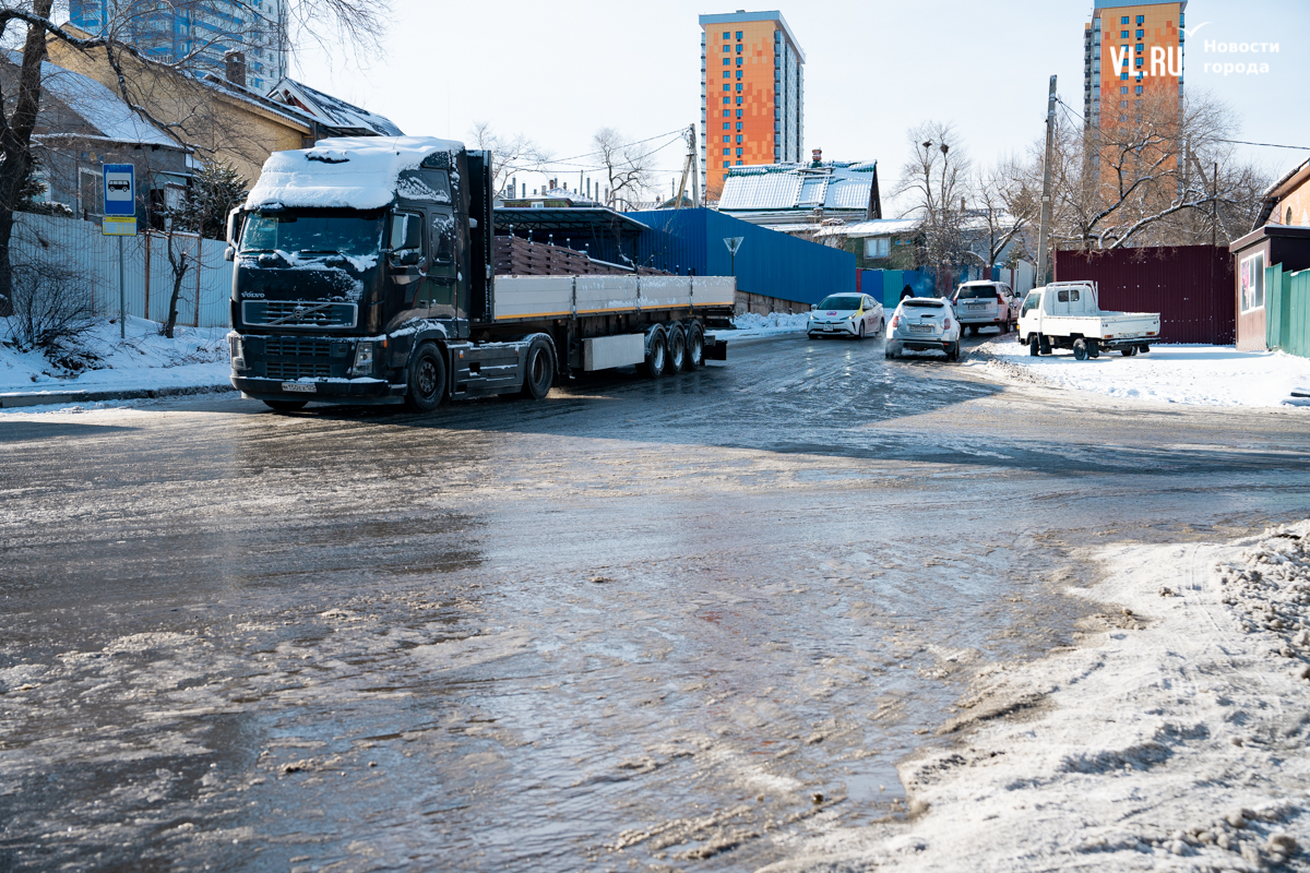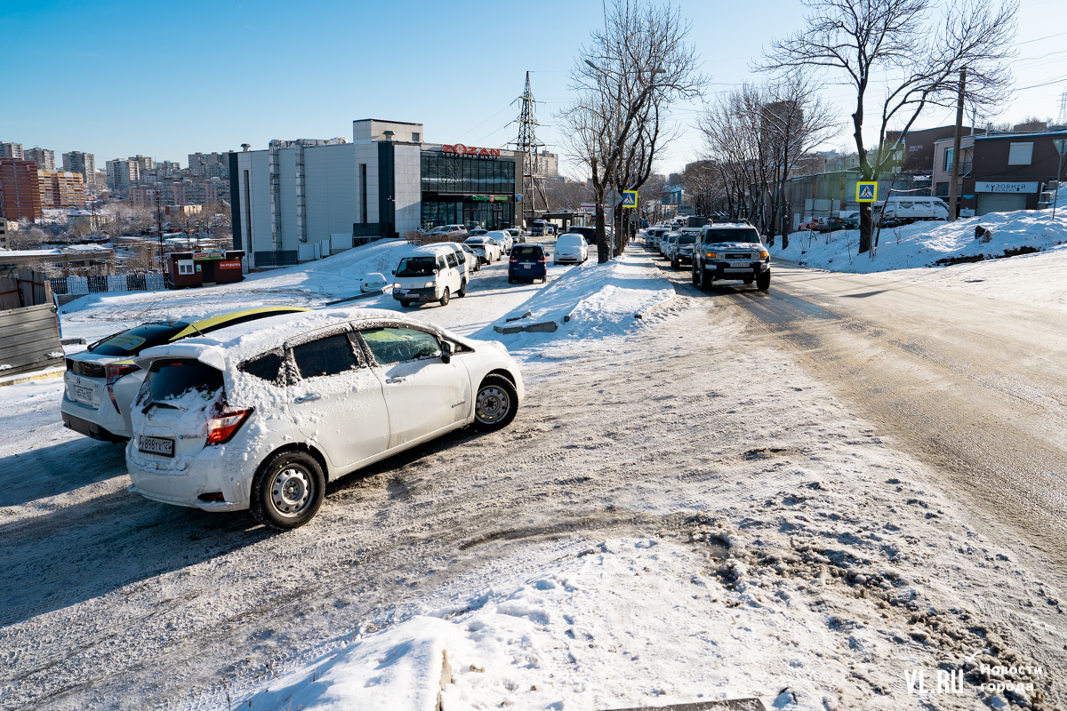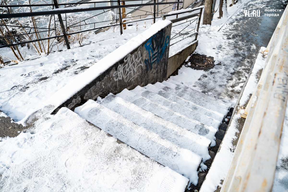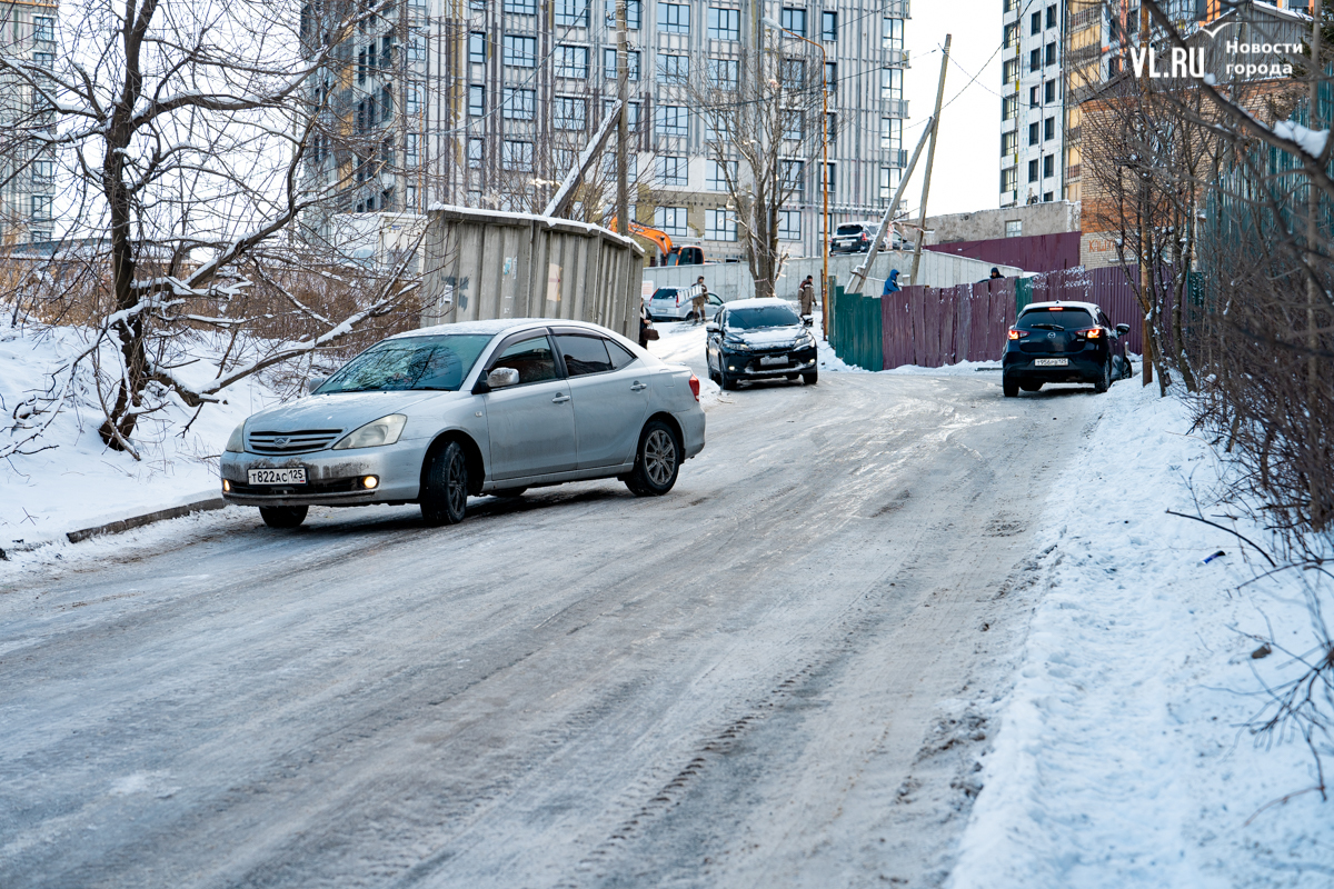 Больше всего жалоб на скользкие дороги и тротуары после прошедшего во Владивостоке снегопада поступило из микрорайонов Патрокл и Змеинка – самых южных и в то же время расположенных на сопках, с крутыми подъёмами и спусками. Утром жители Змеинки жаловались, что дорогу к ним не обработали, по Зои Космодемьянской наблюдается голый лёд, машины буксуют, создают аварийные ситуации. Утром корреспондент Новостей VL.ru прогулялся по этому району и посмотрел, как водители и пешеходы справляются с последствиями снегопада.
