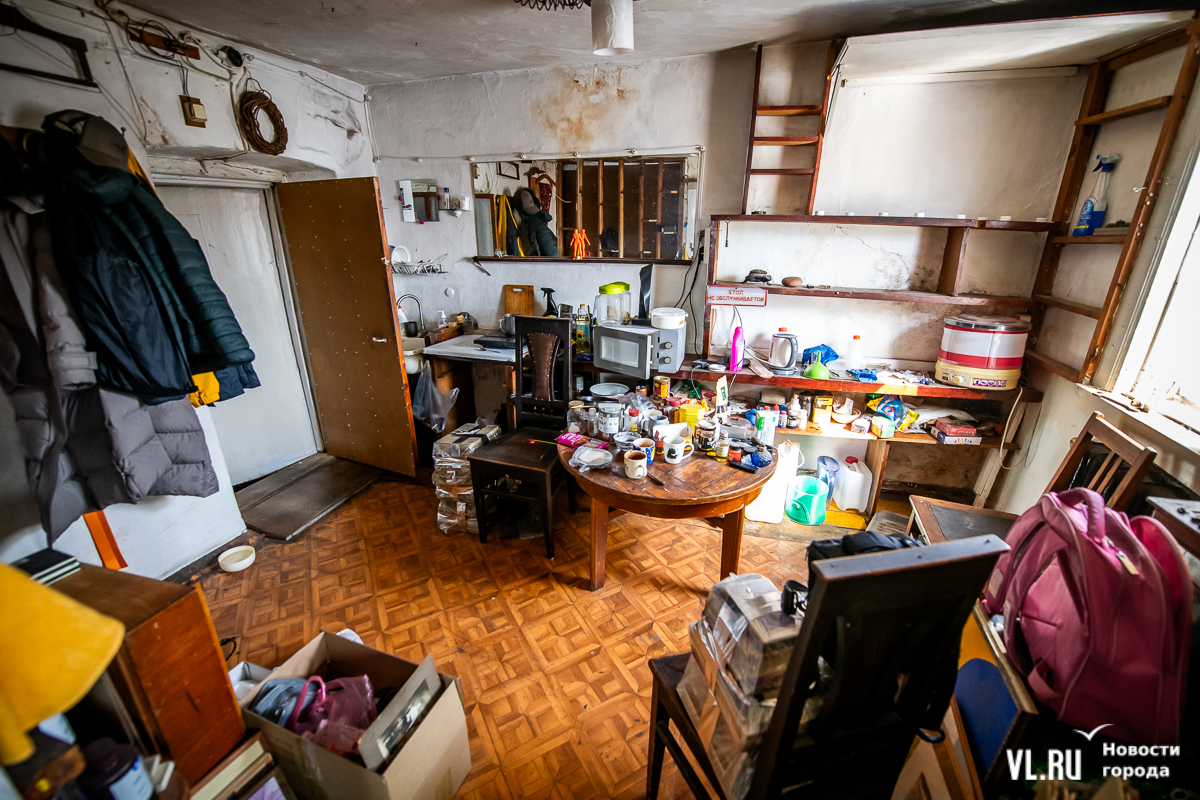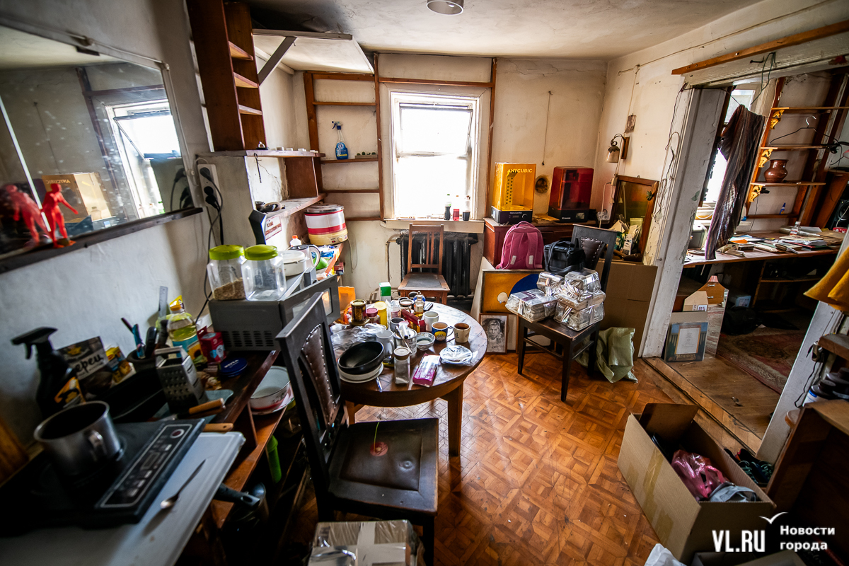 …Остатки дымохода – здесь когда-то стояла печка. Стена, оклеенная «Красным Знаменем» – самой именитой приморской газетой. Старые выключатели, старые зеркала, старый полуналичник над окном.