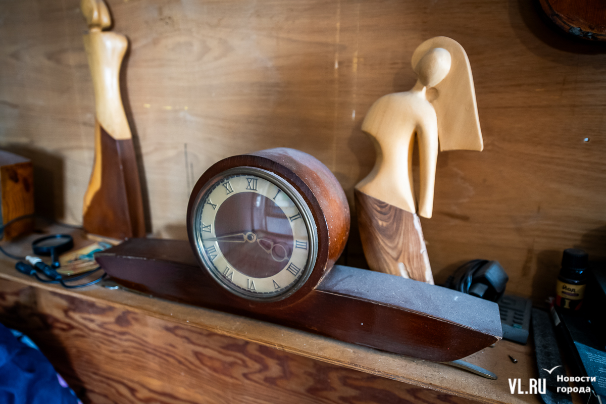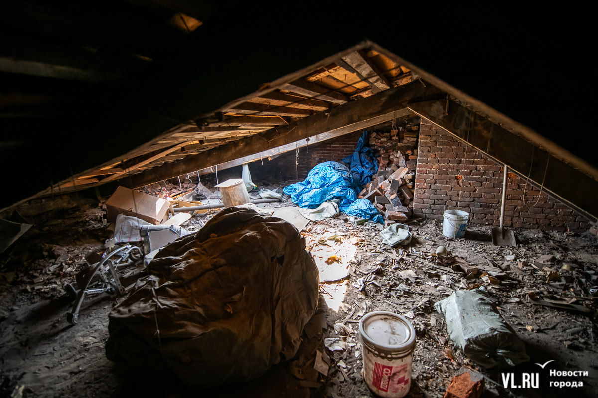 Мастерская – не только две комнаты. Это ещё закоулки, и каждый за десятилетия «оброс» множеством вещей. В одной из комнат – остатки дымохода. Здесь когда-то была печка. Из мастерской можно выйти на пустующий «ничейный» чердак – это там отыскались сокровища советской лёгкой промышленности.