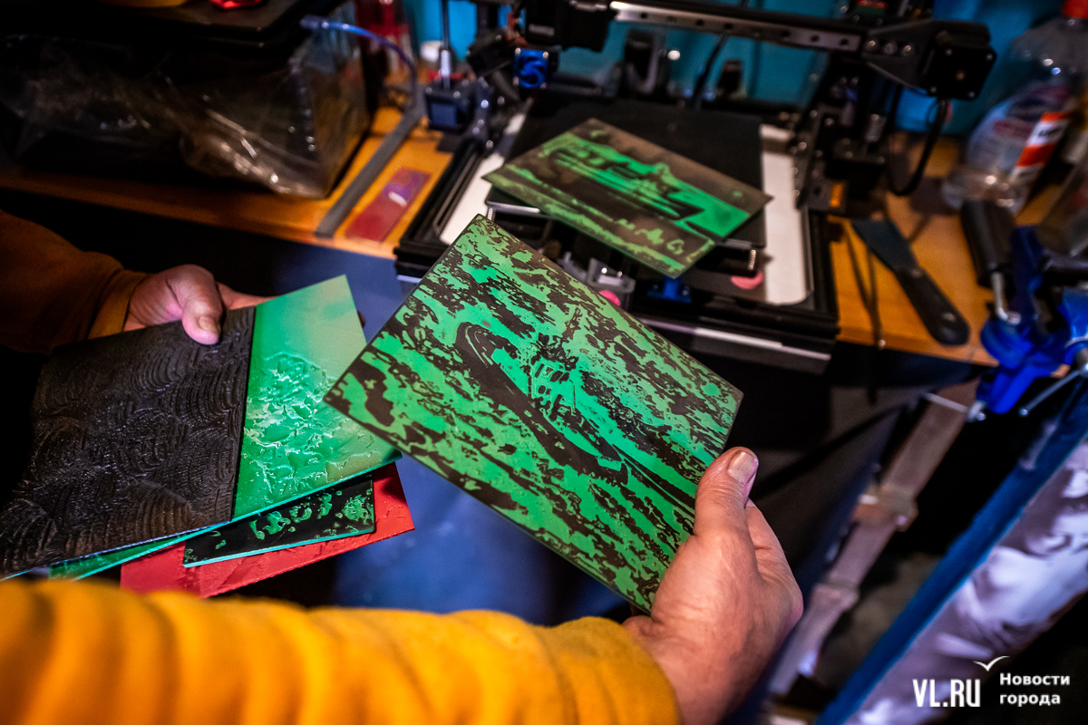 – Я фетиш из этого не делаю. Я его вообще купил, чтобы... Видели эти печатные платы? Это Андрей царапал вручную. А у меня руки не оттуда растут. Я эти печатные формы делать не могу. И зрение уже не то. Я как-то подумал, когда такие принтеры появились – он же может напечатать и форму. В 2015-м исполнил большой заказ, получил деньги и купил.