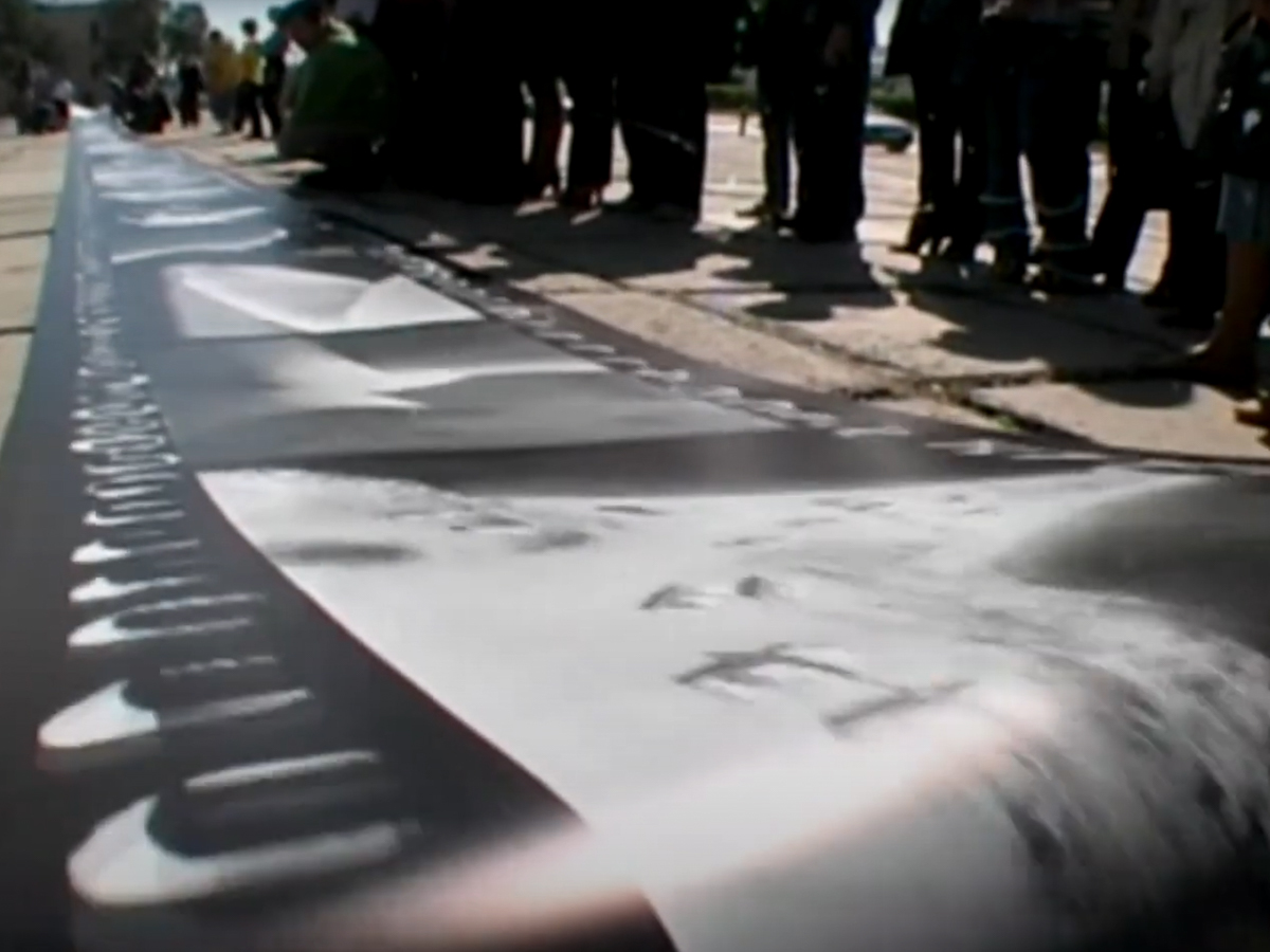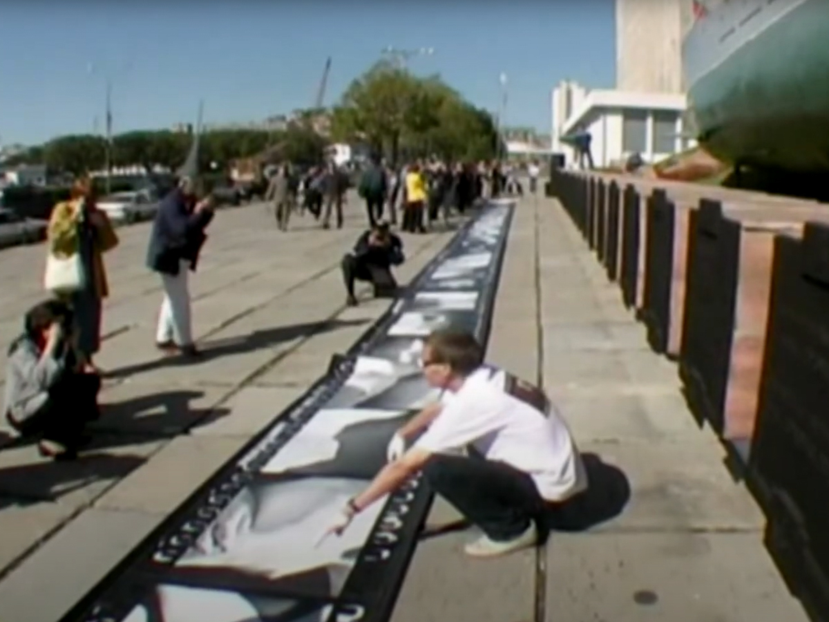 В 2001-м фотографию длиной в 66 метров разворачивали перед подлодкой С-56. Она легла вровень от края до края. Чёрно-белая, сделанная с рамкой под фотоплёнку. Кадры на ней как бы перетекают друг в друга. Сюжет был, это был чистой воды фотофильм.
