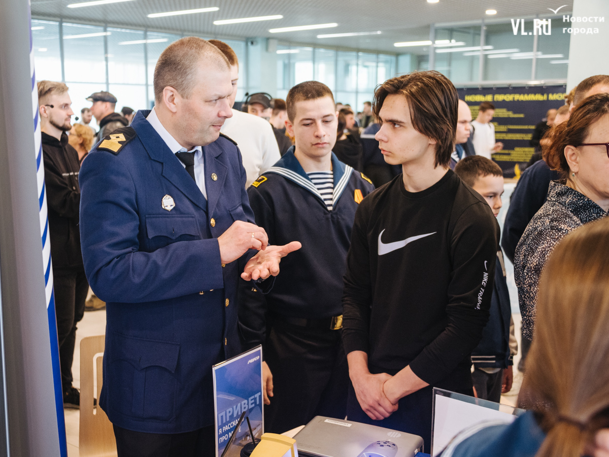 В субботу, 29 марта, в Дальневосточном морском тренажёрном центре во Владивостоке прошёл день открытых дверей МГУ им. Г. И. Невельского. Будущим студентам, курсантам и их родителям рассказали о специальностях, по которым здесь можно пройти обучение, о поступлении и карьерных перспективах, а также дали возможность попробовать себя в роли инженеров, капитанов и механиков.