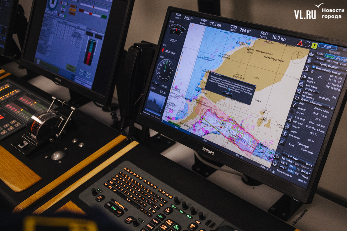 «По сути мостик на любом судне имеет примерно такое оборудование. Он состоит из главной панели, ЭКНИСа – электронной картографии – и РЛСа – радиолокационной системы. От этих систем зависит жизнь экипажа, жизнь помощника и капитана, куда же без него. Прежде всего, ребята с помощью этой установки учатся габаритам. За минут 15 я уже человеку объяснил, как рулить. На самом деле ничего сложного нет, если есть интерес», – объяснил курсант 3-го курса судовождения Андрей.
