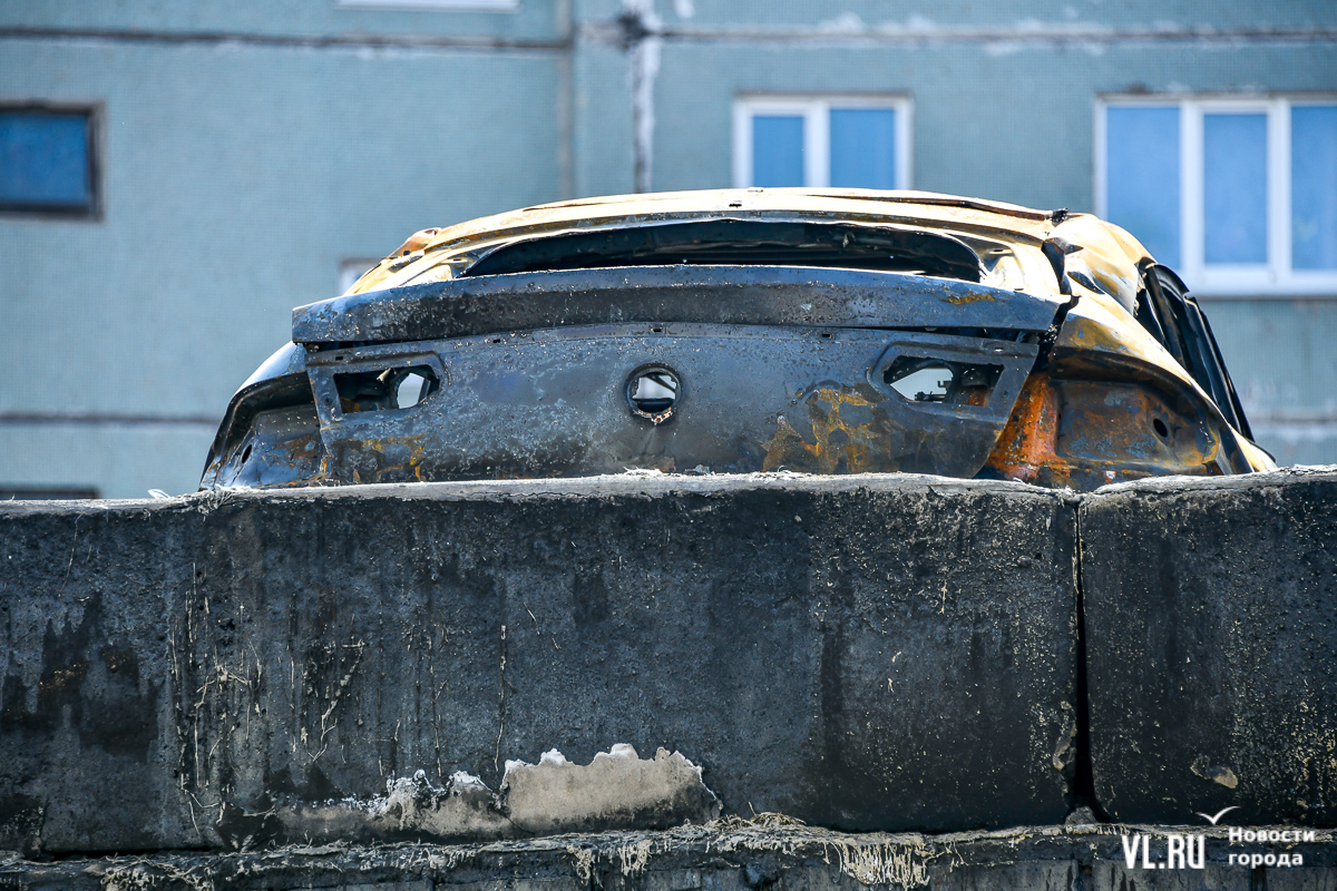 Утром в понедельник, 31 марта, ровно через неделю после пожара, корреспонденты Новостей VL.ru снова побывали на стоянке на Надибаидзе.