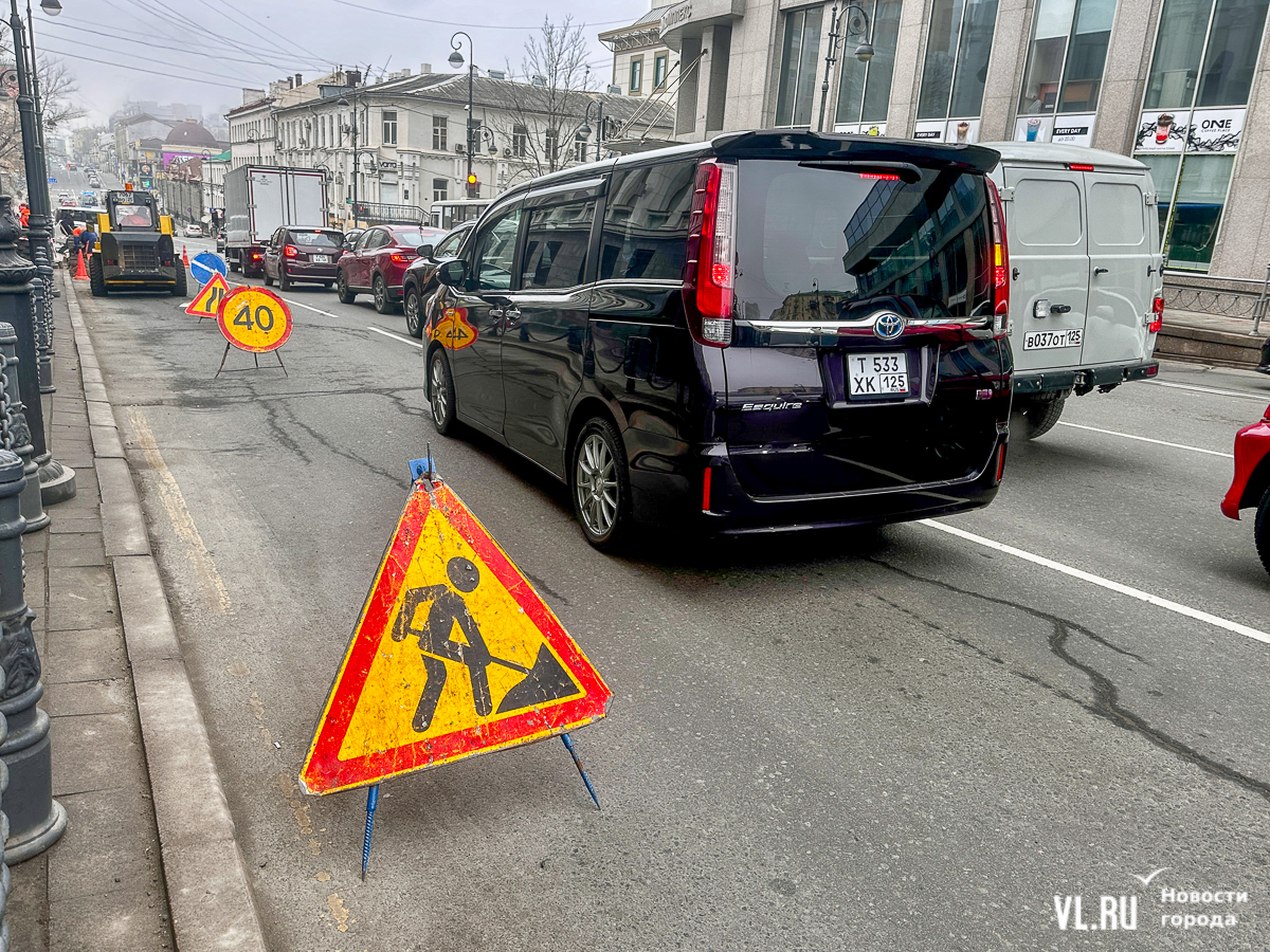 На Алеутской несколько дней меняют тротуарную плитку. Техника заняла одну полосу из трёх, пешеходы ходят по проезжей части, собираются пробки. Из-за этого автомобили и автобусы не успевают проехать светофор на остановке «Краевая больница» и подолгу стоят на красном. Однако перенастраивать его не будут – это не поможет преодолеть затор быстрее.