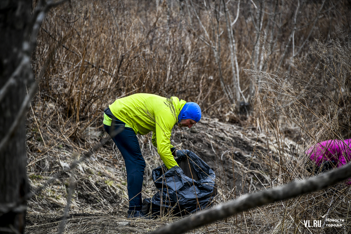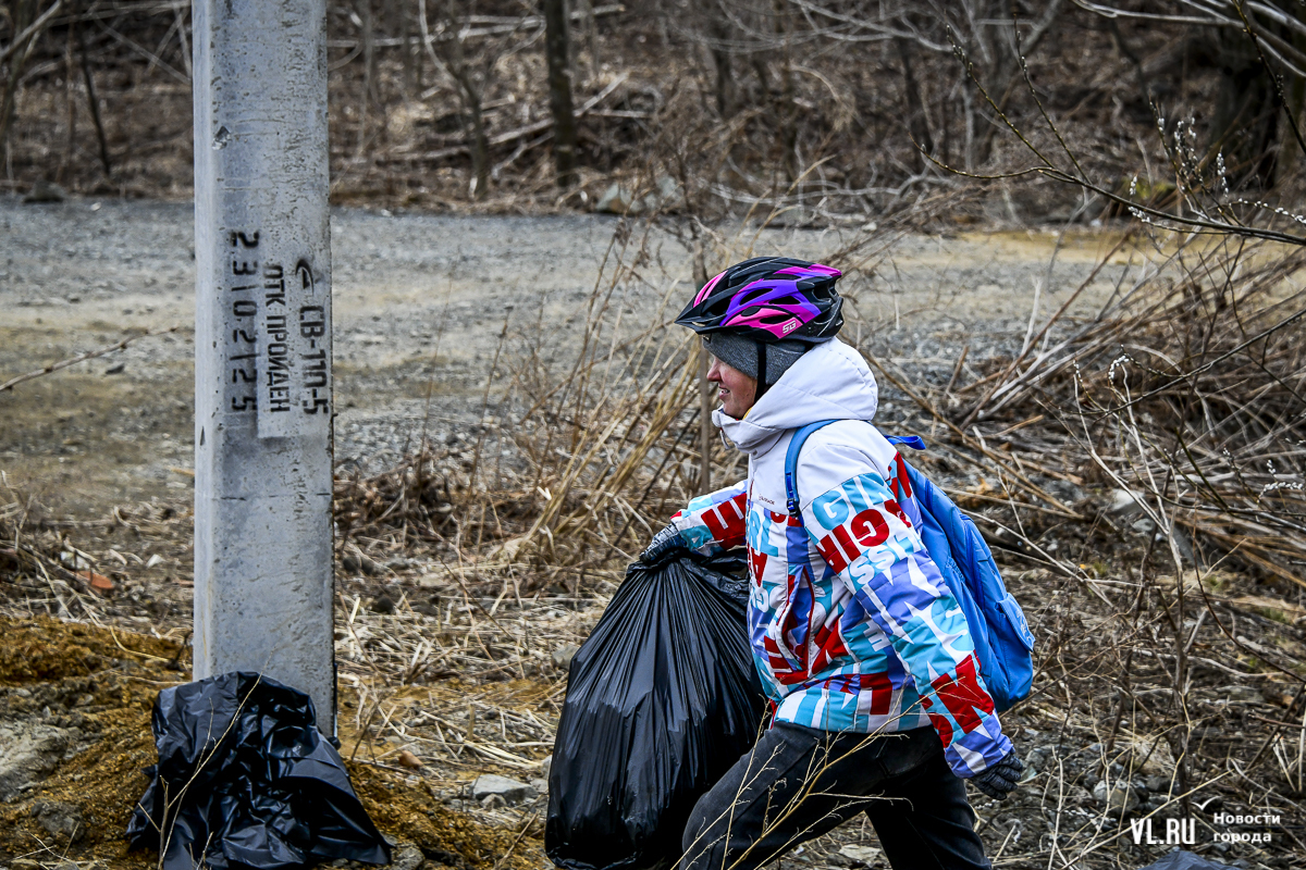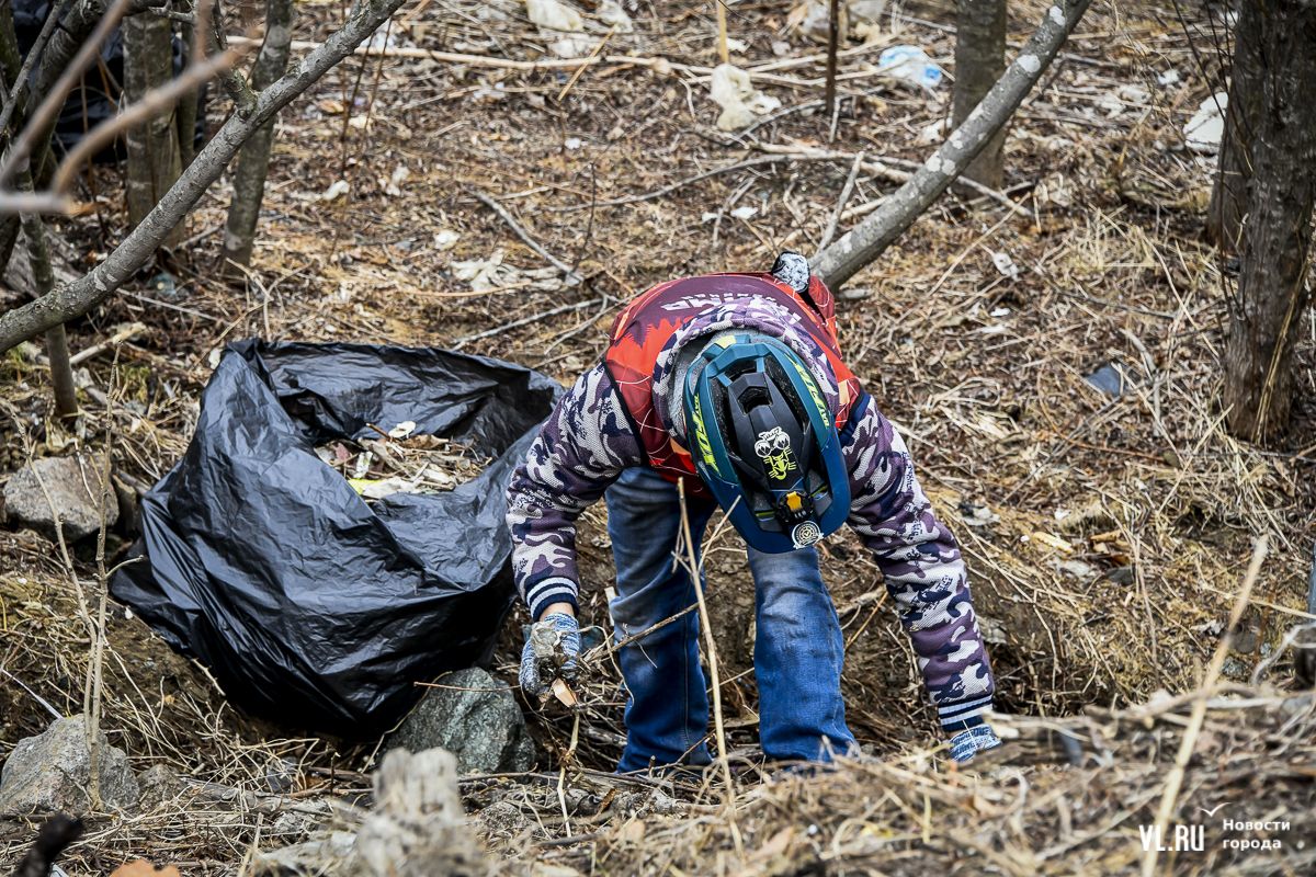 Старт городским субботникам во Владивостоке дан – сегодня в конце Университетского проспекта встретились велосипедисты, команда МБУ «Лазо» и просто инициативные горожане, чтобы убраться на территории от будущей велодорожки к форту № 11. Многие приехали на двух колёсах, кто-то даже порядок наводил в велошлеме. Под задорные хиты отечественной поп-музыки добровольцы прочёсывали труднопроходимые сопки, набирая полные мешки мусора и загребая сухую траву, пили кофе и общались – даже промозглая владивостокская погода не помешала хорошо провести время и привести место отдыха в порядок.