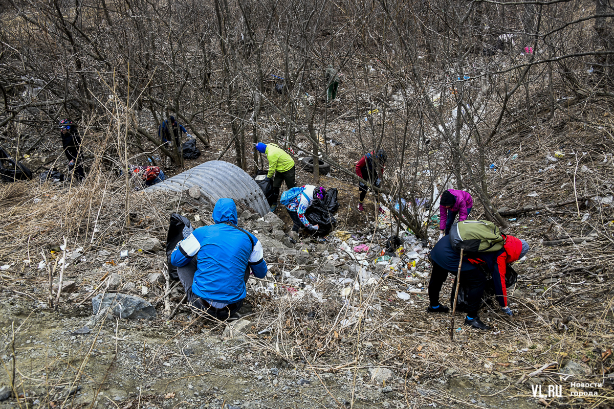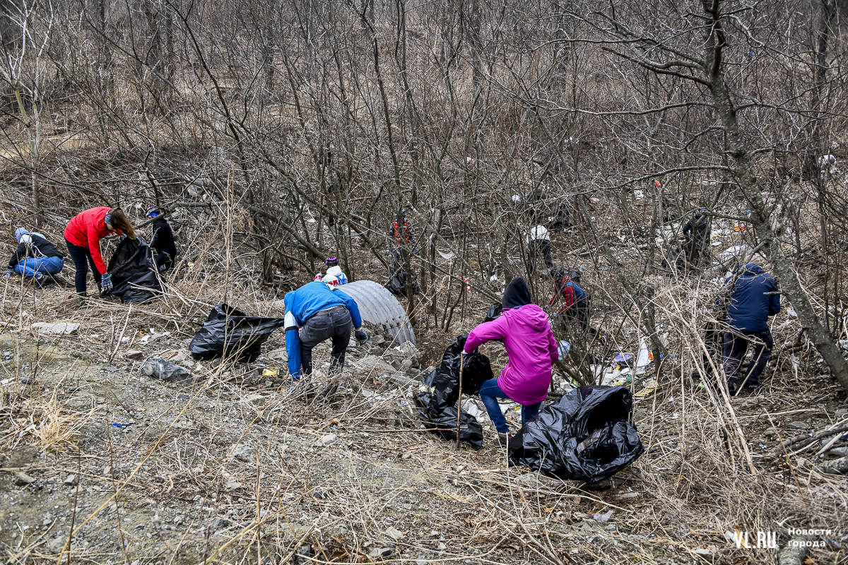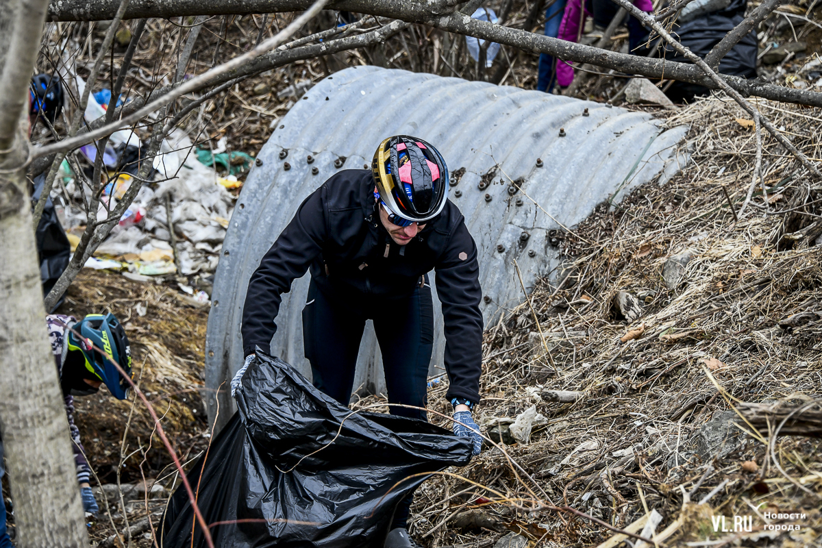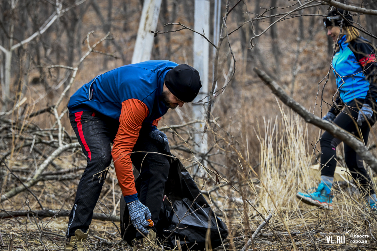 Старт городским субботникам во Владивостоке дан – сегодня в конце Университетского проспекта встретились велосипедисты, команда МБУ «Лазо» и просто инициативные горожане, чтобы убраться на территории от будущей велодорожки к форту № 11. Многие приехали на двух колёсах, кто-то даже порядок наводил в велошлеме. Под задорные хиты отечественной поп-музыки добровольцы прочёсывали труднопроходимые сопки, набирая полные мешки мусора и загребая сухую траву, пили кофе и общались – даже промозглая владивостокская погода не помешала хорошо провести время и привести место отдыха в порядок.