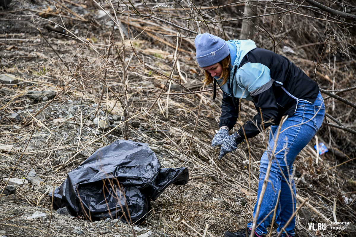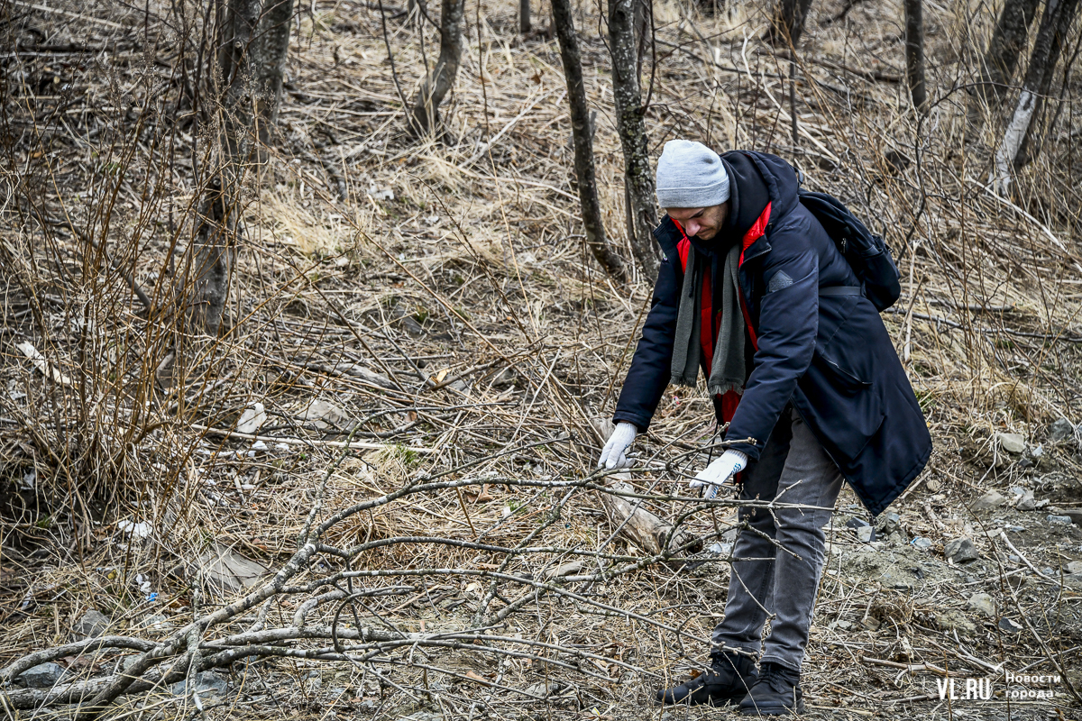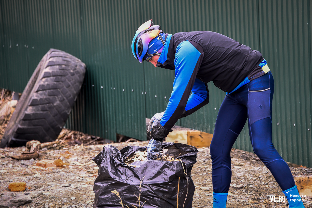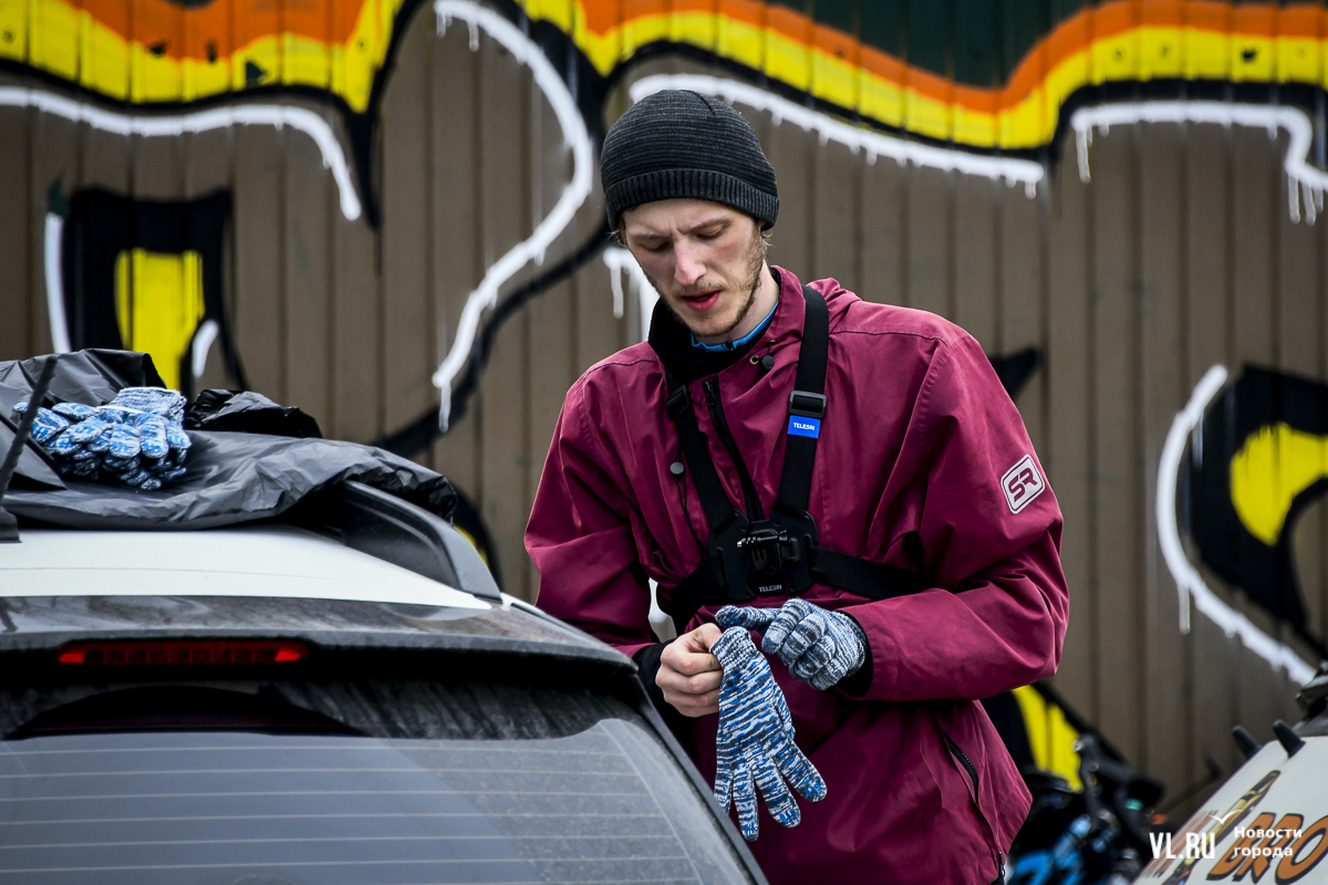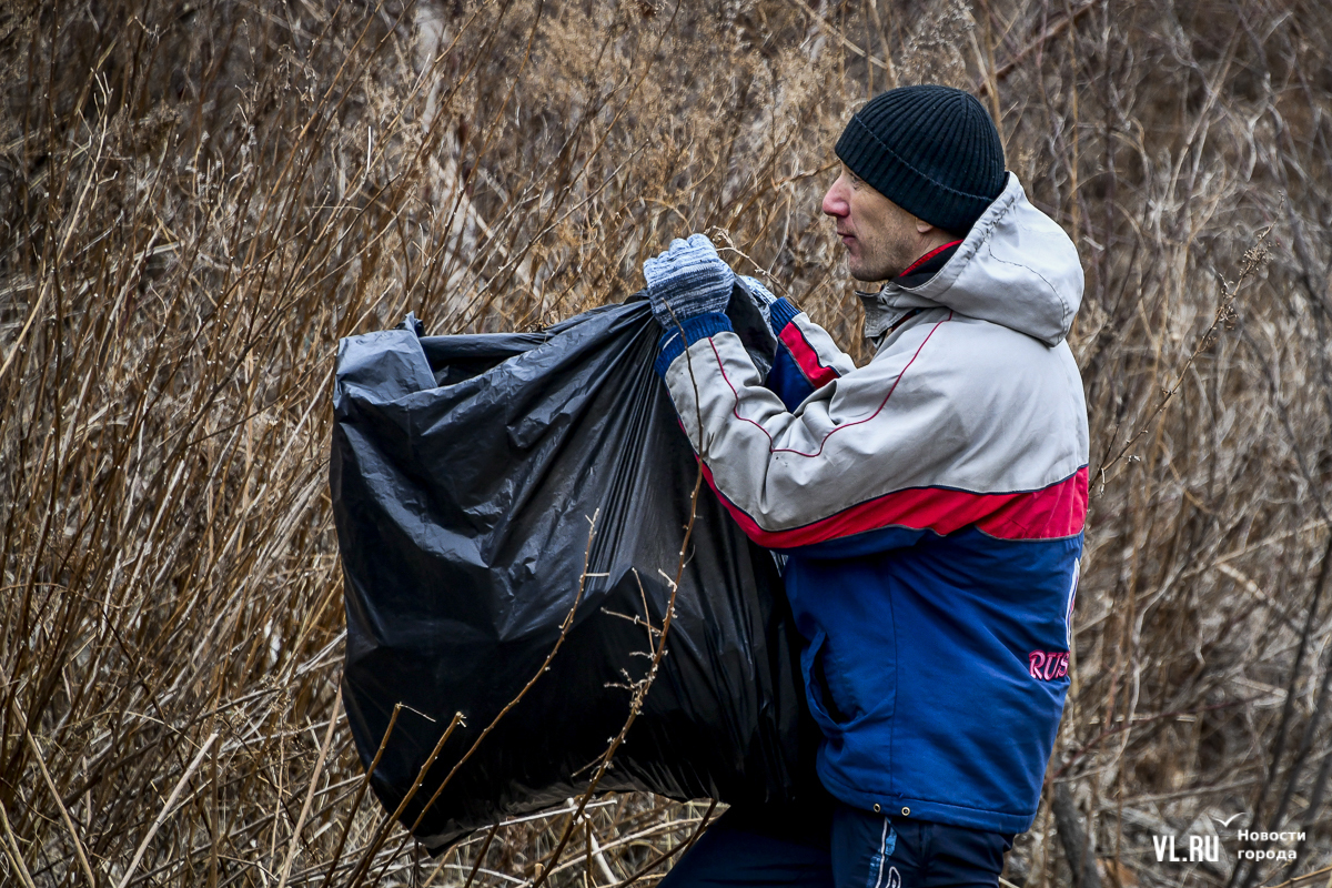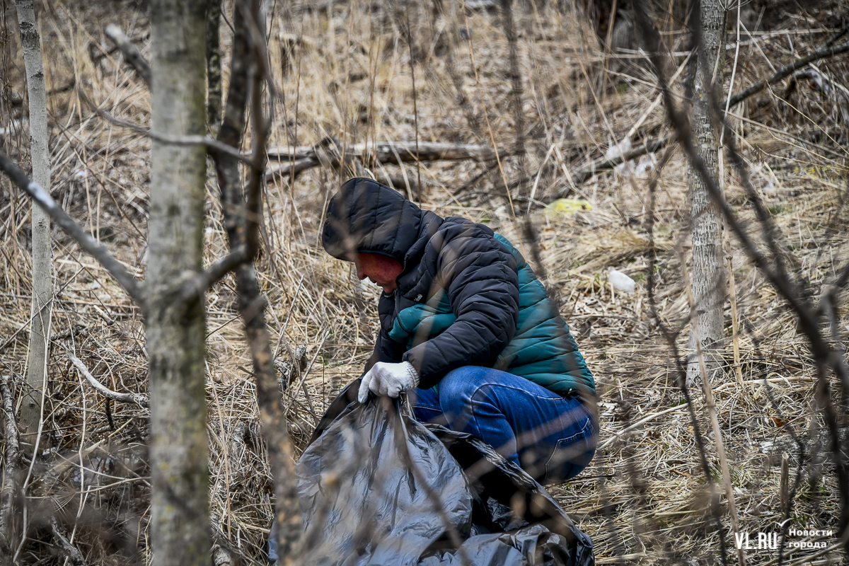 Погода была и правда не очень располагающая к активностям и уж тем более к уборке. Но не нашлось ни одного человека (кроме корреспондентов Новостей VL.ru), отлынивавшего от работы. Под задорные поп-хиты, попивая чай из термостаканов, пакеты наполнялись бесконечным мусором. Вооружилась граблями сегодня и команда МБУ «Лазо».