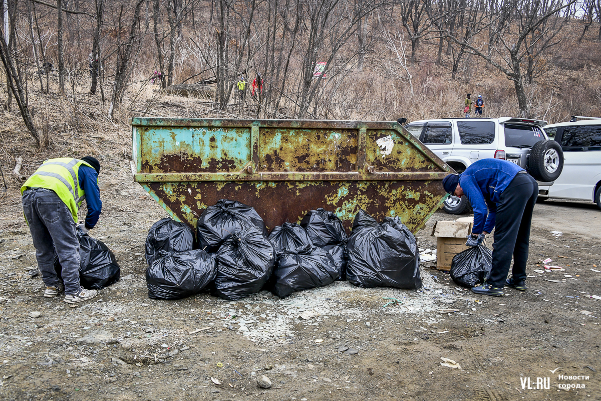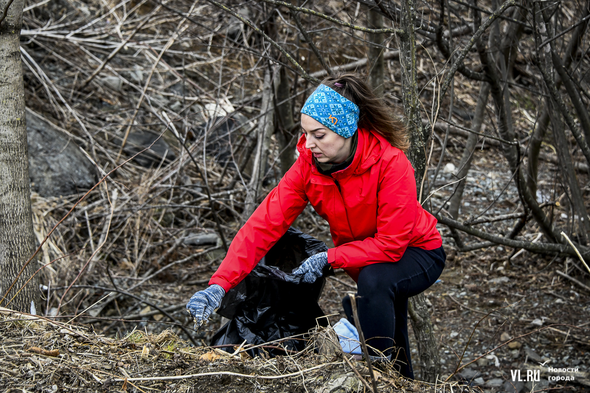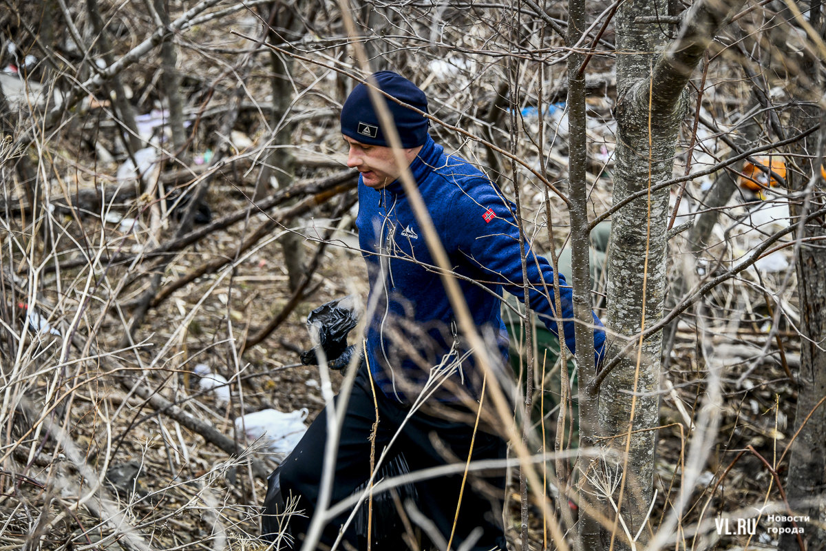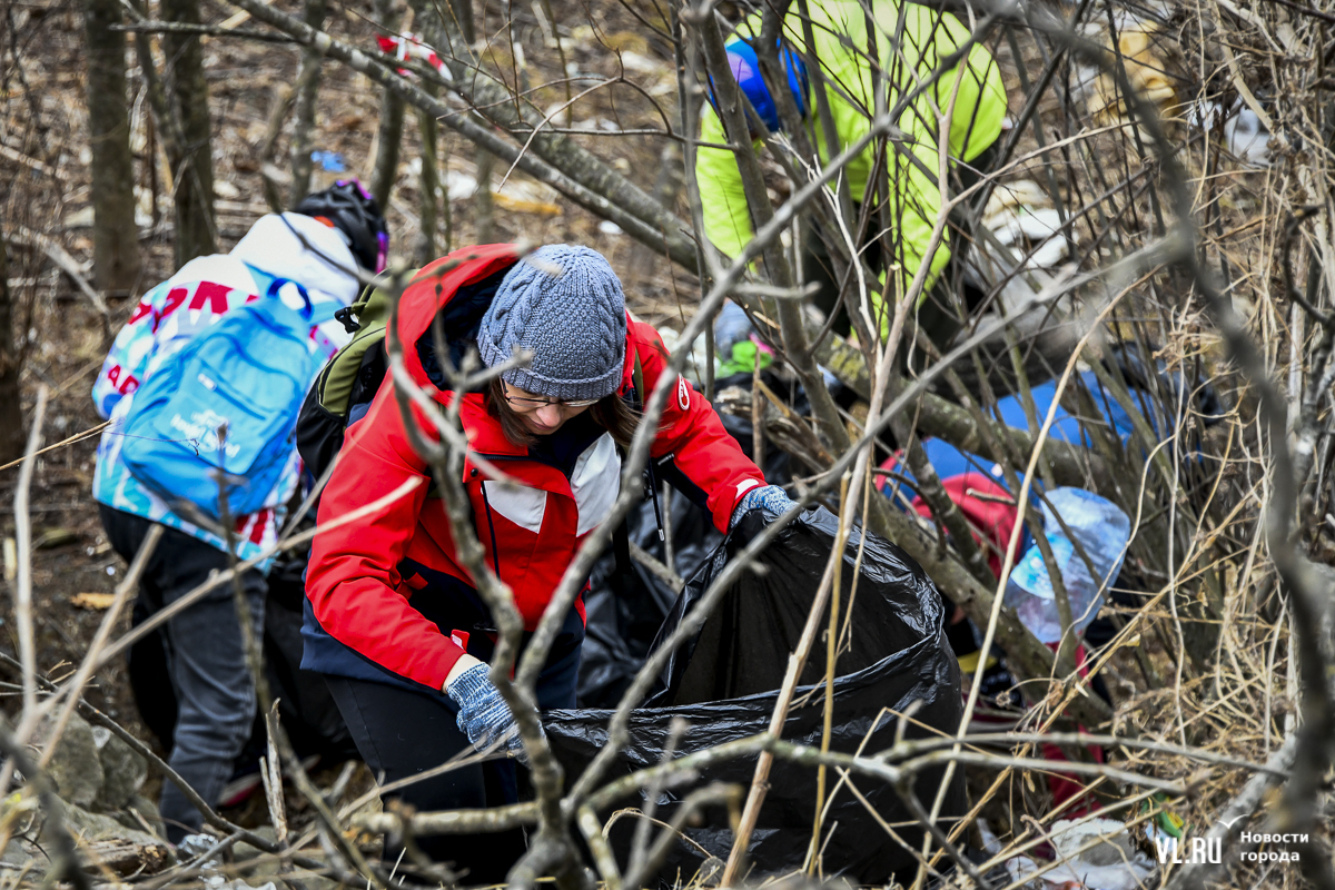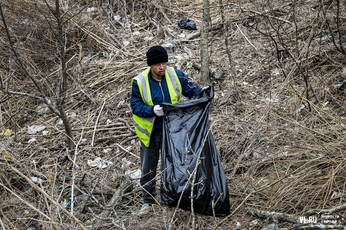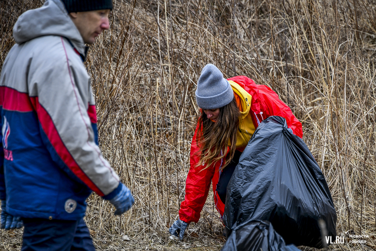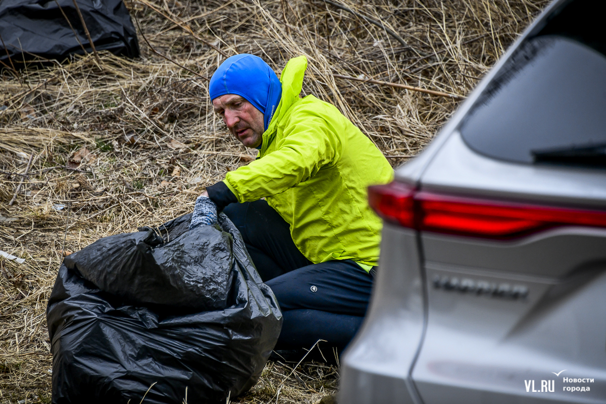 Погода была и правда не очень располагающая к активностям и уж тем более к уборке. Но не нашлось ни одного человека (кроме корреспондентов Новостей VL.ru), отлынивавшего от работы. Под задорные поп-хиты, попивая чай из термостаканов, пакеты наполнялись бесконечным мусором. Вооружилась граблями сегодня и команда МБУ «Лазо».