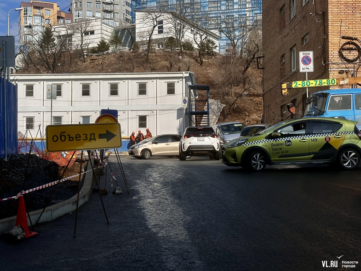 Работы начались возле общежития ДВФУ № 2 на Державина, 15. Это дорога вдоль строящегося музейно-театрального комплекса, по которой автомобили попадают с Гоголя к высотке на Аксаковской, 3 и бизнес-центру «Орлиная Сопка», а также срезают путь в сторону улицы Прапорщика Комарова, объезжая пробки.