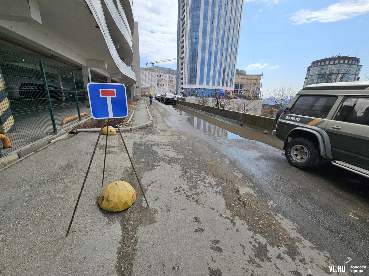 На улице Гоголя перед поворотом к перекрытому участку сейчас никаких предупреждающих знаков корреспондент Новостей VL.ru не увидел. Знак «Впереди тупик» попадается на глаза водителю лишь после того, как он заедет на Аксаковскую. На тупиковой улице можно либо развернуться у торца дома Державина, 15 рядом с автомобилями, припаркованными под запрещающим знаком, либо повернуть по стрелке «Объезд» и проехать мимо всех общежитий ДВФУ по ямам, молясь, чтобы навстречу никто не ехал, так как проезд разбитый и узкий. Почему этот путь назвали объездом, решительно не понятно. Перекрытый участок так не объехать.