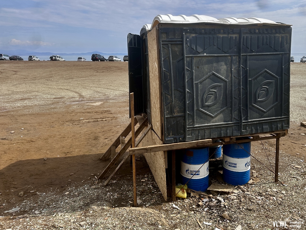 Благоустроить этот пляж администрация Владивостока не может, он по-прежнему находится в ведении Минобороны. Верёвочников отсюда выгнали вместе с прежним туалетом. И похоже, что на этот раз горожане взяли инициативу в свои руки. Построили отхожее место из подручных средств: нескольких биокабинок, металлических бочек, фанеры и старой двери.